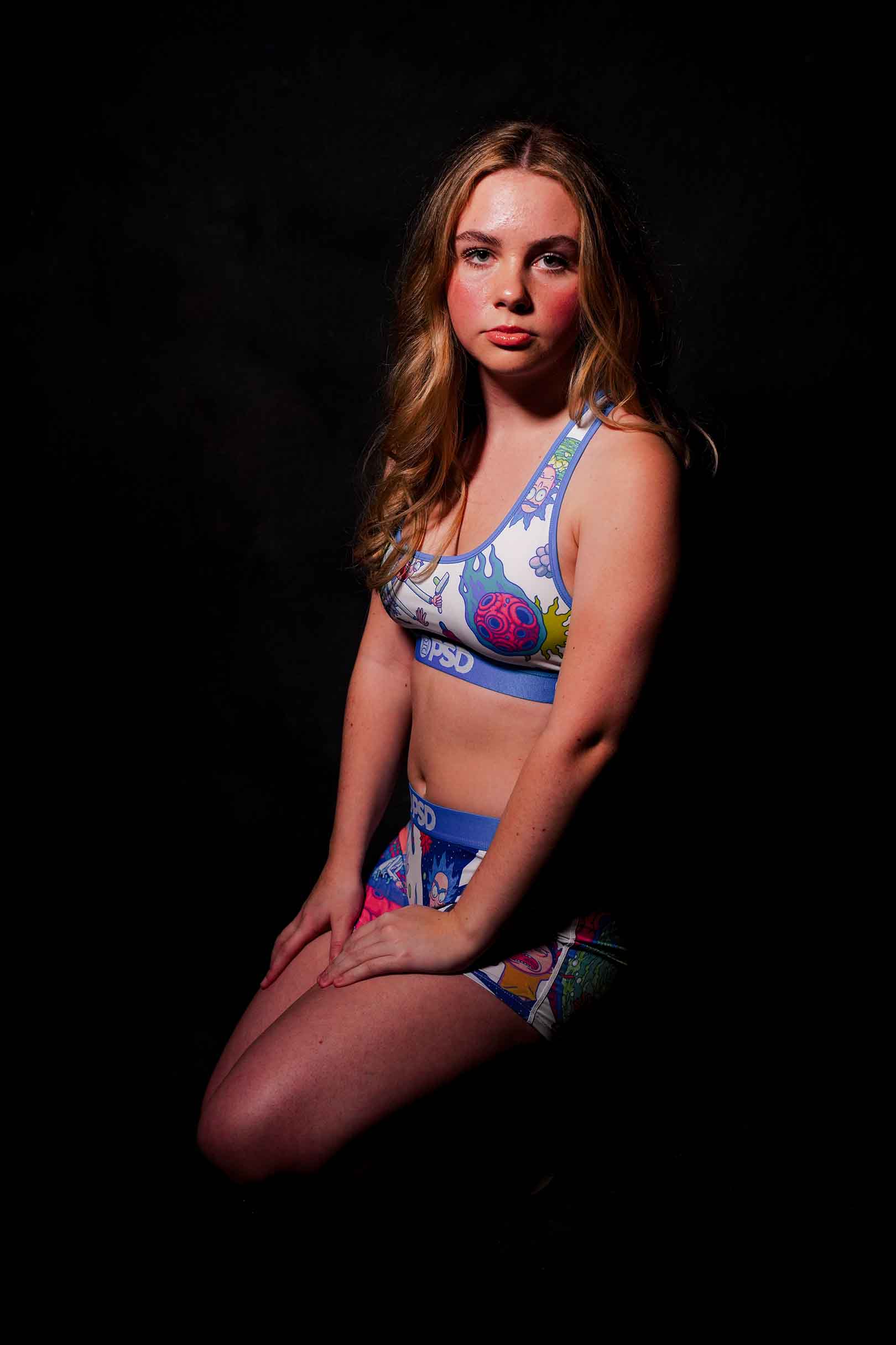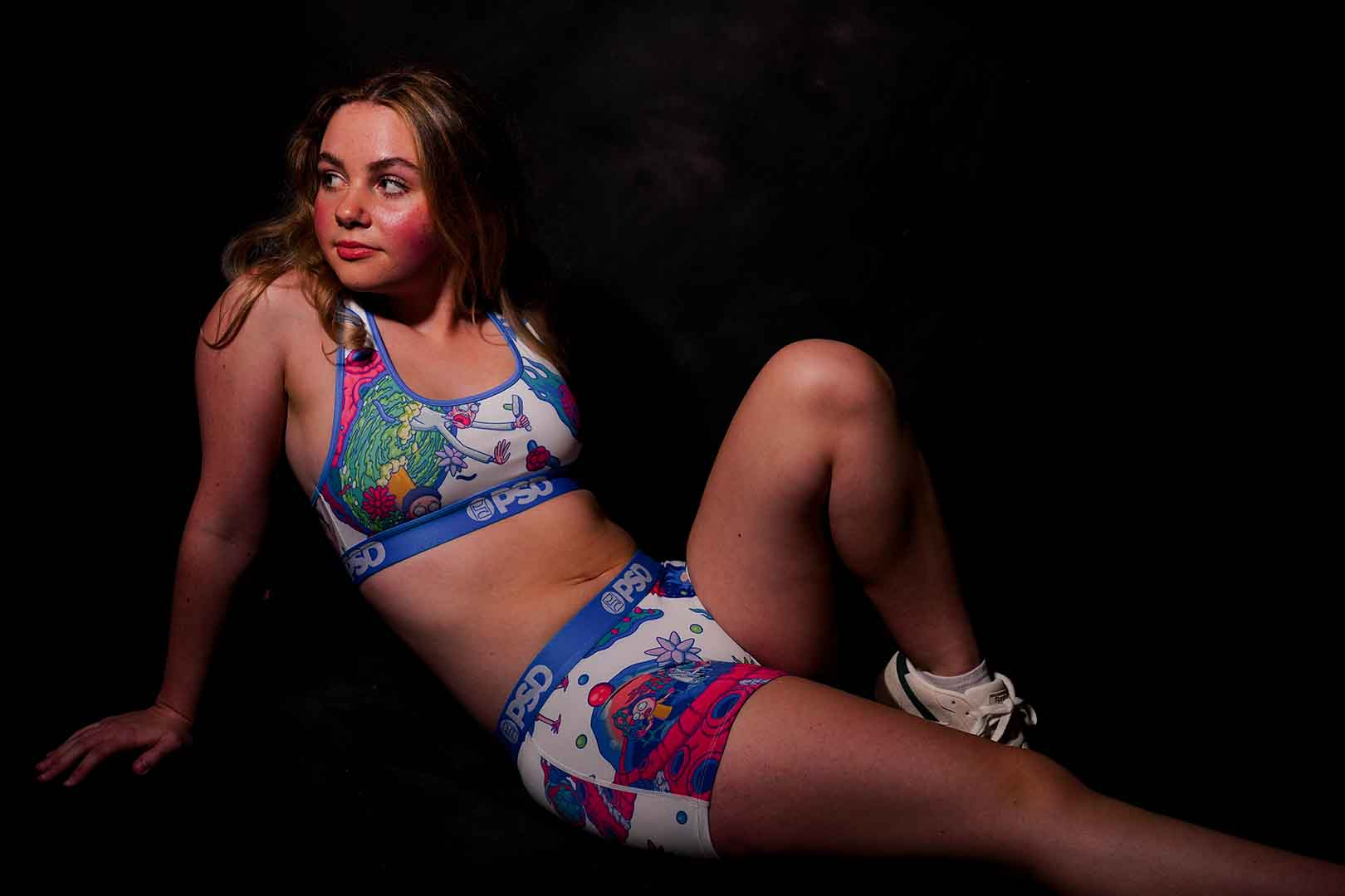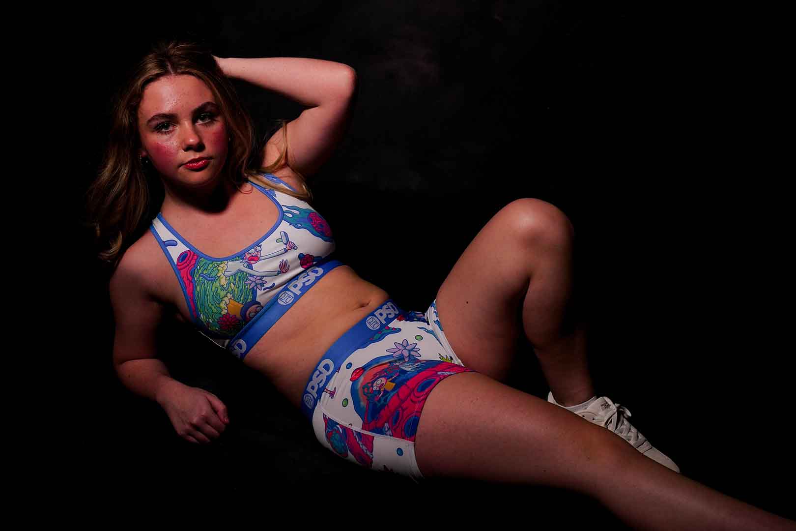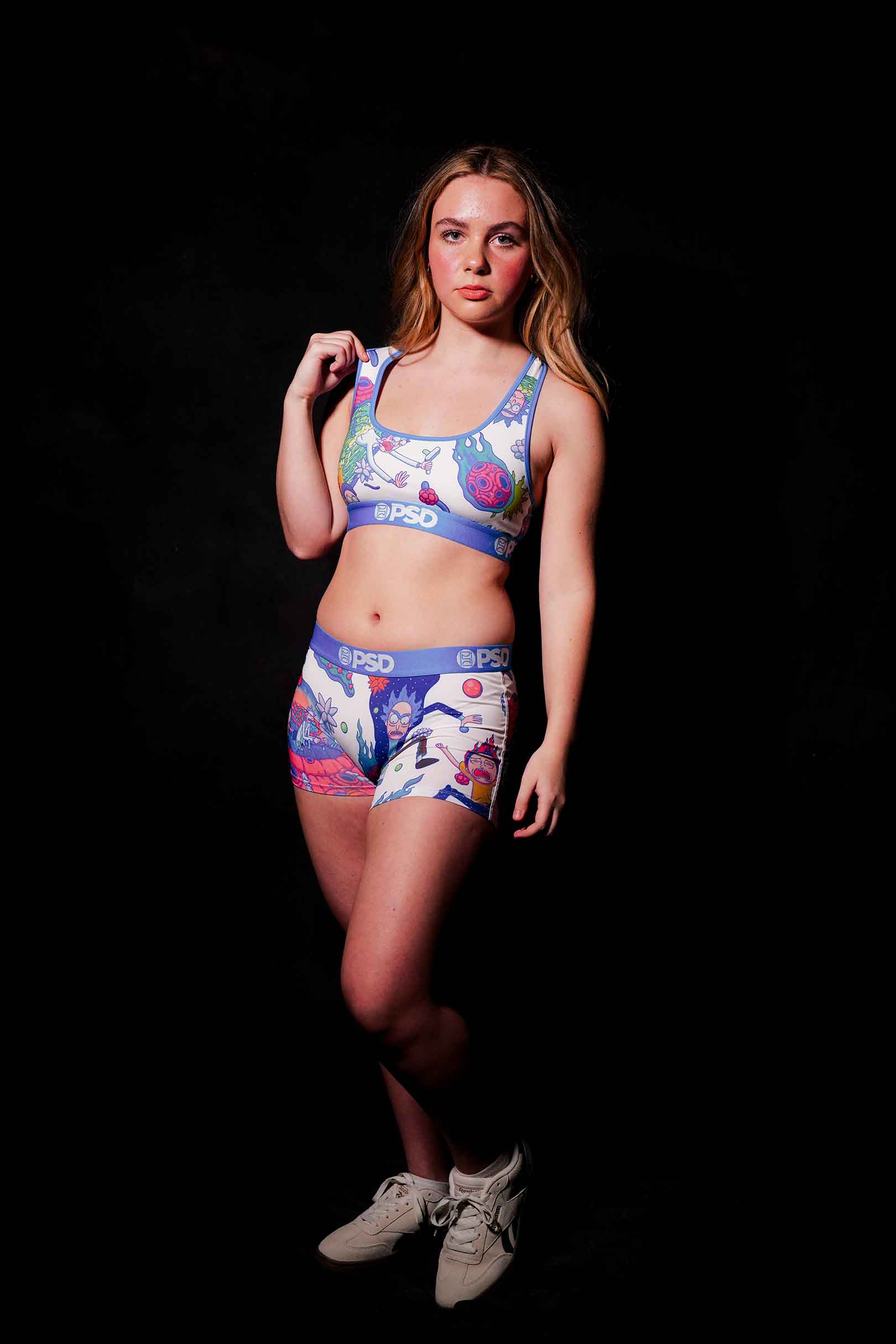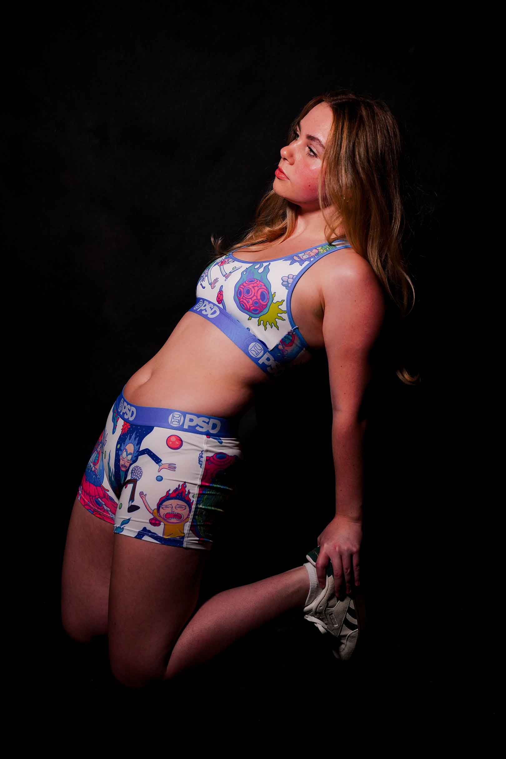 In this #amazoninfluencer fashion editorial, model Abby Friend finds more ways to show her fondness for quirky cartoon characters “Rick and Morty” by slipping on some athletic wear from PSD.