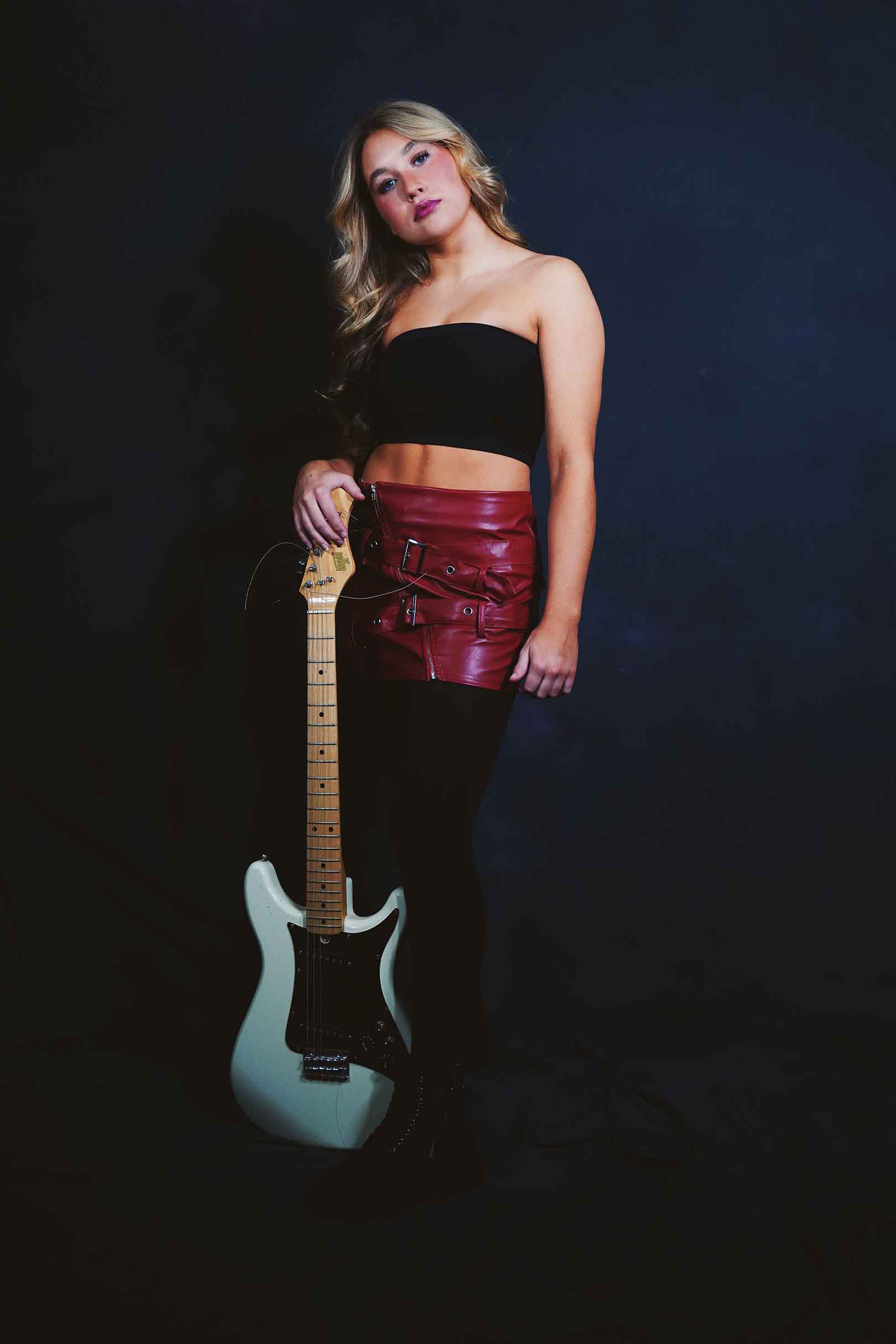 Thanks to Netflix’s “Stranger Things,” there is a stylistic interest in the 1980s. In this #amazoninfluencer-sponsored photo shoot, model Manette Masse evokes rocker 1980s rocker Pat Benetar in a black bandeau top and pleather buckle skirt.