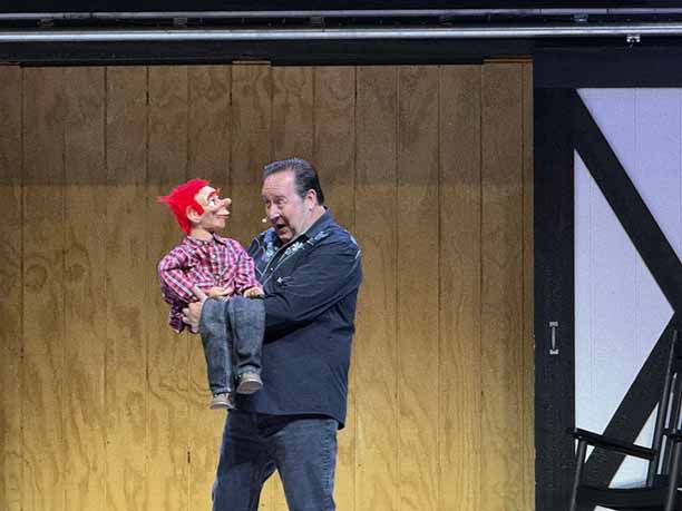 Additional stand out moments include sharp and witty banter between two colorful birds named Clyde and Matilda, commanded by master ventriloquist, Johnson, and an interactive segment starring the scene stealing Lynyrd and three audience volunteers, portraying a menacing villain, a chivalrous hero, and a “damsel in distress”, Little Cindy Lou.