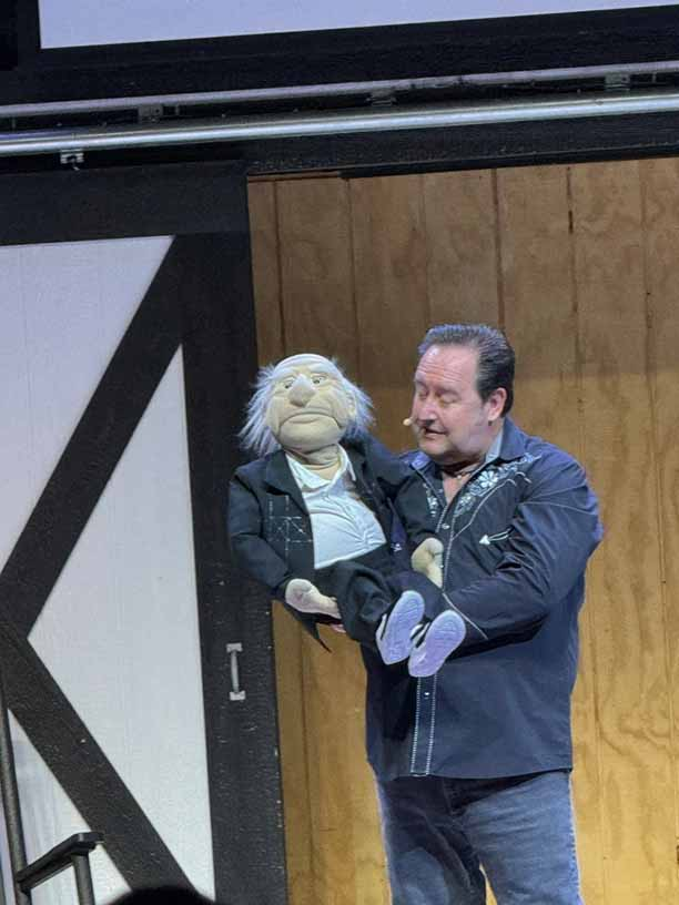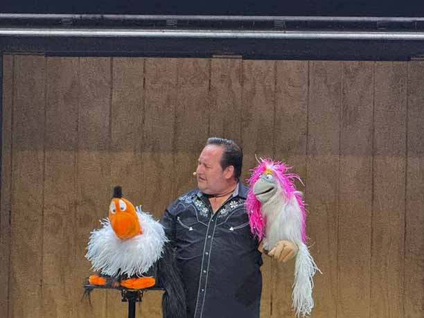 Johnson’s segments include a fiery red headed Amish puppet named Zeke (short for Ezekiel), who unbashedly sings “Froggy Went a Courtin’ and demonstrates with Johnson how truly difficult it is for a ventriloquist performer to properly pronounce “P’s and B’s” while performing.