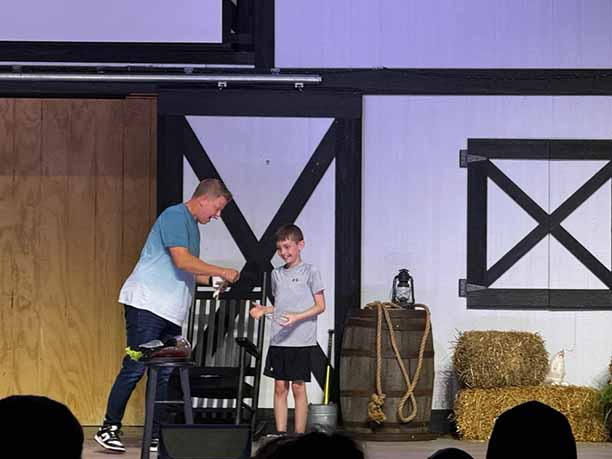 This nearly two-hour variety show spectacular kicks off with a rousing rendition of “I’ll Fly Away” by Amish Country vocalist, Donnie Abraham (an established musical artist who started his career as a part of the iconic “Abraham Brothers” touring gospel group), leading into a botched English lesson with the theater’s resident hapless-yet lovable- goofball, Lynyrd (portrayed by John Bunn) after which plenty of audience volunteers are called upon to further enhance the comedic and interactive elements of the show.