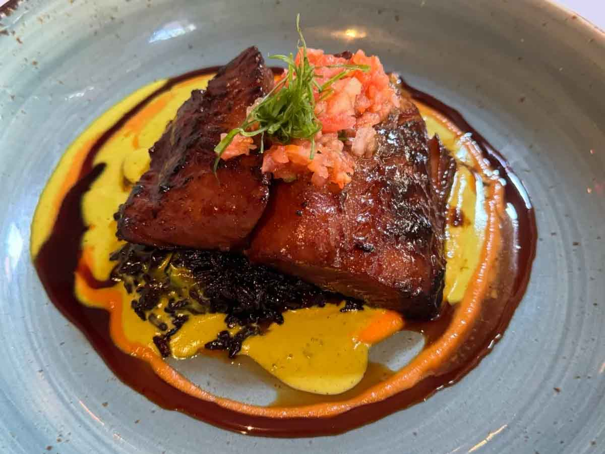 Misoyaki Butterfish: Forbidden black rice, sweet ginger wasabi beurre blanc.