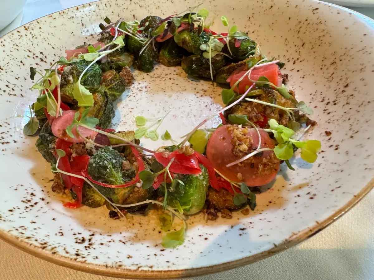Parmesan Brussels Sprouts: Bacon orange sauce /granola.