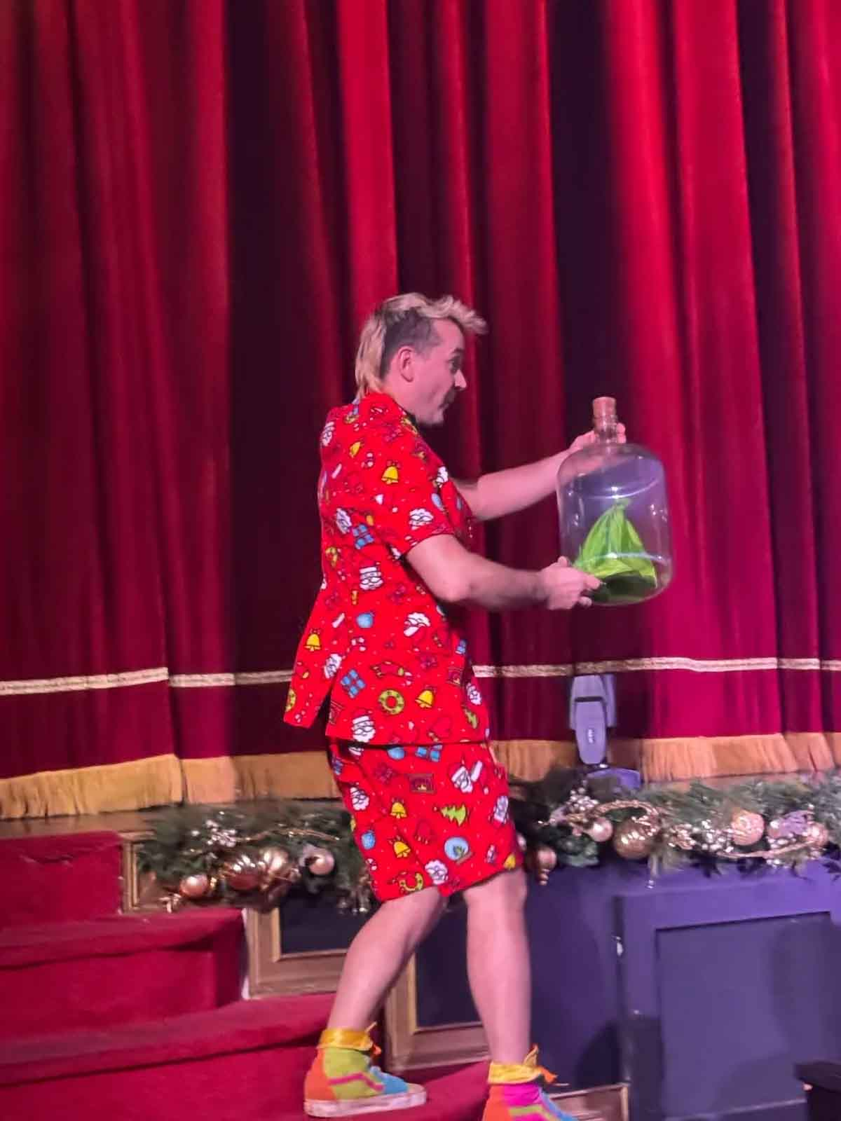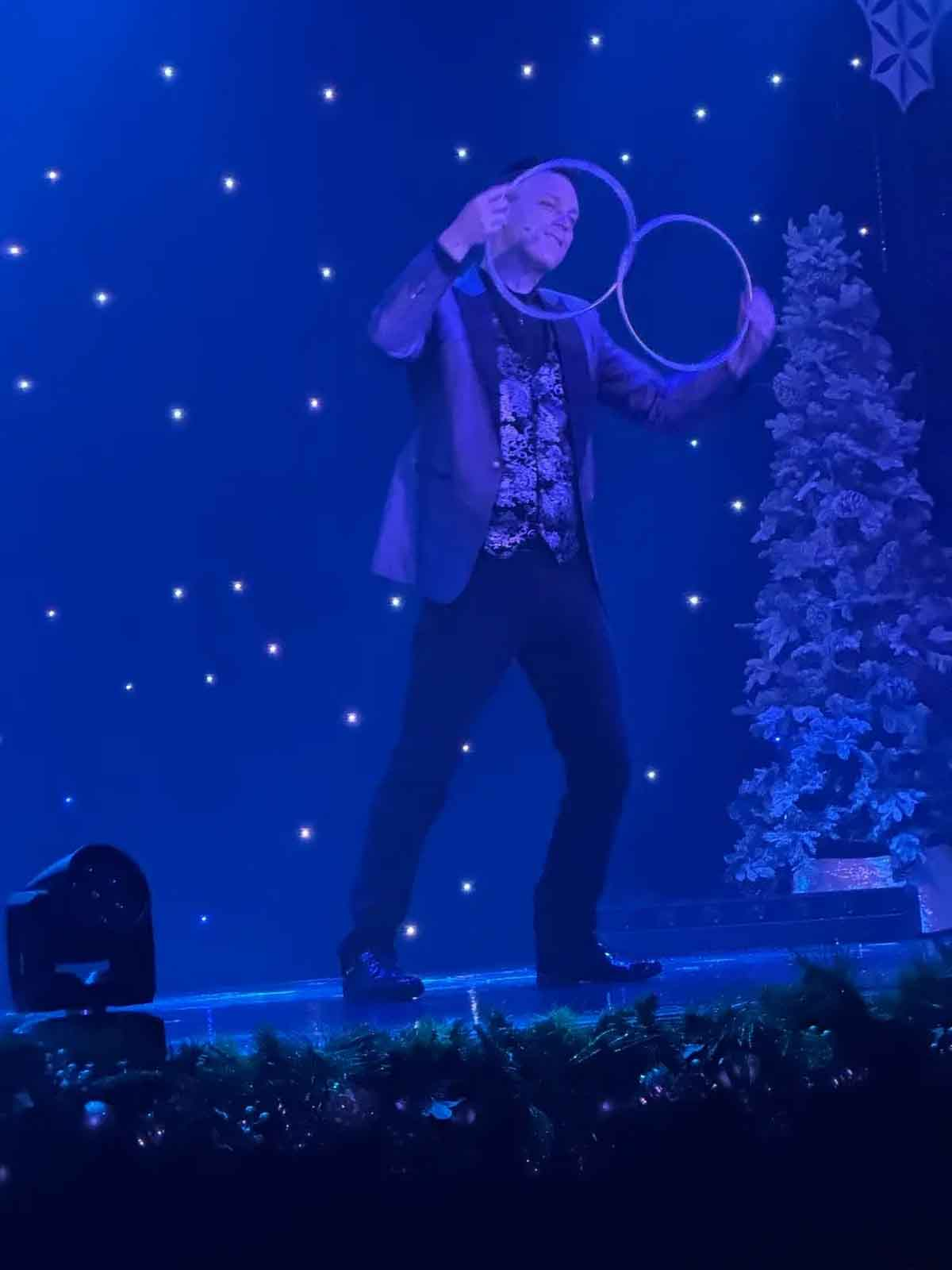 Semyon Grusdev entertains and brings comic relief as one of the show’s premier variety acts, stealing the spotlight with his wacky, zany antics, and pantomiming abilities.