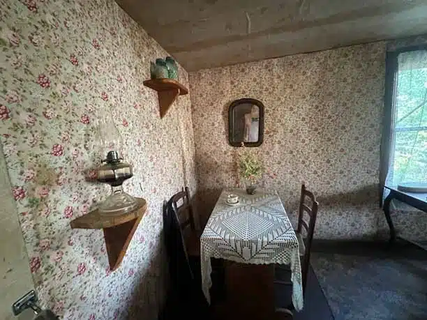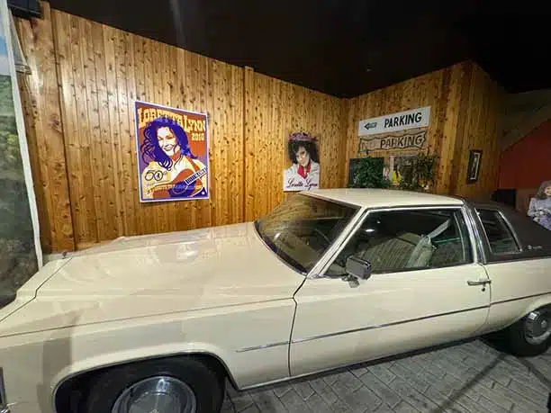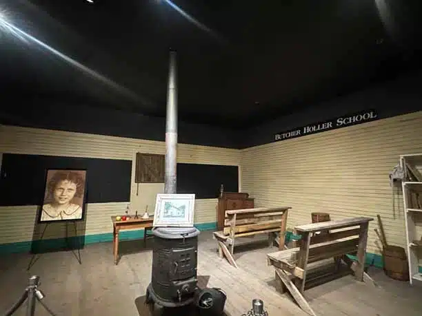 A re-creation of Lynn’s one-room schoolhouse that she attended as a youngster in the small mining town of Butcher Hollow Kentucky is displayed toward the entrance of the museum.