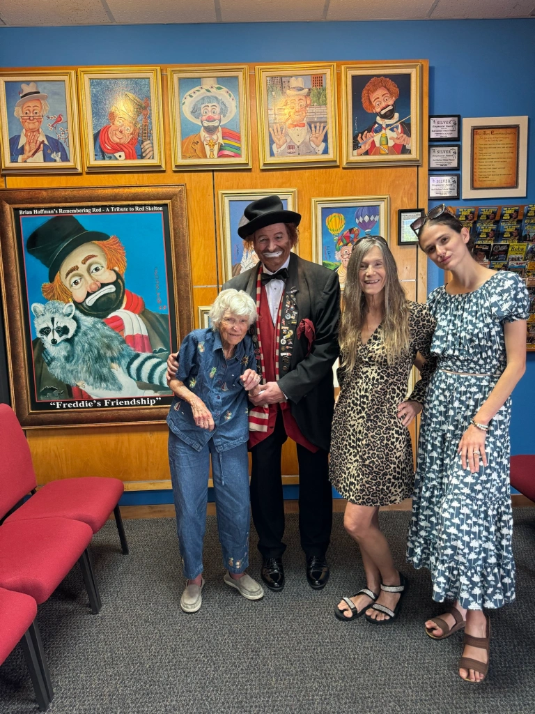 Years ago, when he performed standup at the acclaimed Akron Comedy Club in Ohio, guests constantly told him that he was a dead ringer for Red Skelton and that he should pay tribute to the legendary entertainer in his stand-up act. Hoffman didn’t pay much attention to these comments initially ; however, when a near fatal vehicle accident left him with a scar that matched Skelton’s almost exactly, he figured this must be sign from God and that it was time to take action.