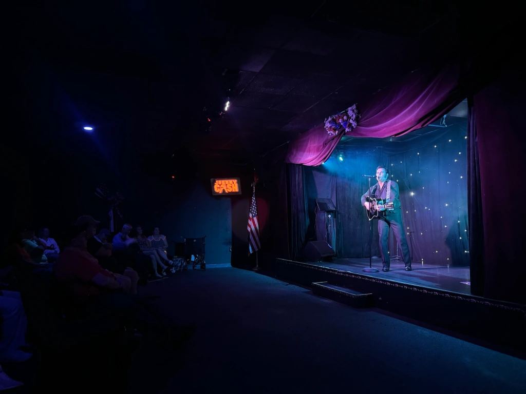 Performed select evenings at the quaint, charming, hidden gem of the Great Smoky Mountains, Steven Best’s Great Smoky Mountain Theater (located just off the bustling Pigeon Forge Parkway in Tennessee), “Cash and the King” stars renowned tribute artist Josh Rush, who brings to life not just one, but two, legendary artists all in one dynamic show: Johnny Cash and Elvis Presley.