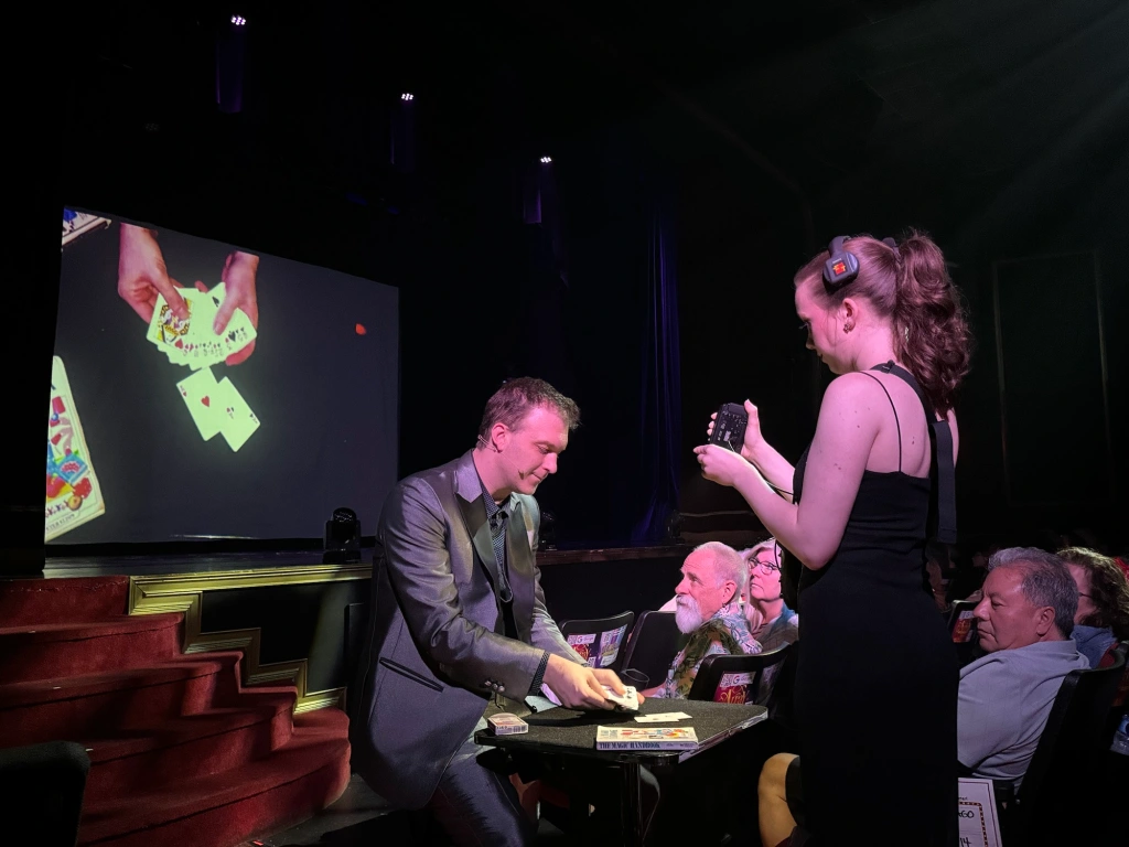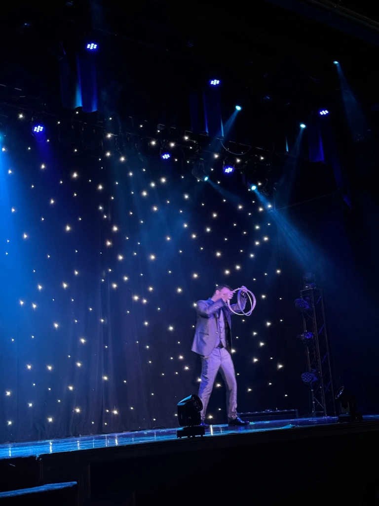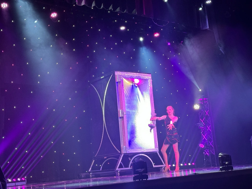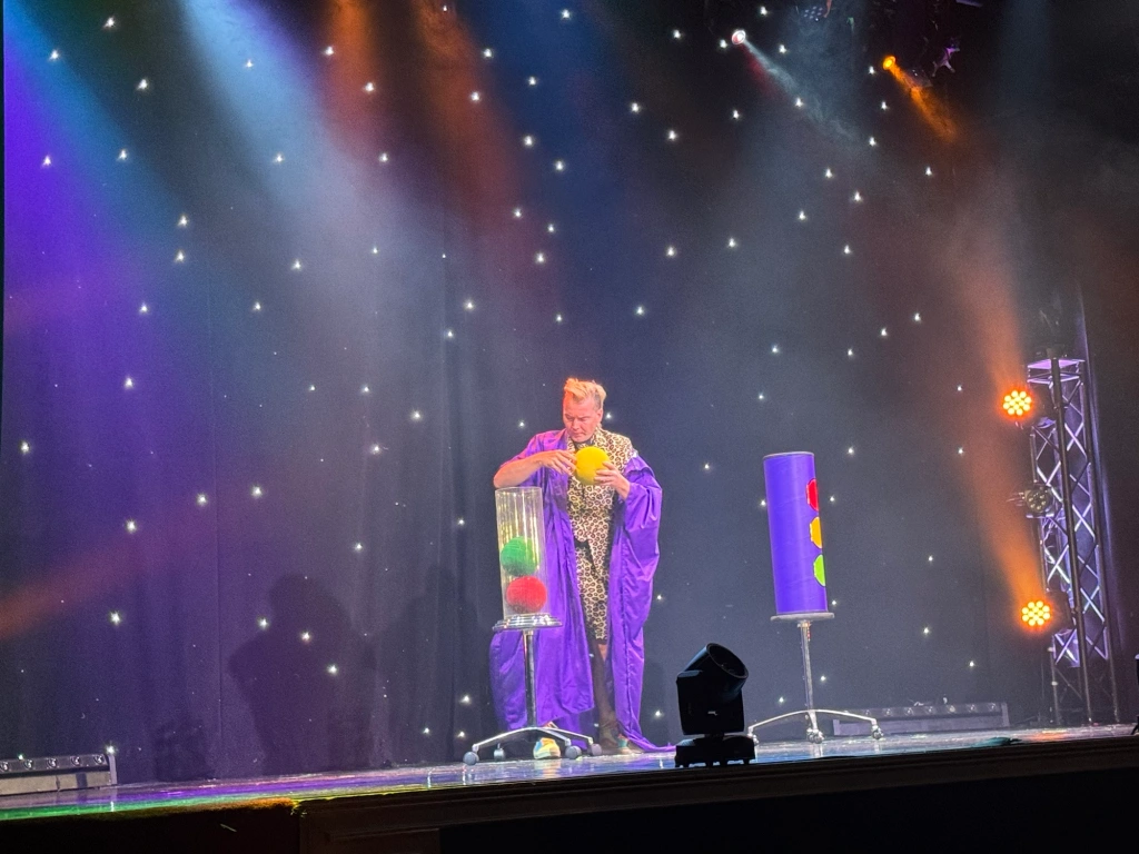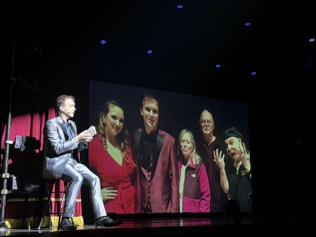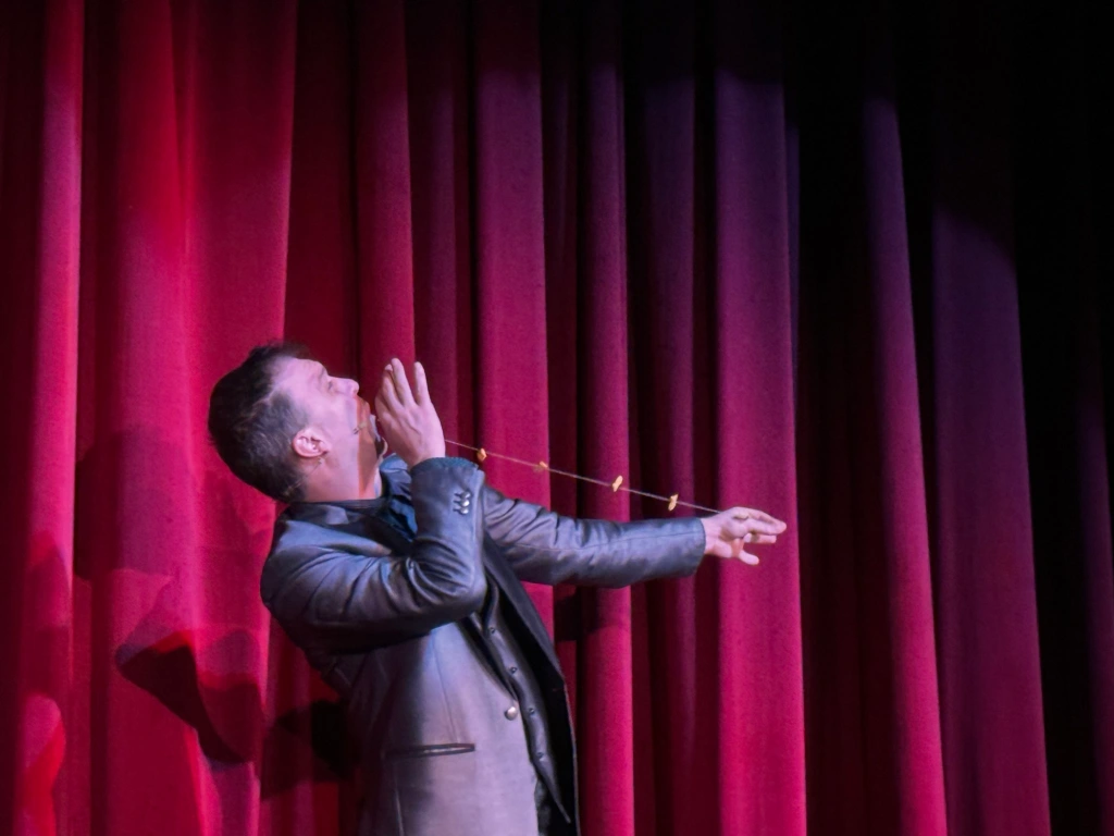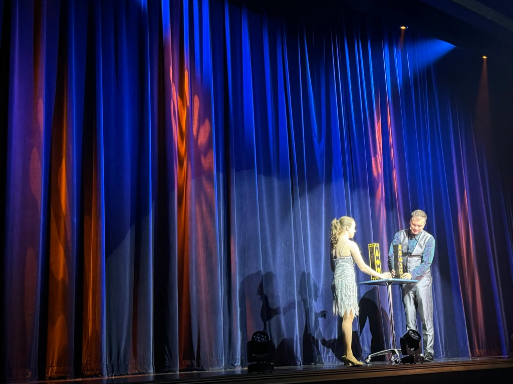 I was elated by the opportunity to return to this acclaimed show for an exclusive spotlight on the 2025 season, which, in addition to featuring Hudy as the headliner, co-stars Seymon Gruzdev (who entertains and amuses with his comic antics and acrobatic agility) and Jill Terry (who takes on the important role of magician’s assistant, contorting herself and magically disappearing as well as stealing the spotlight with her graceful dance abilities.)