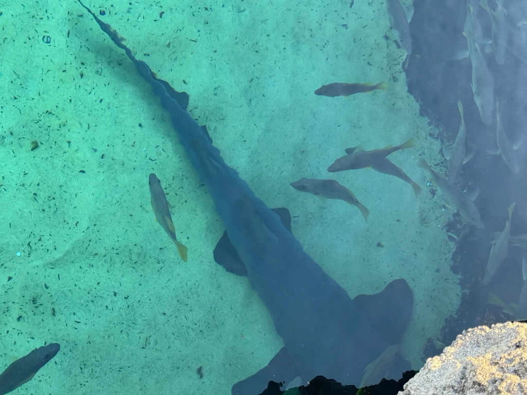 A few of the many species that can be witnessed include Houdini the barracuda, two nurse sharks (gentle giants of the sea who are docile, bottom dwelling, and feed mostly on stingrays, shrimp, squid, octopus, crabs, snails, urchins and lobsters ) named Freddy and Pucca, tarpon, and many more.