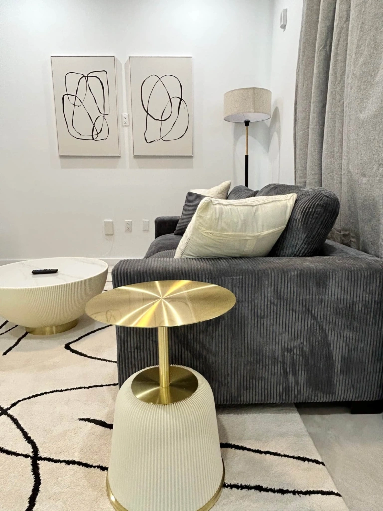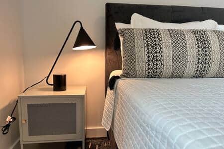 A table and seating area was provided for leisurely meals and snack times while a comfortable couch and chic end tables were a sublime atmosphere for enjoying our favorite television shows and movies upon each day’s end.
