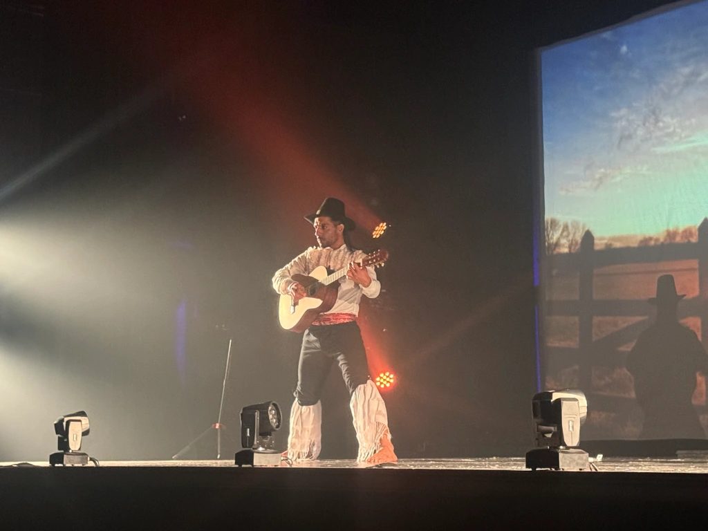 Malambo (a traditional Argentinian folk dance, a solo dance performed by men, and a competitive display of skill and strength, is an unwavering cultural symbol of South American performance art) is honored in the form of several routines by the show’s headliner, Sebastian Sayago, who just so happens to be Argentina’s National Malambo Champion.