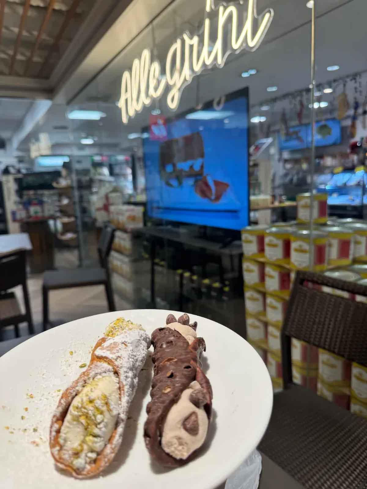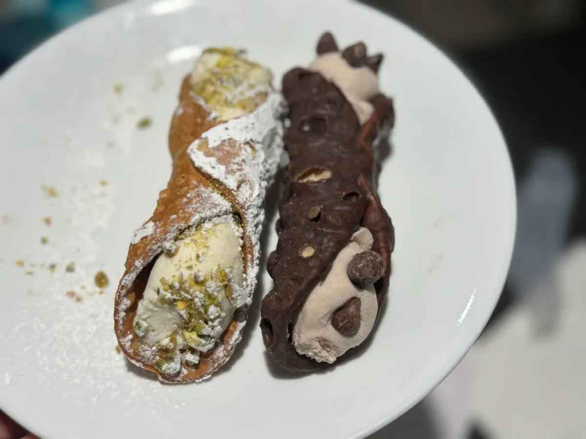 Cannolis. Made with real Ricotta cheese, this indulgent dessert features the choice of two cannolis: either chocolate or pistachio. Artfully prepared, this classic Italian favorite is sure to satisfy your sweet tooth.