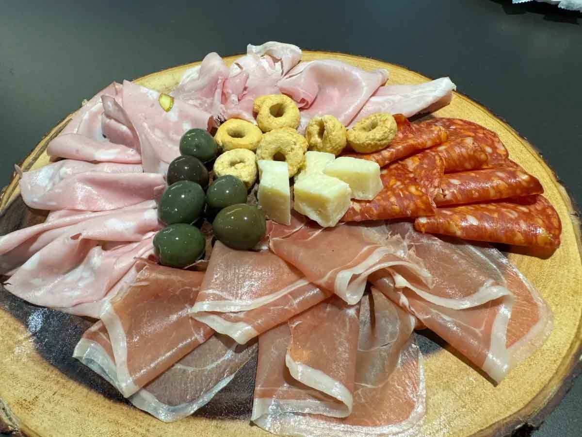 Meat and Olives. Allegrini’s version of a charcuterie board. This satisfying appetizer features savory prosciutto, and other assortments of meats, green olives, house made crackers and delicious cheese.