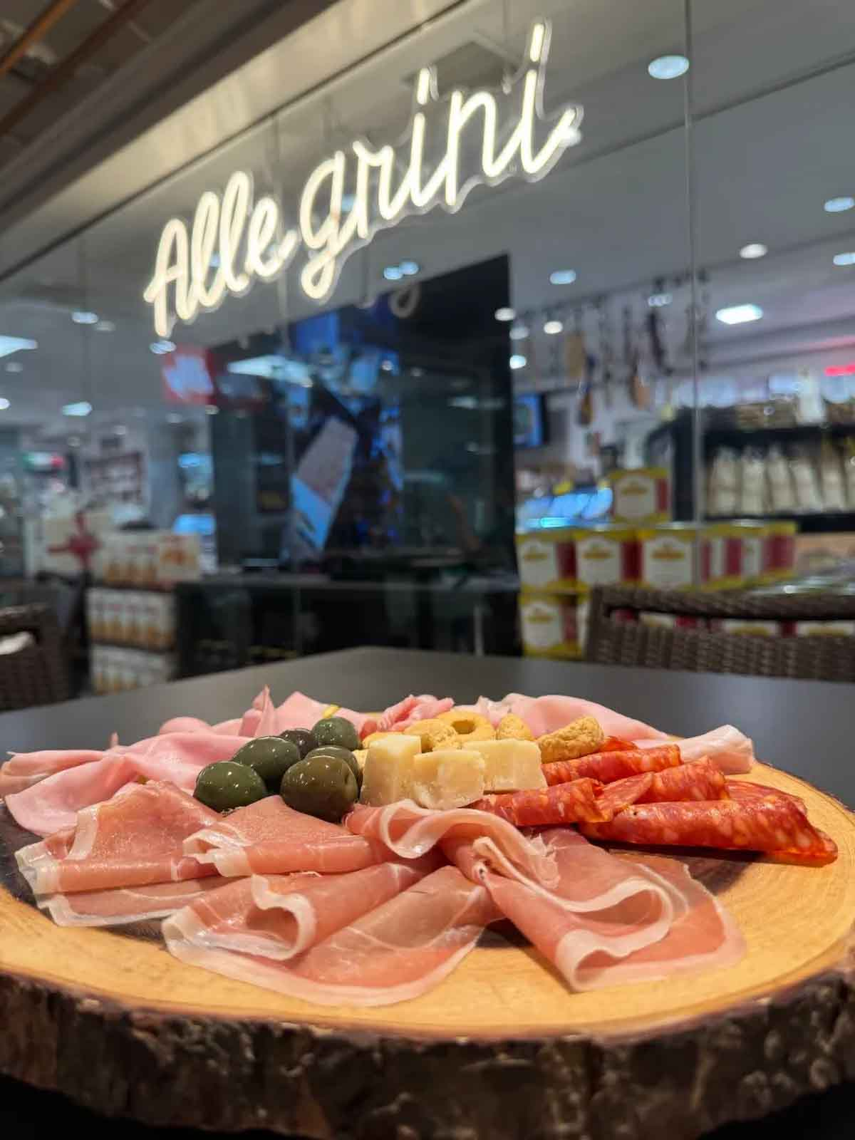 Meat and Olives. Allegrini’s version of a charcuterie board. This satisfying appetizer features savory prosciutto, and other assortments of meats, green olives, house made crackers and delicious cheese.