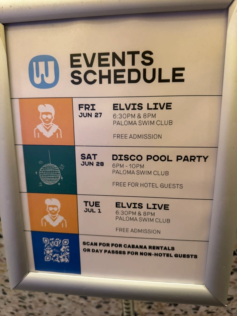 Once we settled in, we redeemed our vouchers for a delicious and refreshing free Paloma Cocktail (the signature, namesake drink of the resort, featuring a delightful blend of premium tequila, grapefruit soda, and lime juice), which is included with every stay at the Wayback, and found our seats as we eagerly anticipated the stellar poolside show which awaited.