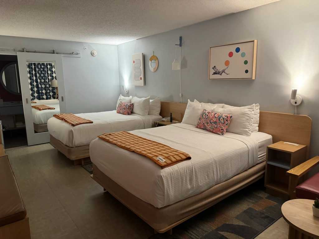 Each room features a state-of-the-art flat screen television, spacious walk in showers , extremely comfortable beds, and nostalgic mini fridges stamped with a magnetic reminder stating “Normal Is Boring.”