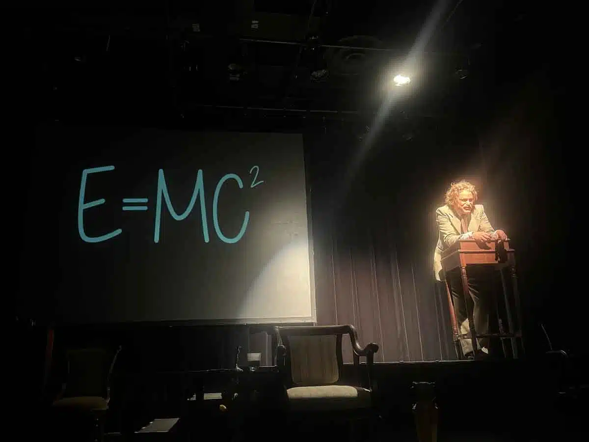 Whip-smart, fast paced, and highly intellectual, this one man show also focuses on Einstein’s personal struggles, including his rocky marriage to his first wife who he met at university. Mileva Marić, a Serbian physicist and mathematician, was noted as one of the few women in their Zurich Polytechnic class. Maric, a casualty of the prejudices against women at the time, married Einstein and became envious of his successes and freedom to research, while she was forced to stay home and care for the children they shared together.