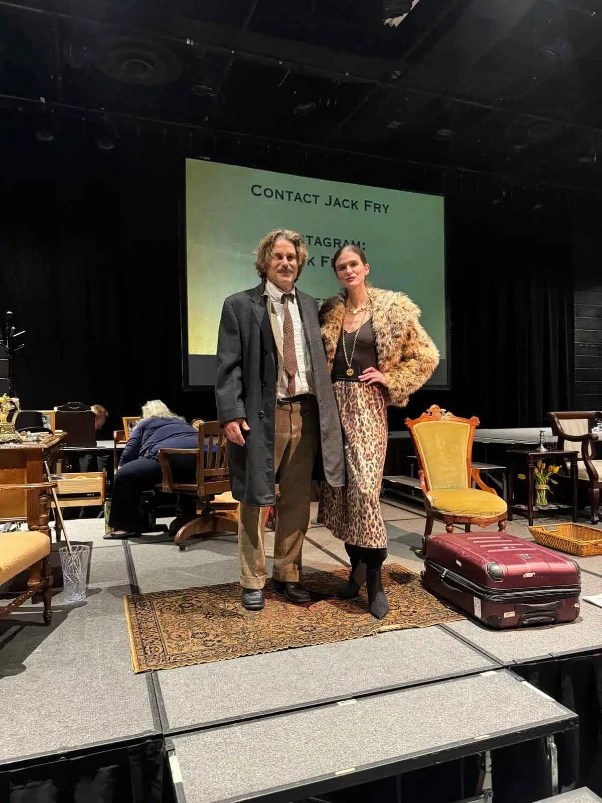 The show opens upon a screen projection of an archaic, ill-maintained cemetery, after which Fry emerges as the titular character, carrying kitschy “Einstein Collectibles,” such as bobble heads & t-shirts.