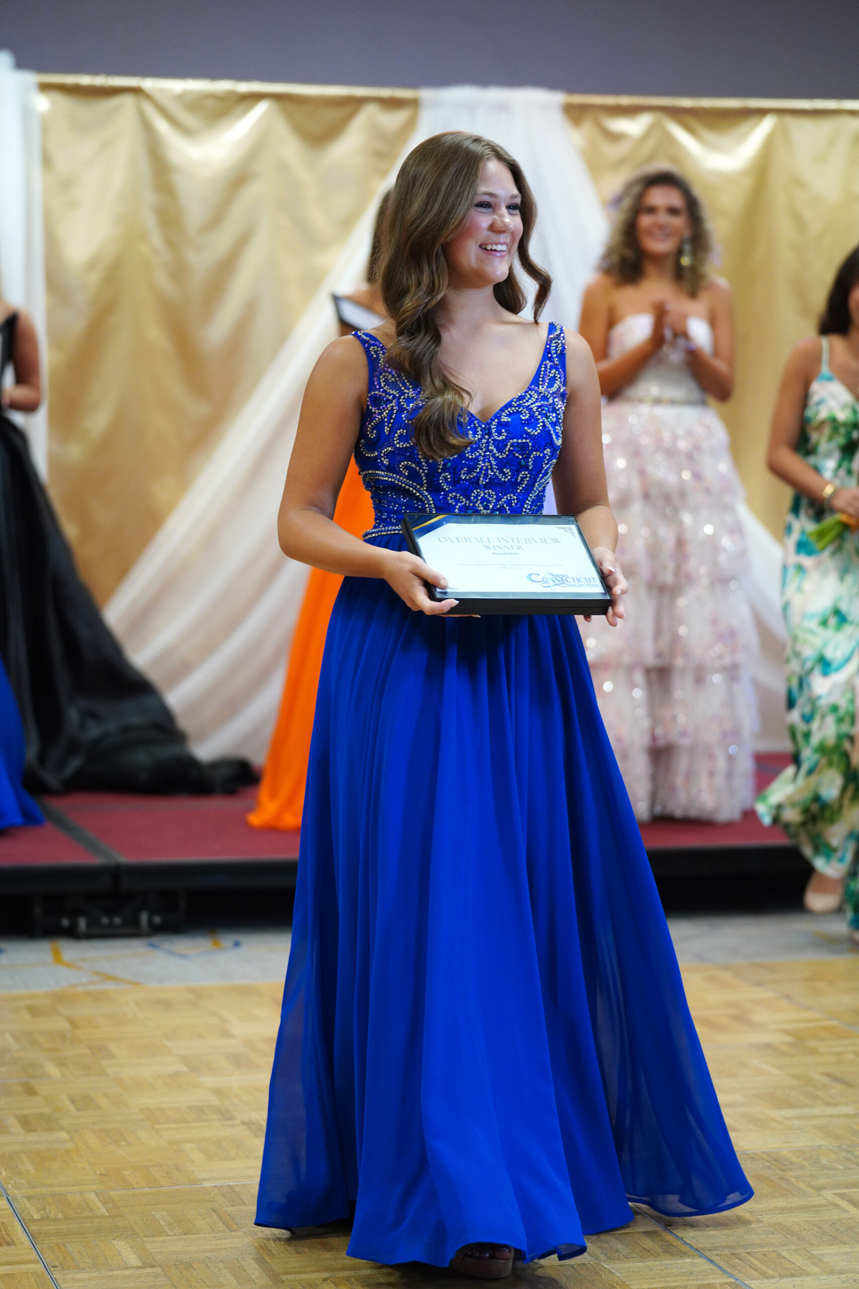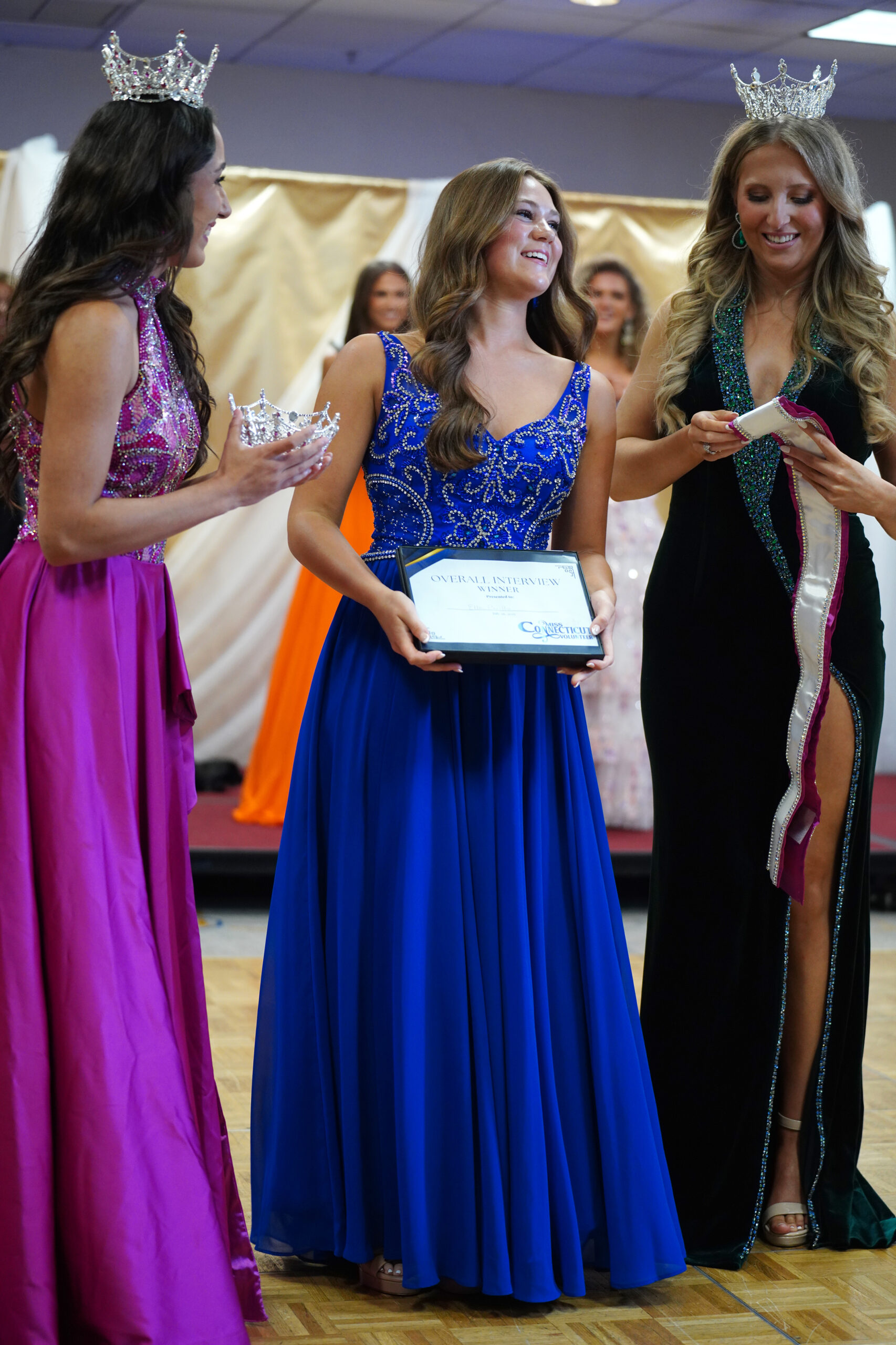 Competitors were judged in four categories: private interview, health and fitness (swimsuits for Miss and athletic wear for teens), talent and evening gown.