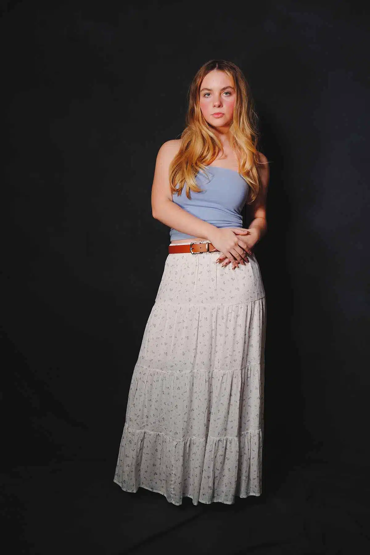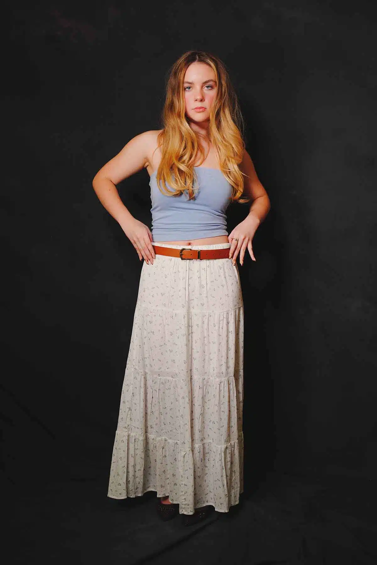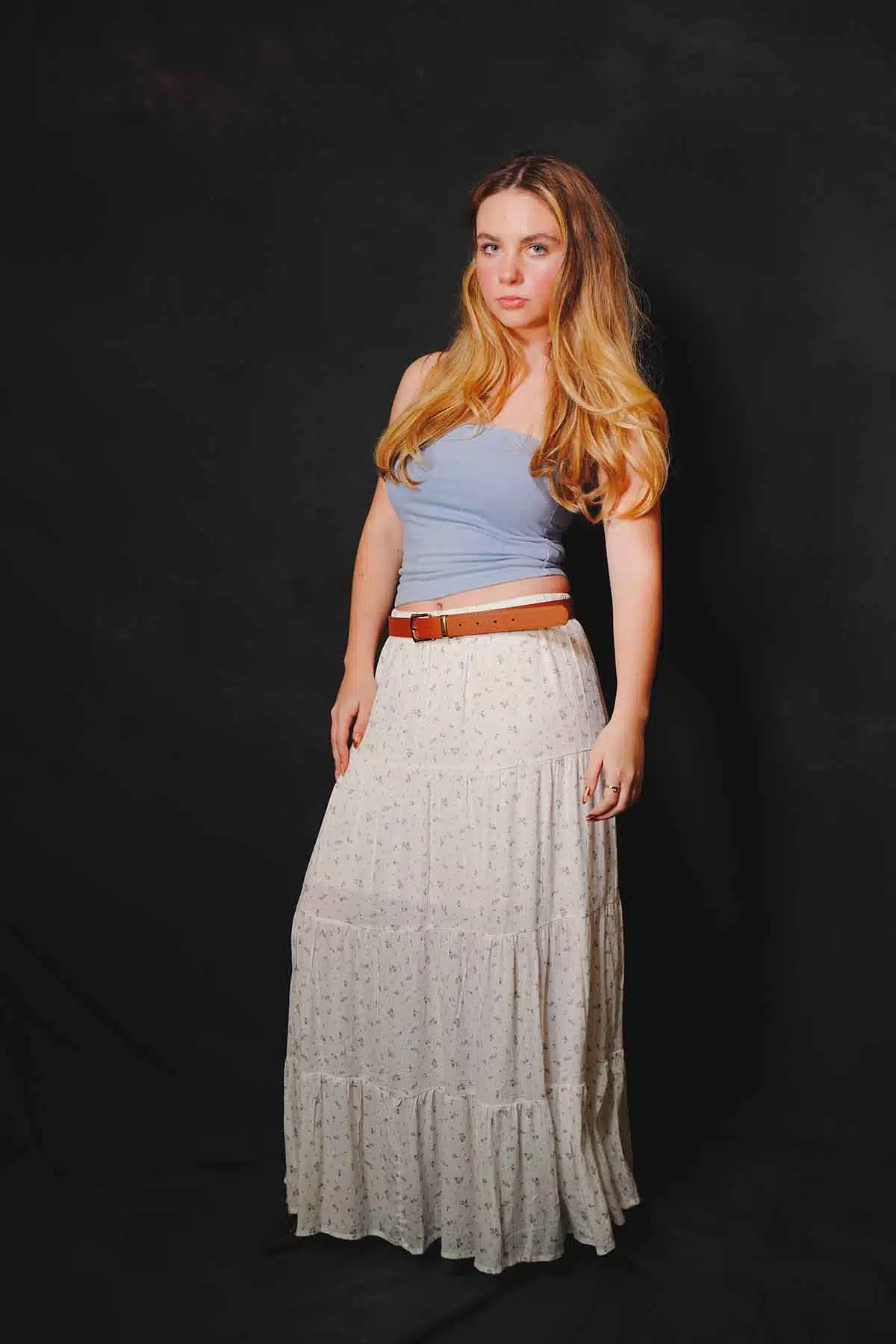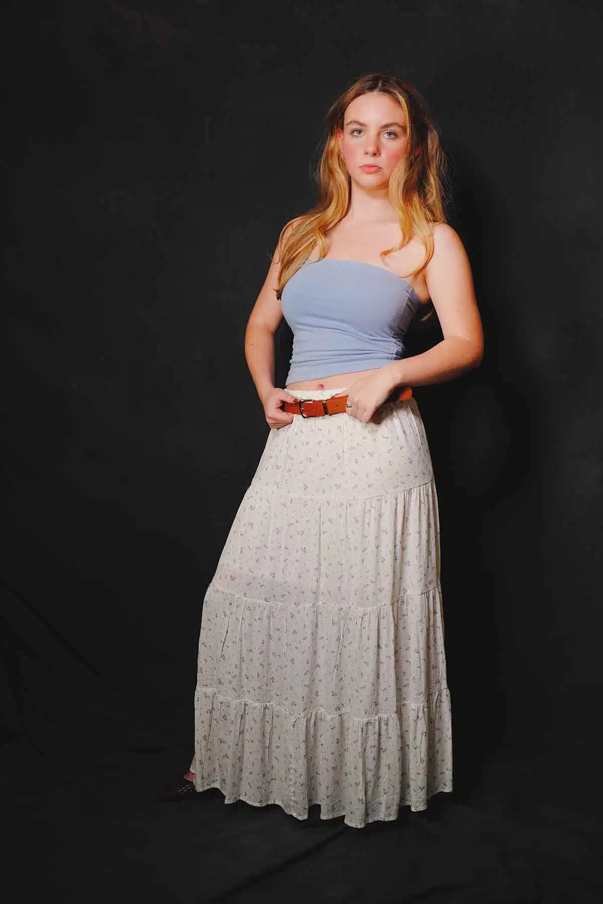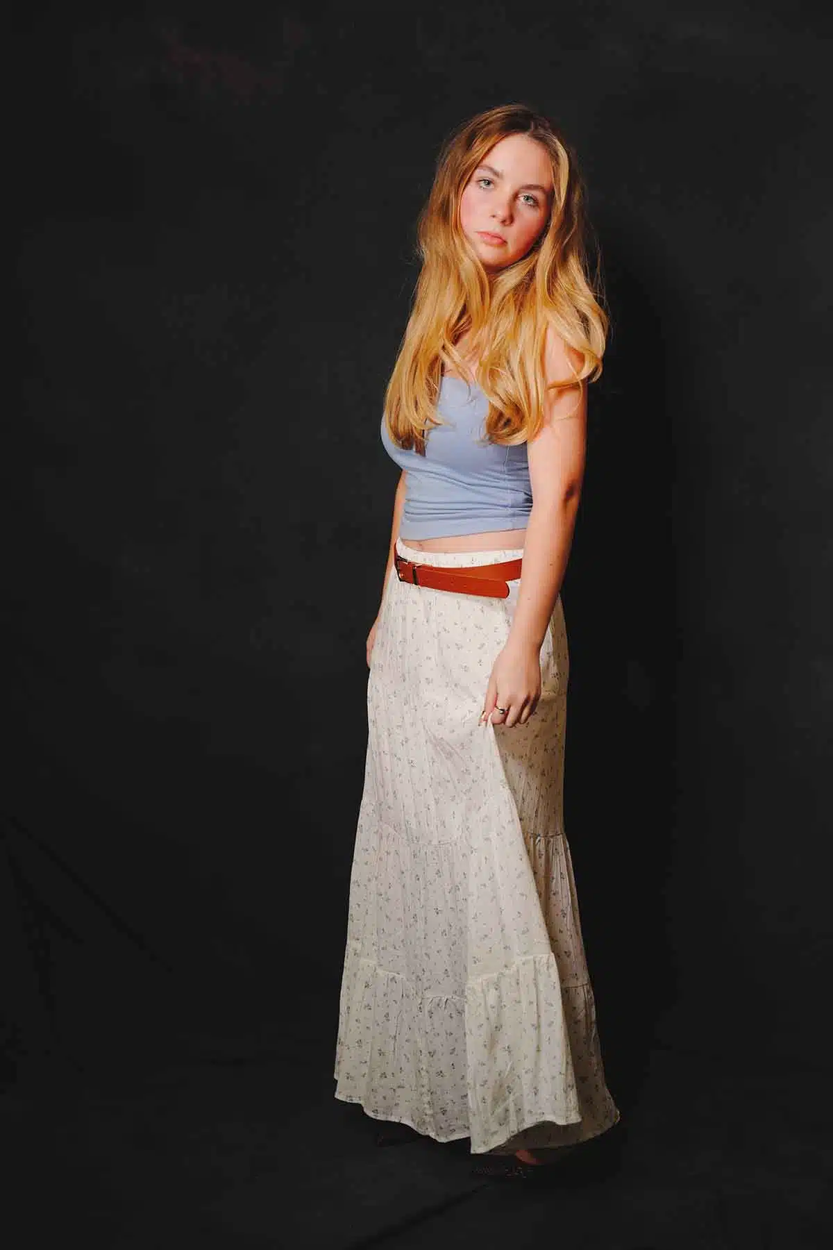 The sun sets and the air cools. You want to warm up but you don’t want to swelter. What a better time for a maxiskirt or a maxidress. Model Abby Friend switches to a couple of favorites for this fashion editorial.