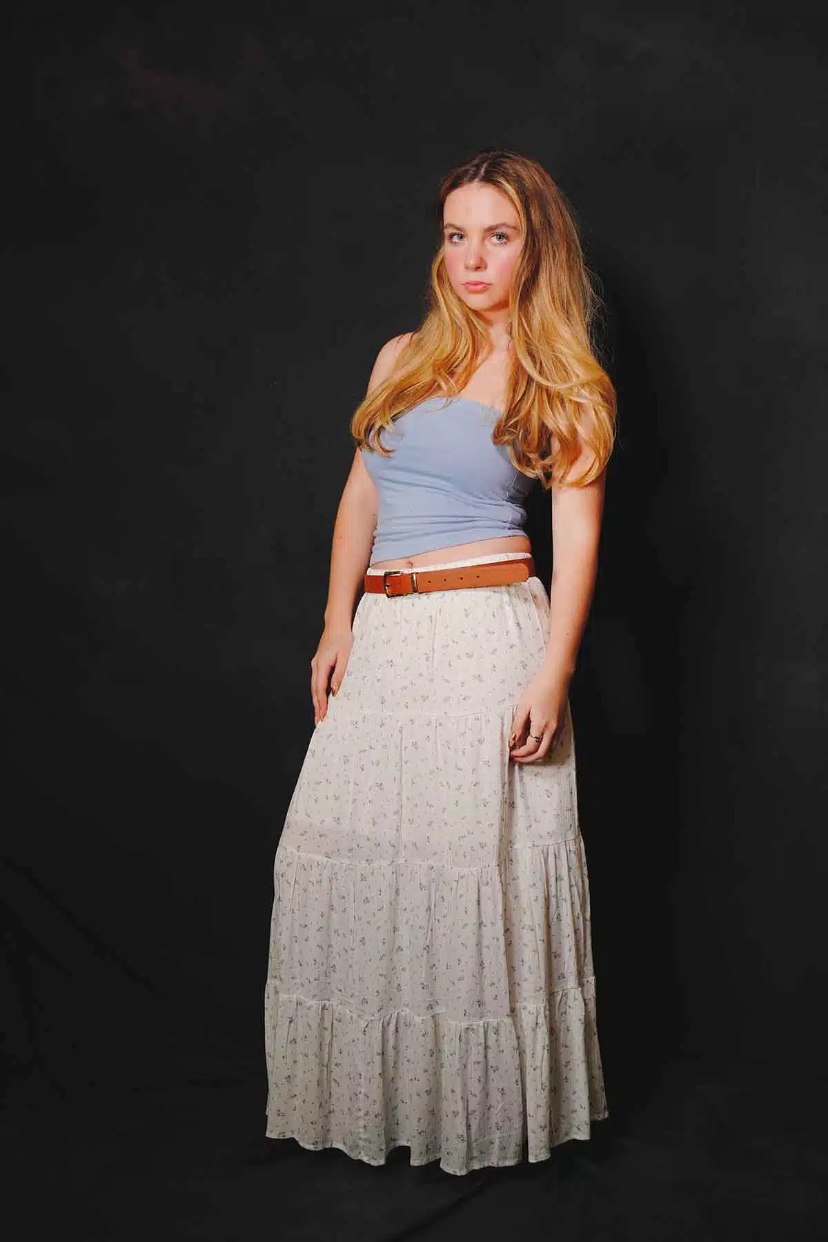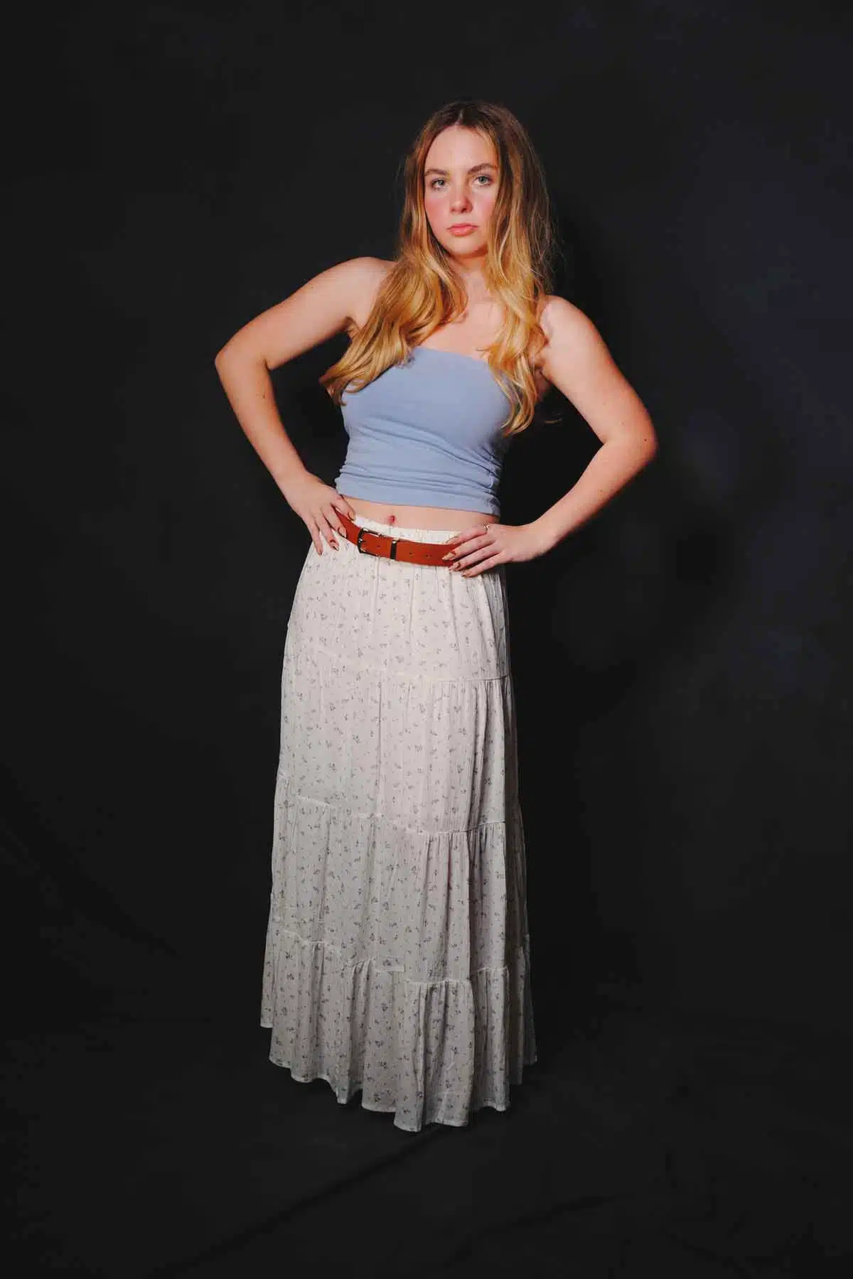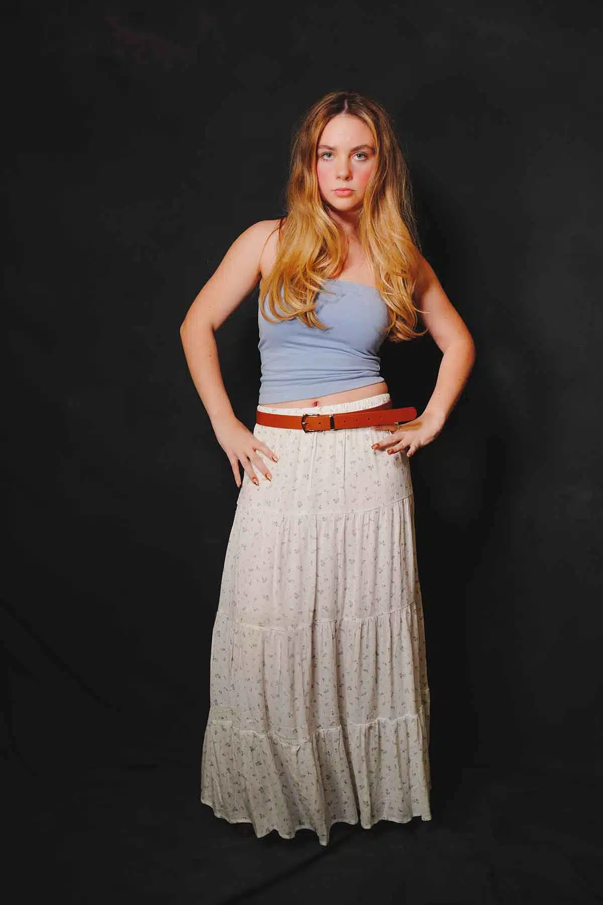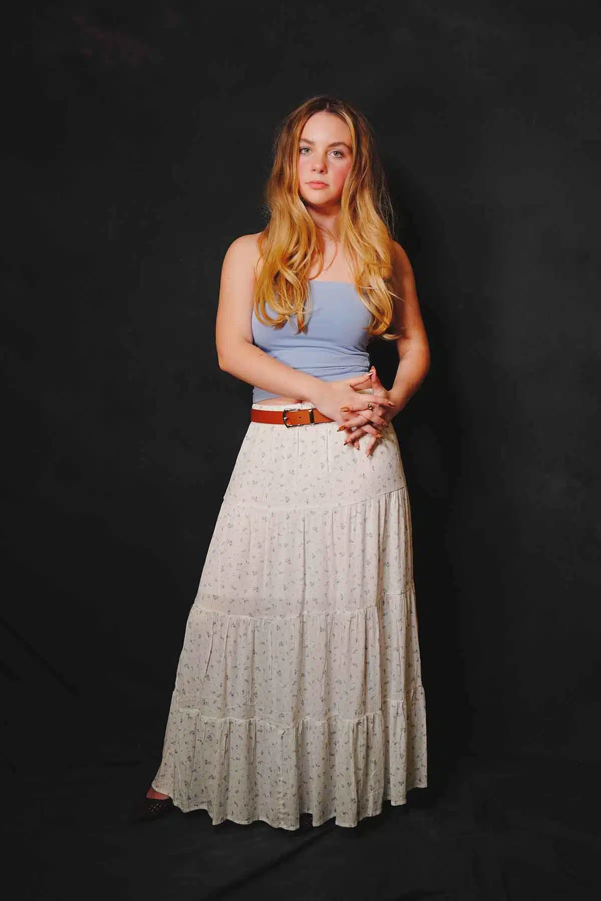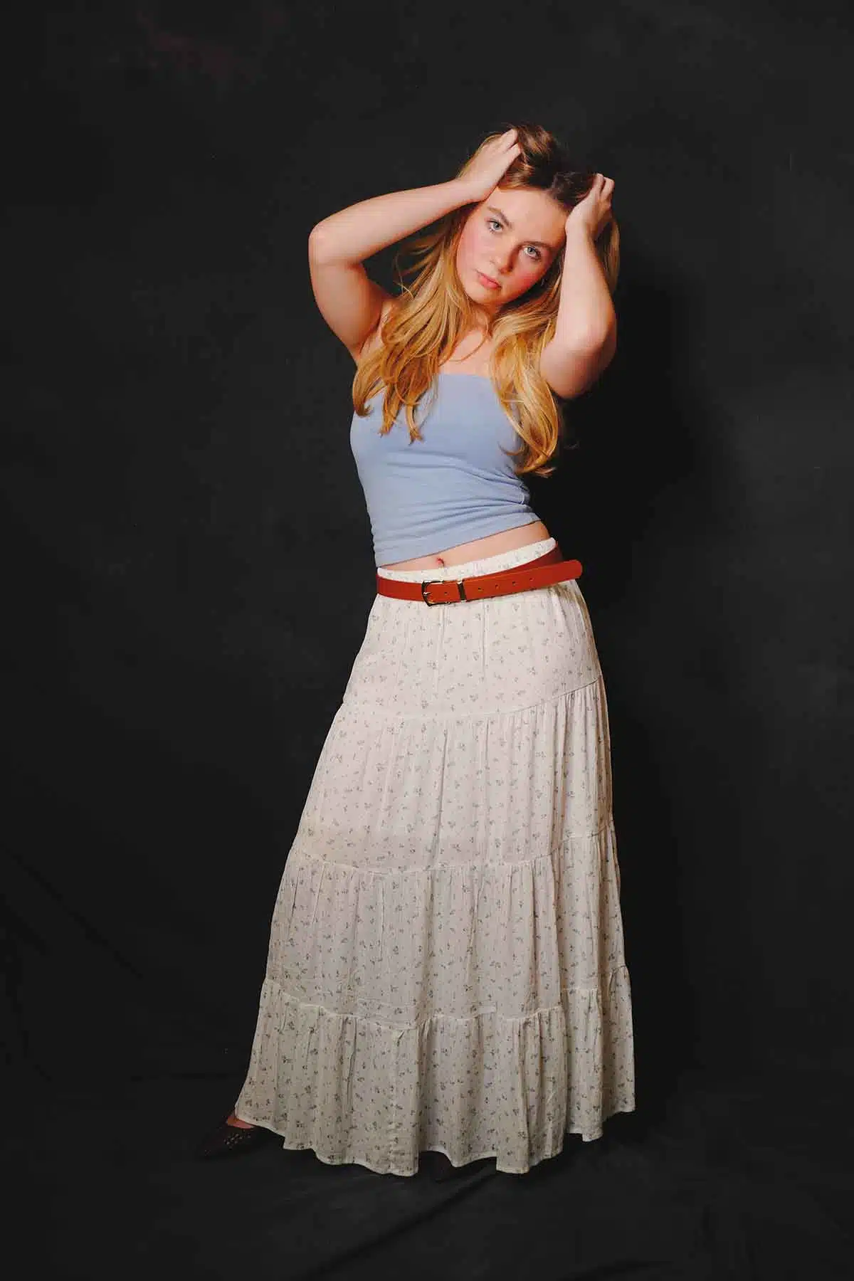 The sun sets and the air cools. You want to warm up but you don’t want to swelter. What a better time for a maxiskirt or a maxidress. Model Abby Friend switches to a couple of favorites for this fashion editorial.