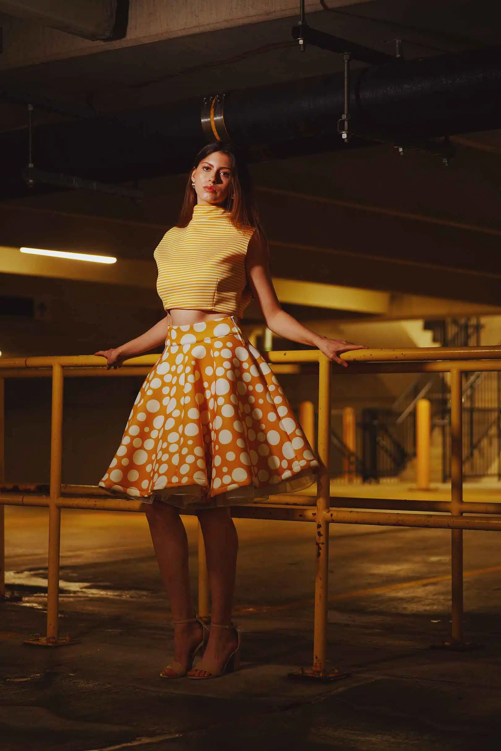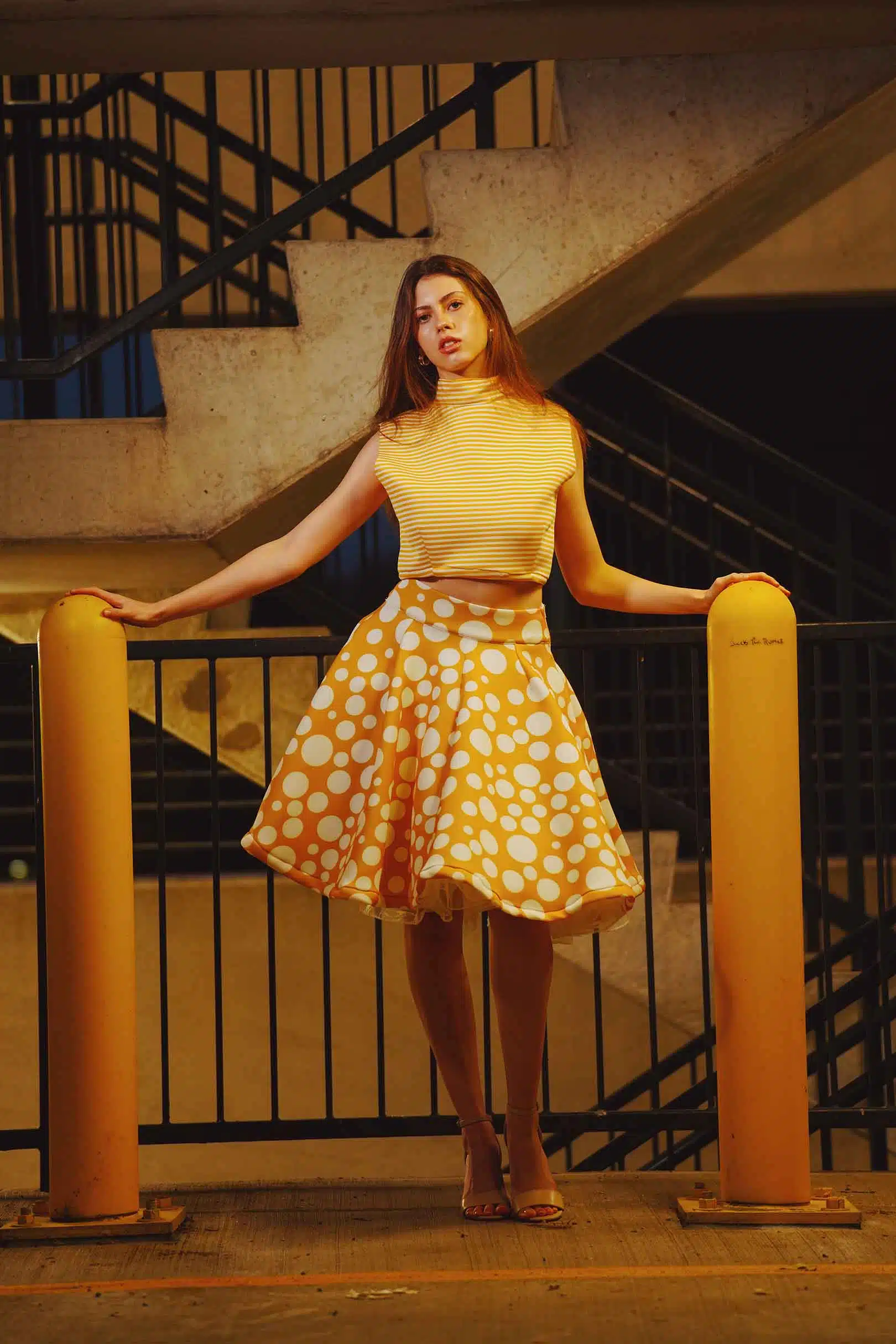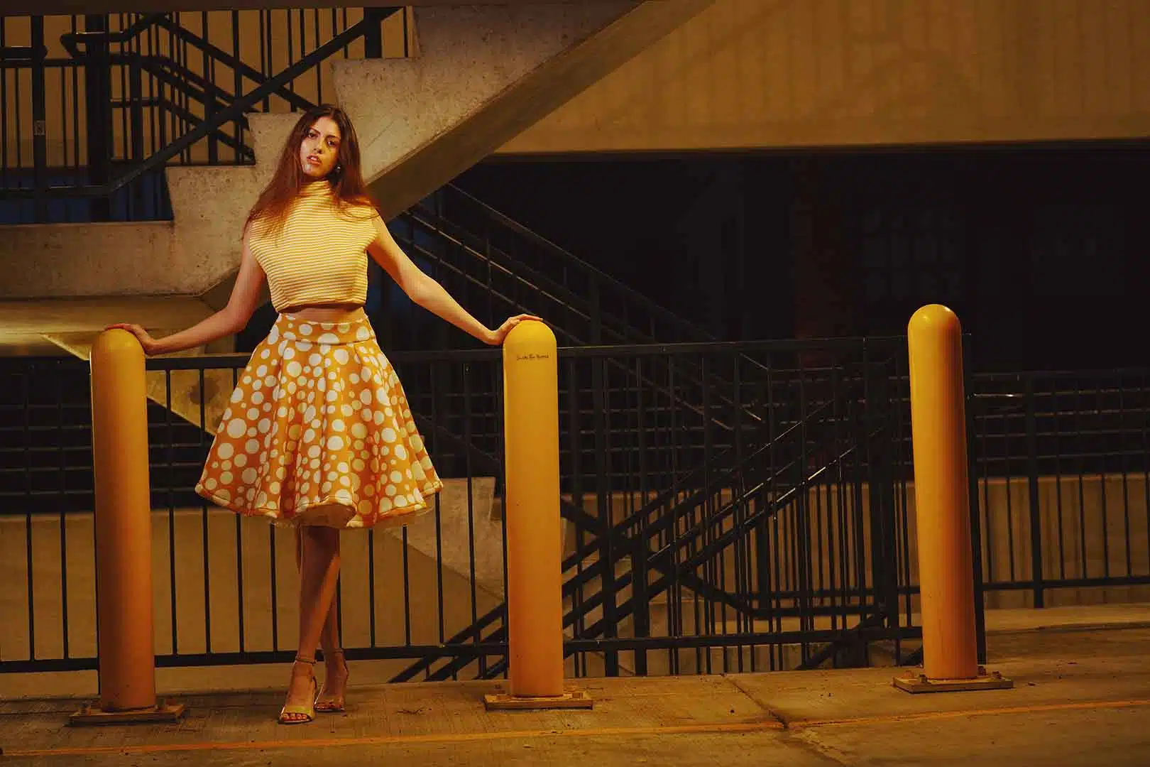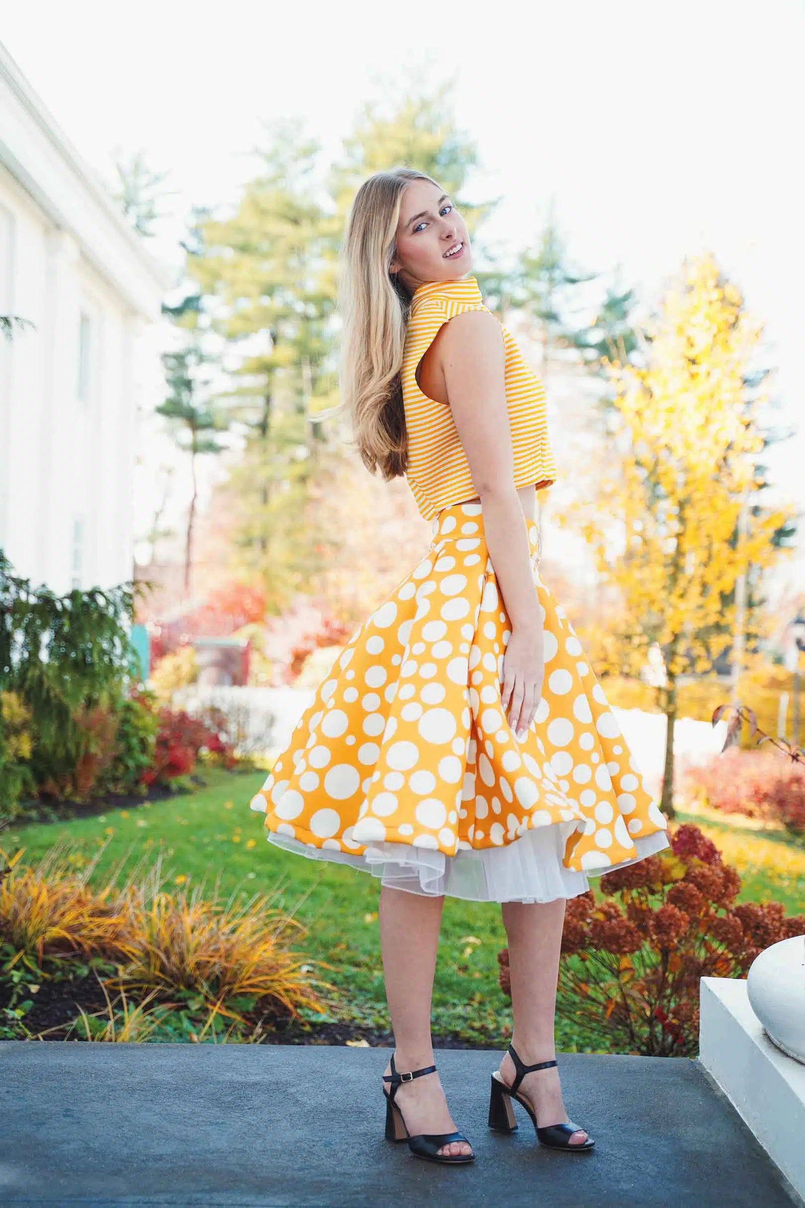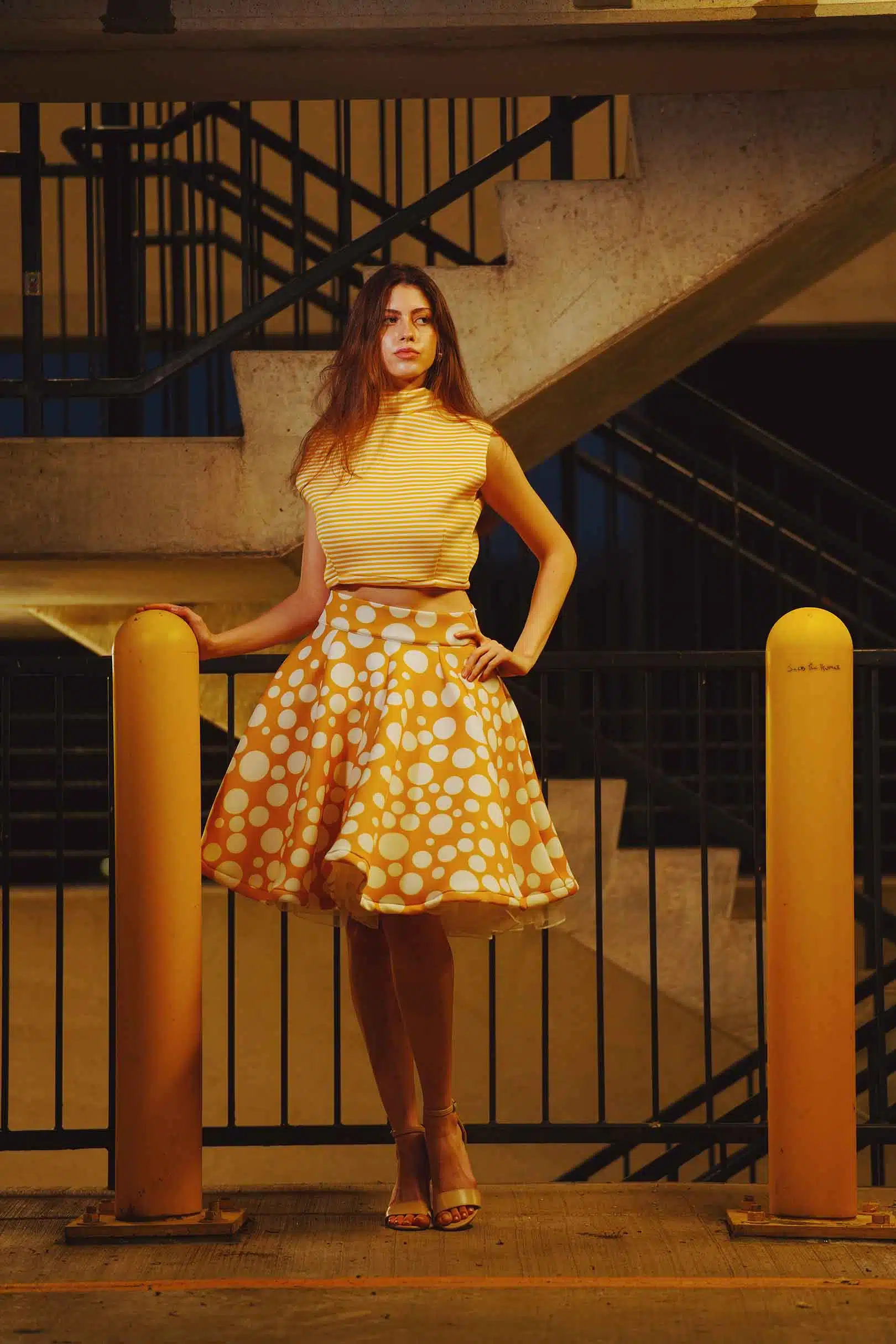The latest design from La’Moo stands out in an urban environment, as demonstrated by model Maja Esposito who poses in Hartford, and the suburban environment, as demonstrated by model Violet Jakupco in Farmington.