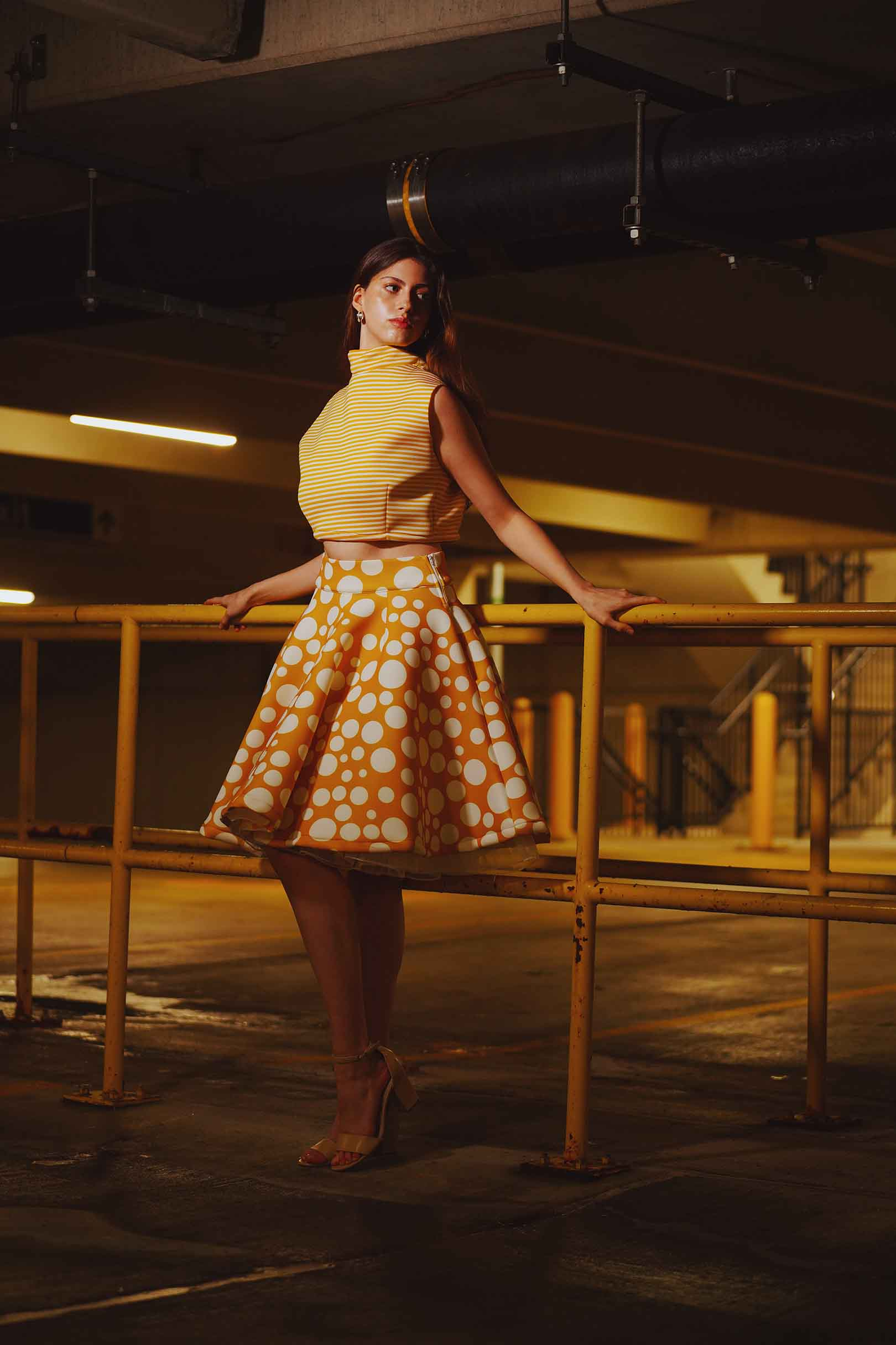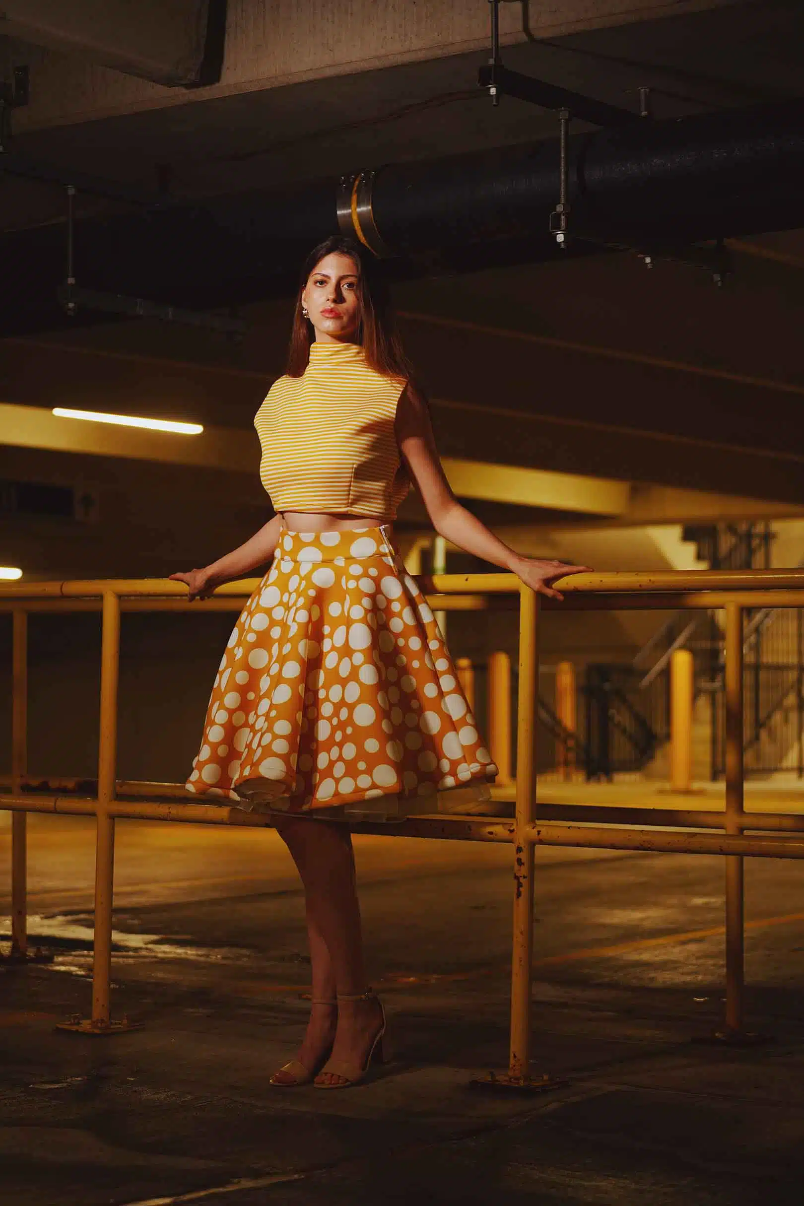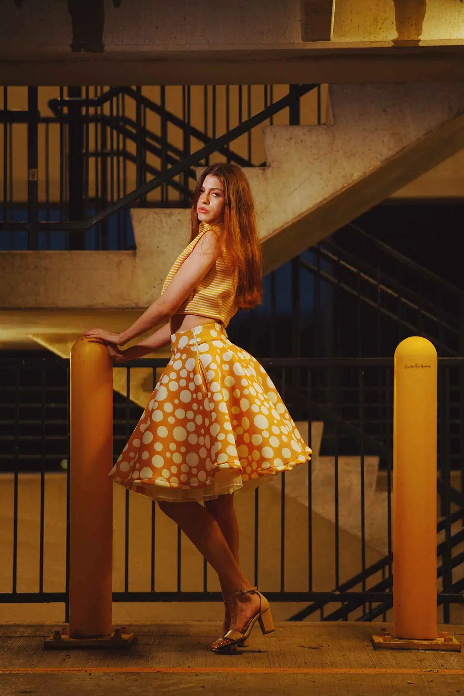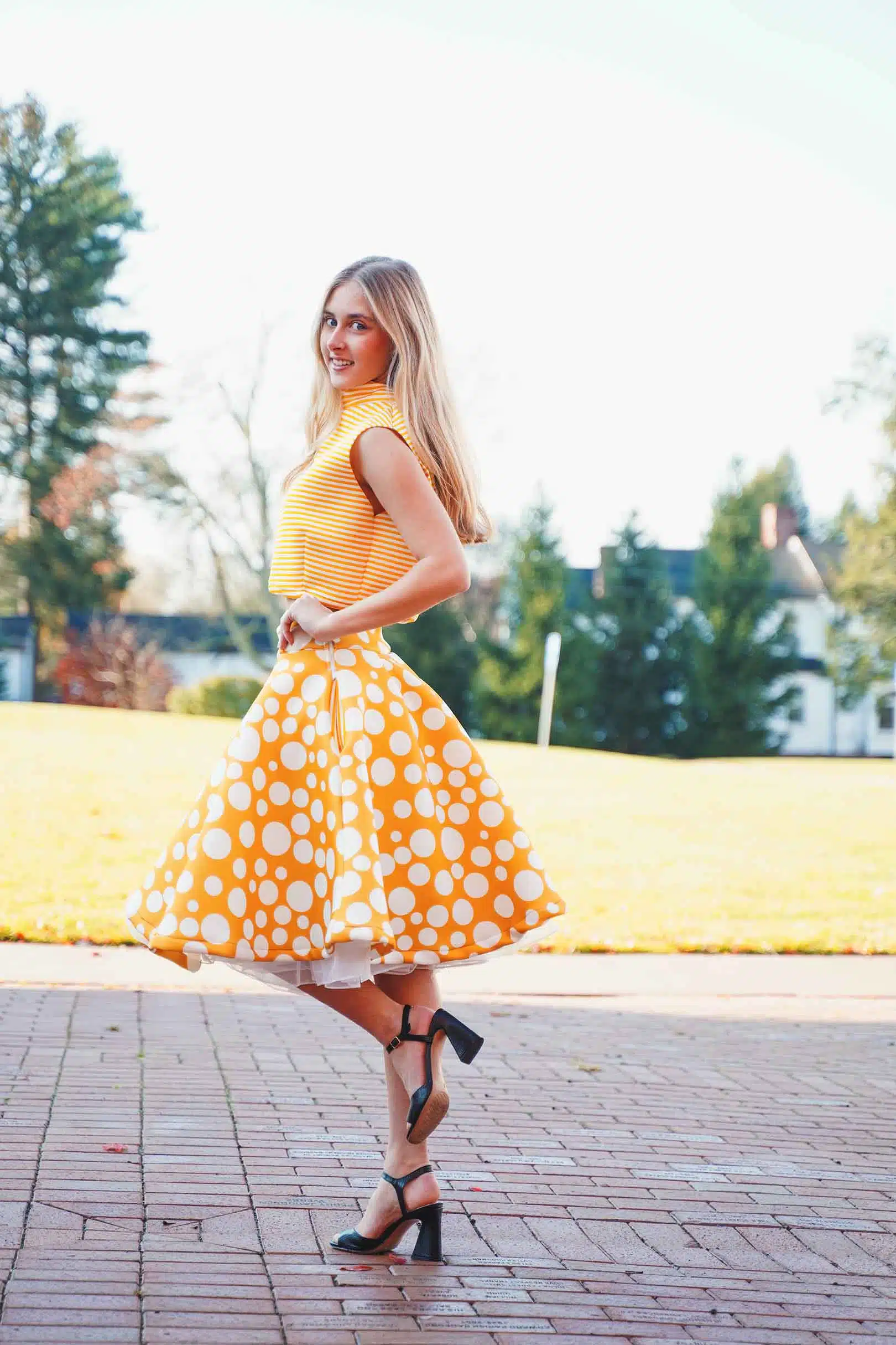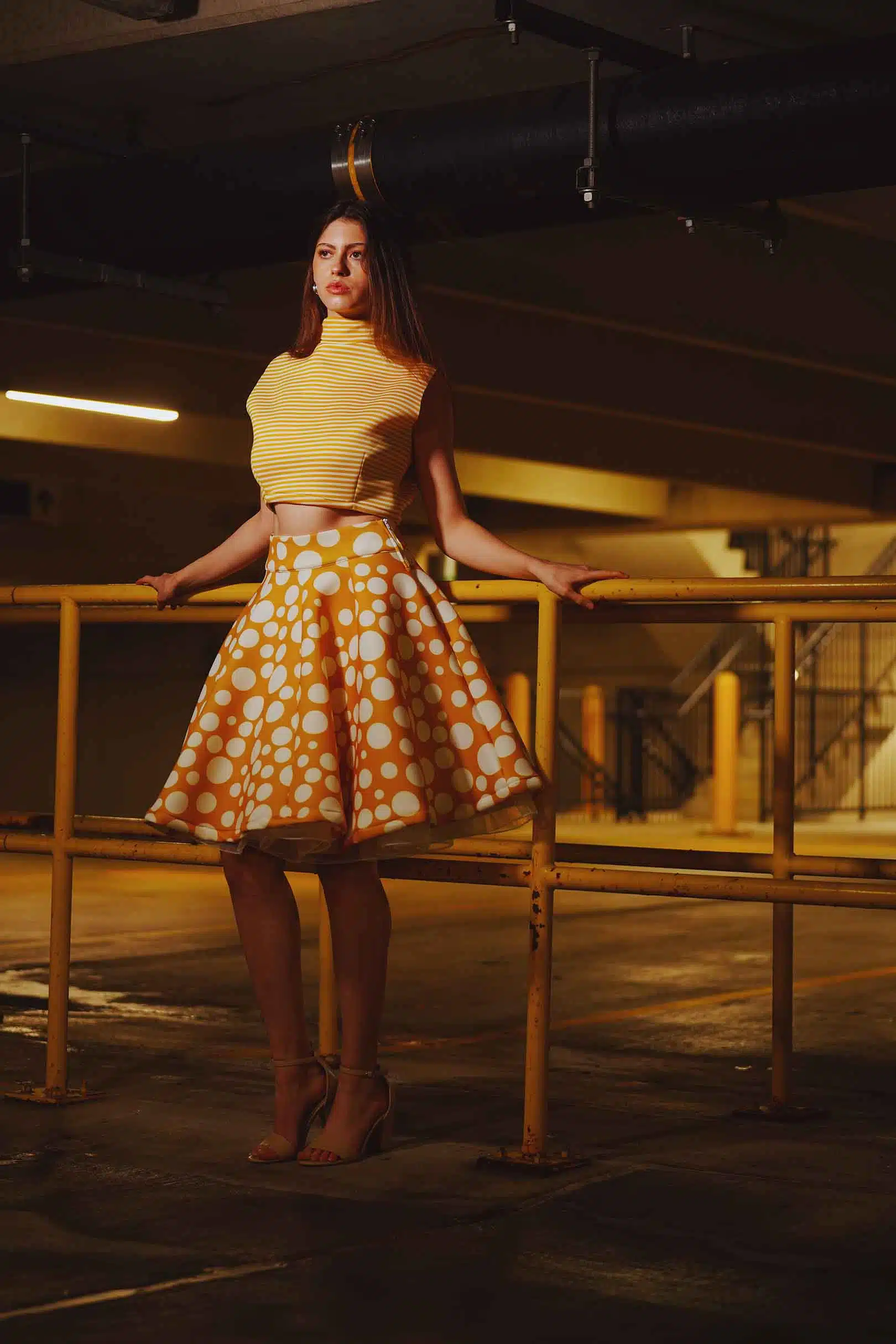 The latest design from La’Moo stands out in an urban environment, as demonstrated by model Maja Esposito who poses in Hartford, and the suburban environment, as demonstrated by model Violet Jakupco in Farmington.