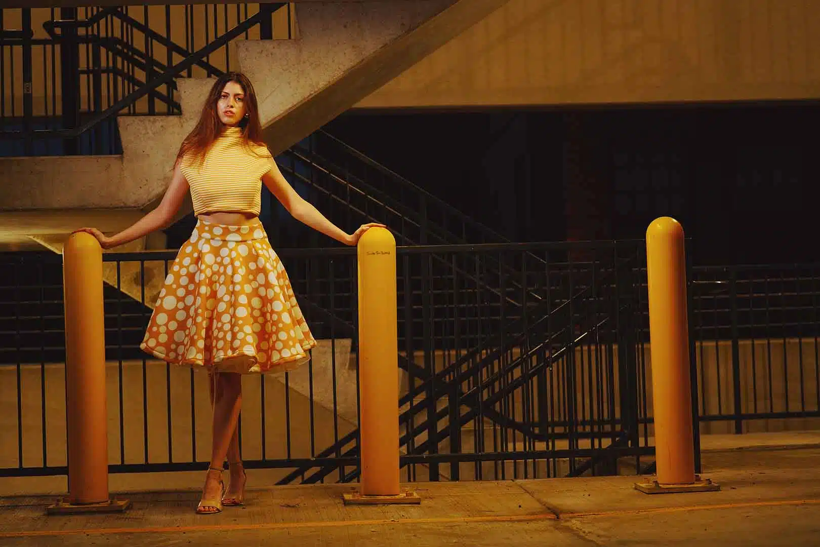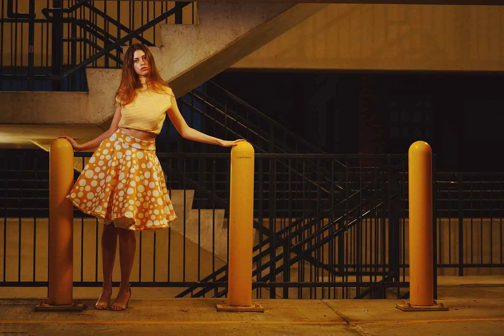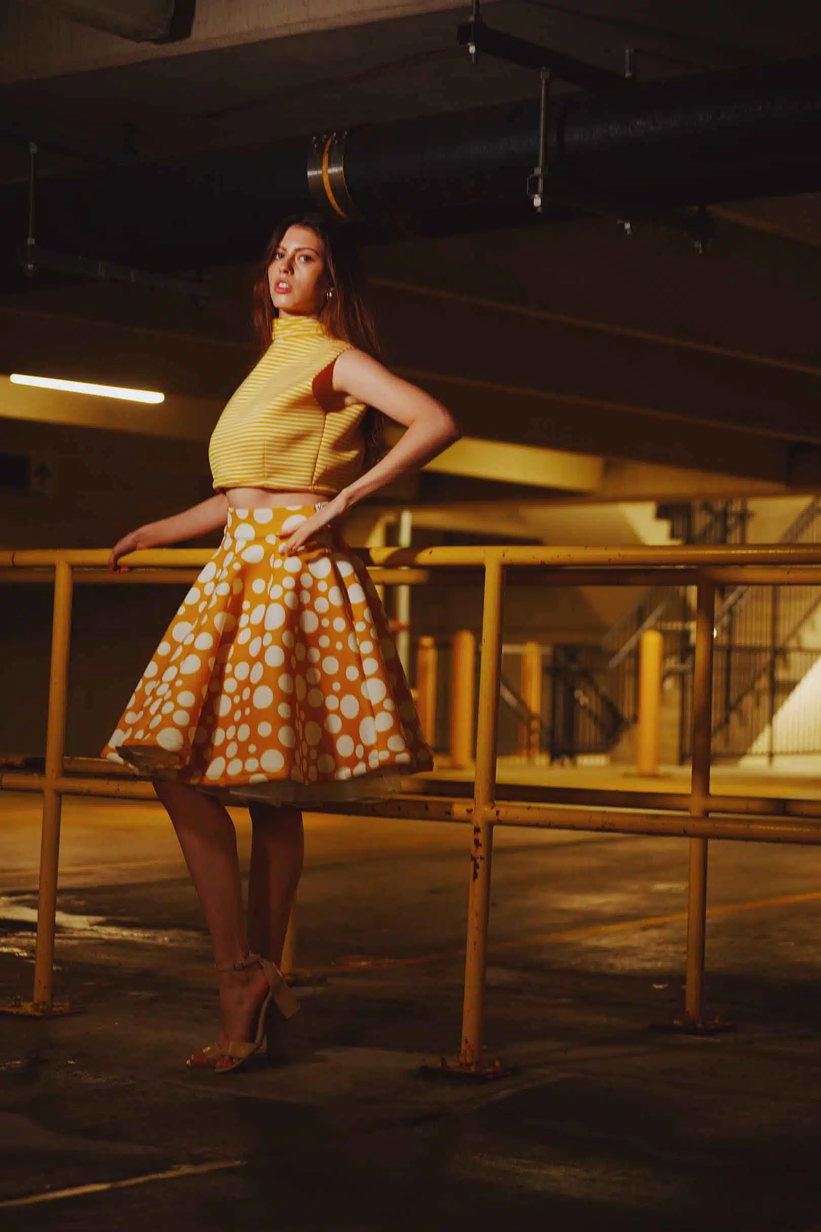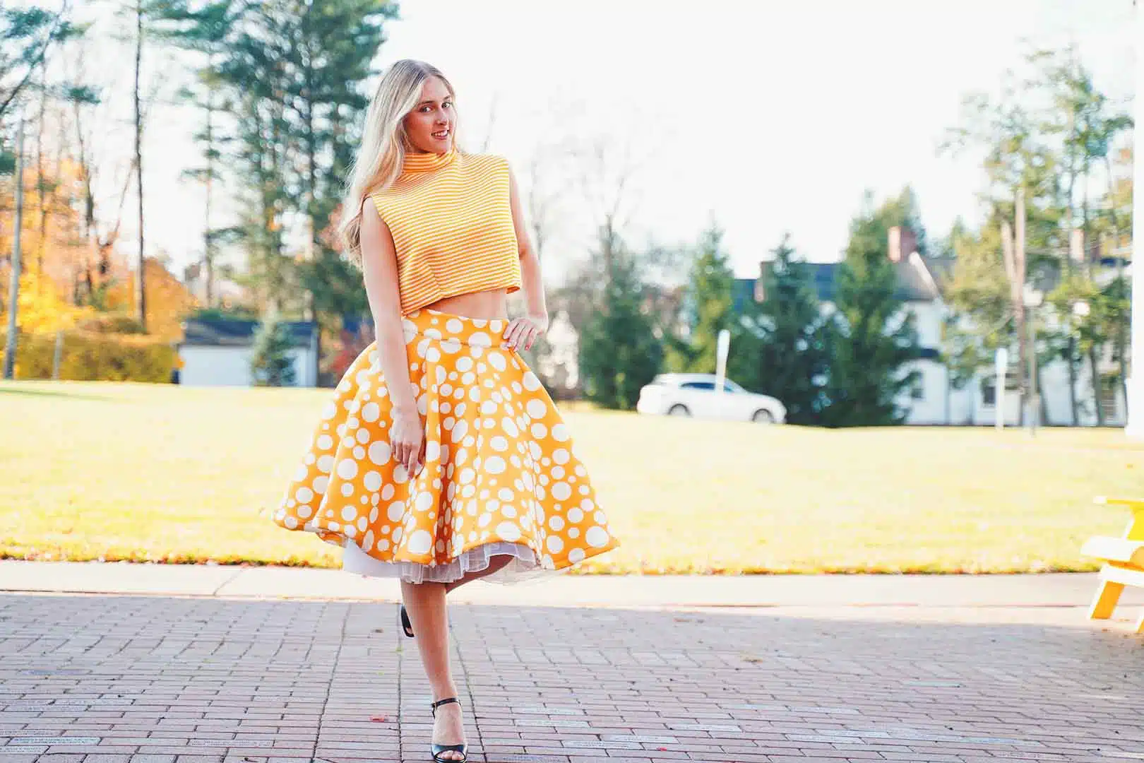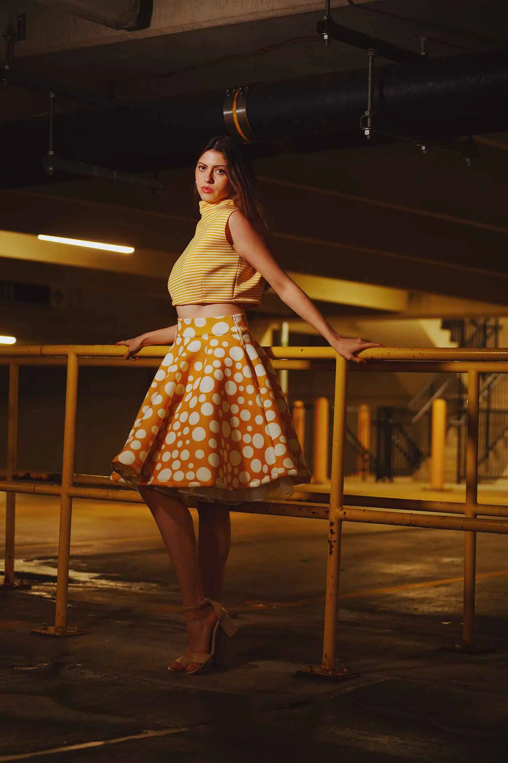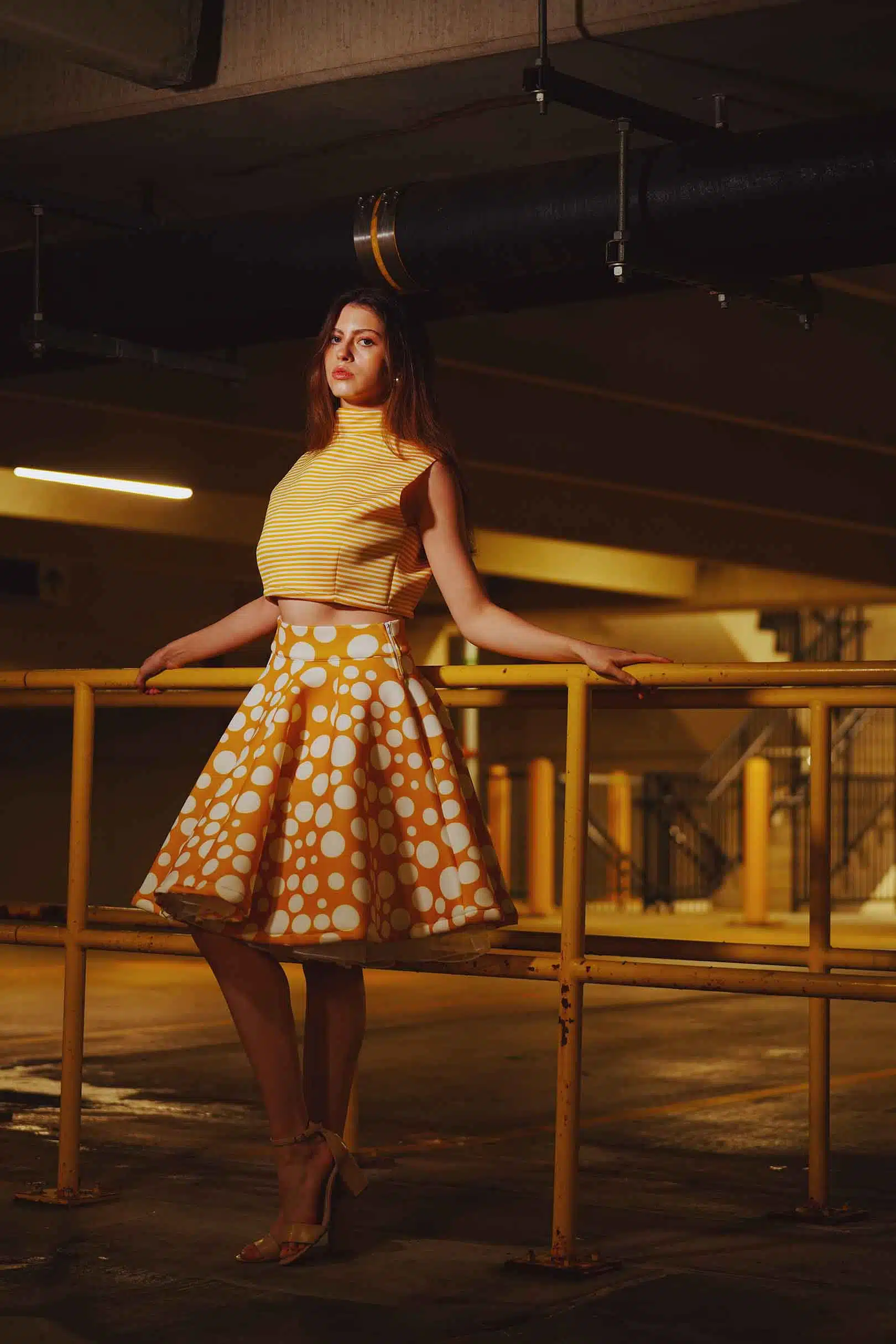 The latest design from La’Moo stands out in an urban environment, as demonstrated by model Maja Esposito who poses in Hartford, and the suburban environment, as demonstrated by model Violet Jakupco in Farmington.