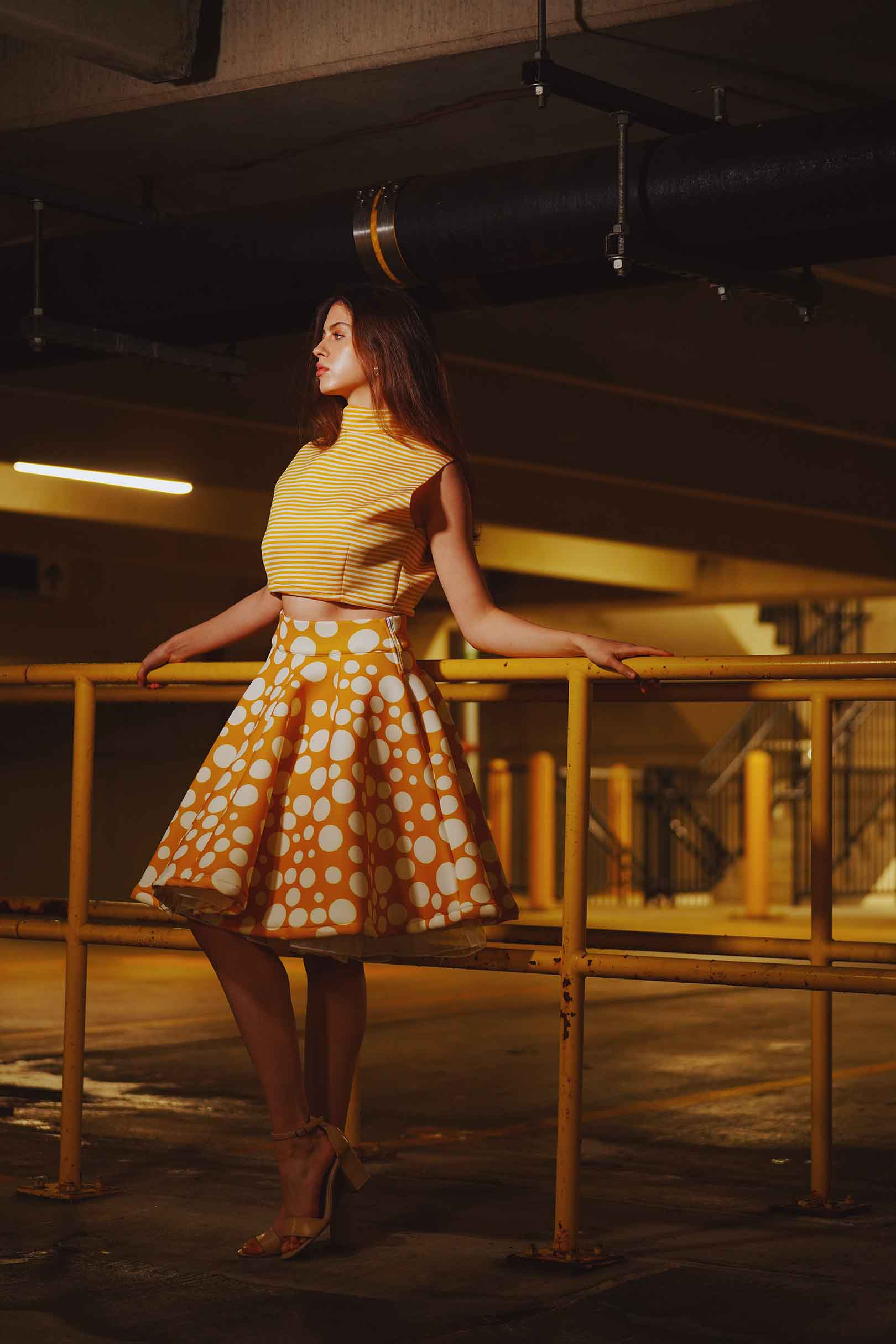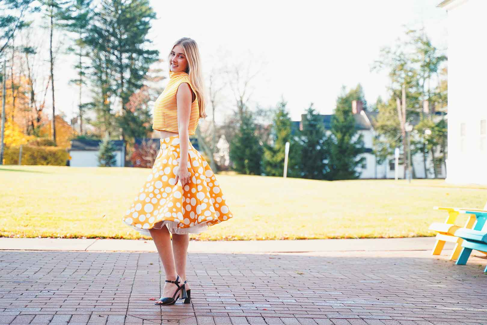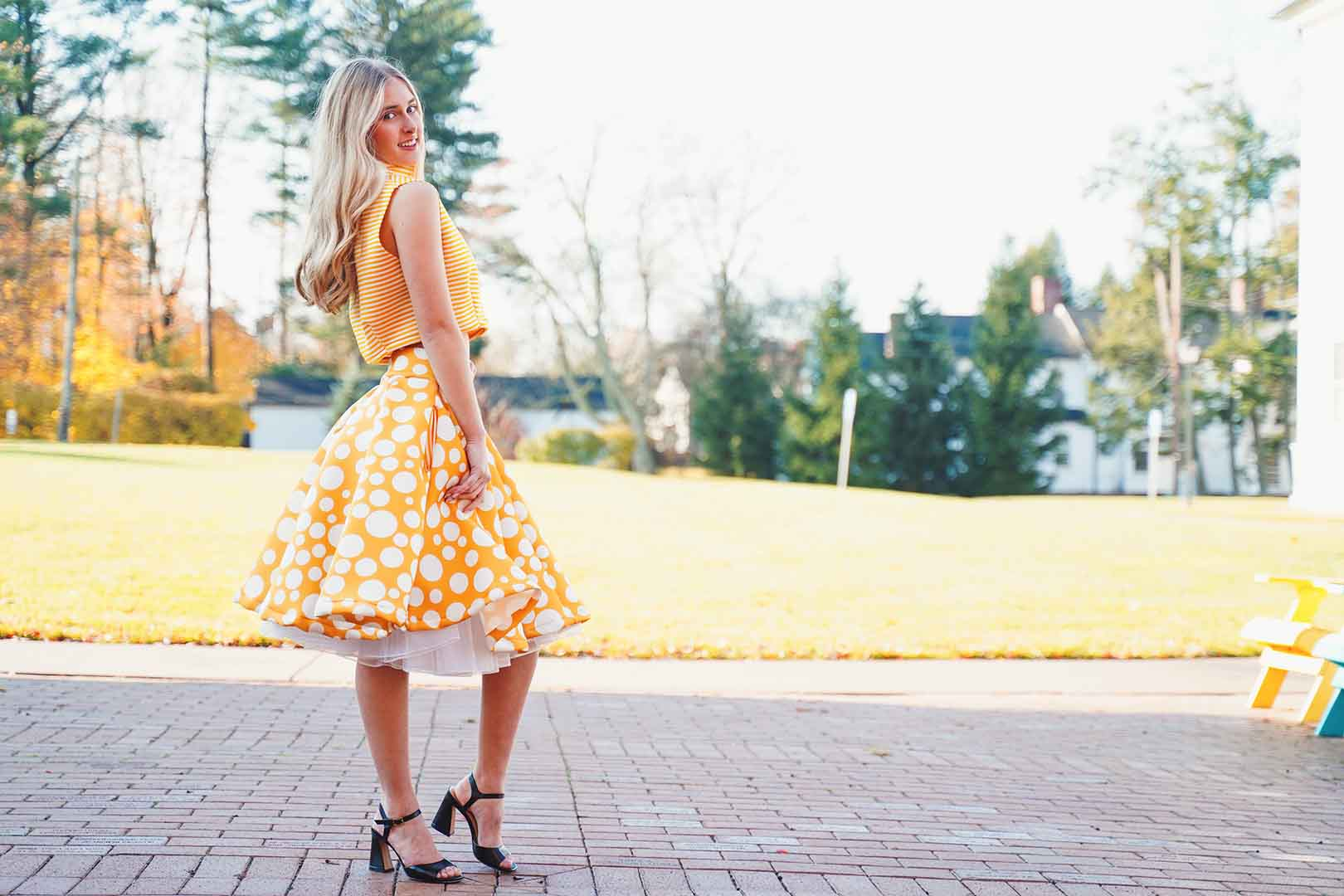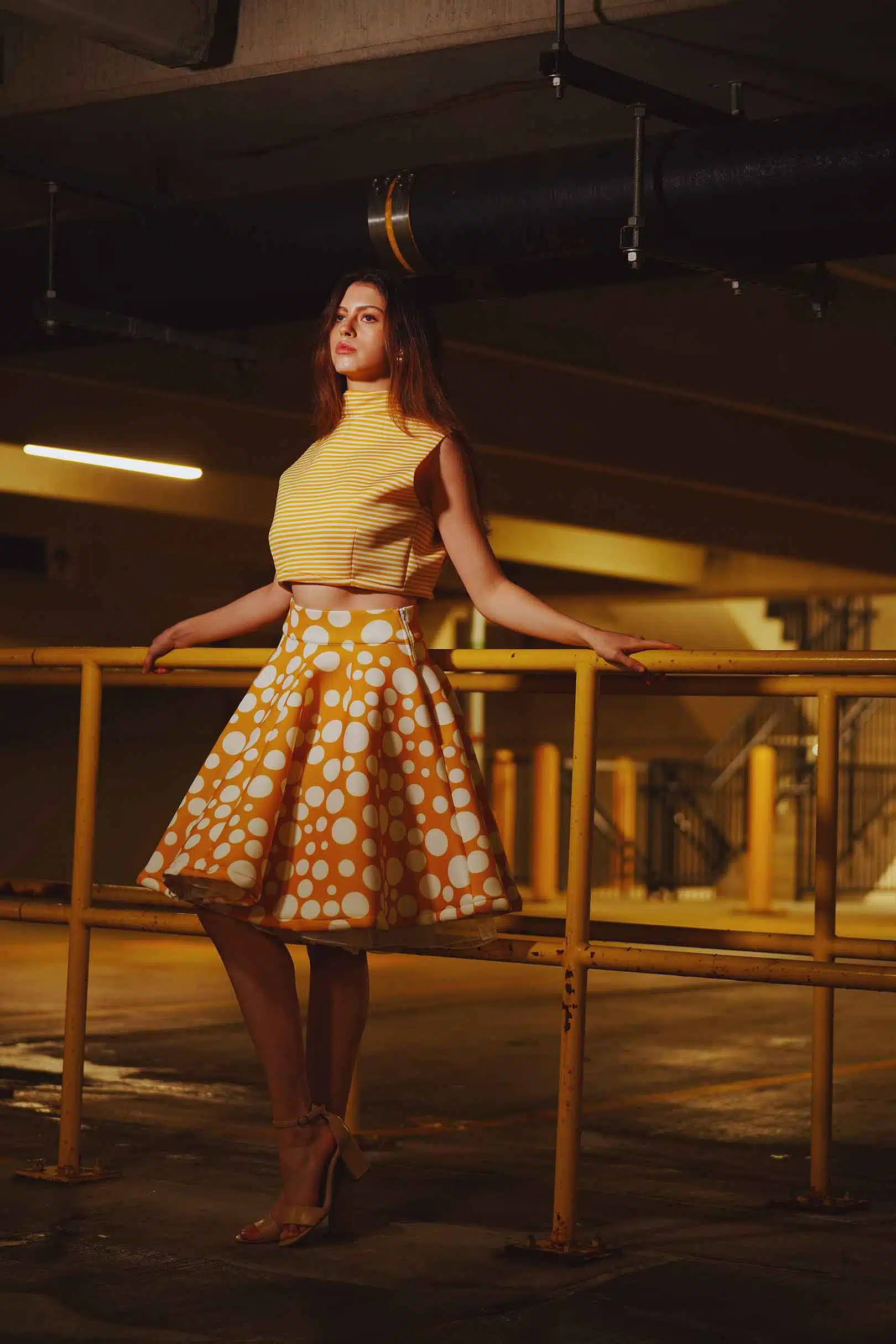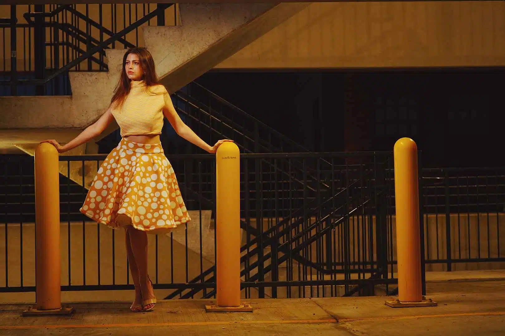 The latest design from La’Moo stands out in an urban environment, as demonstrated by model Maja Esposito who poses in Hartford, and the suburban environment, as demonstrated by model Violet Jakupco in Farmington.