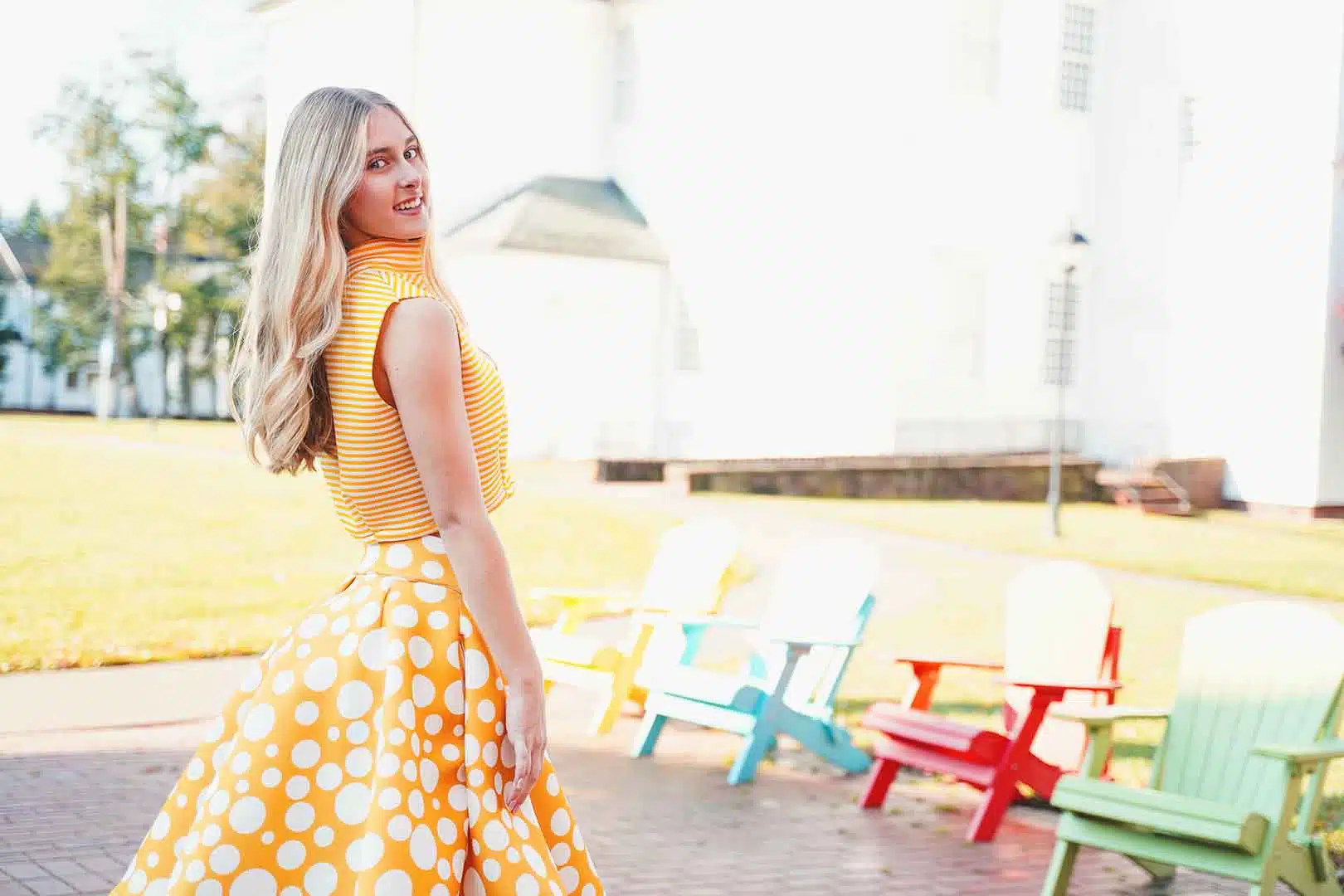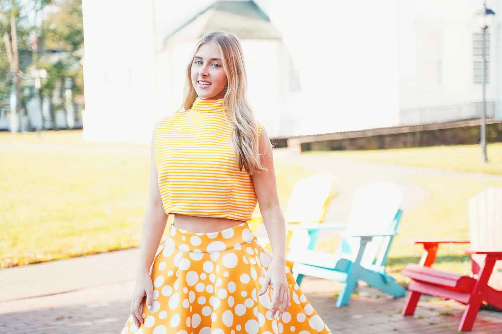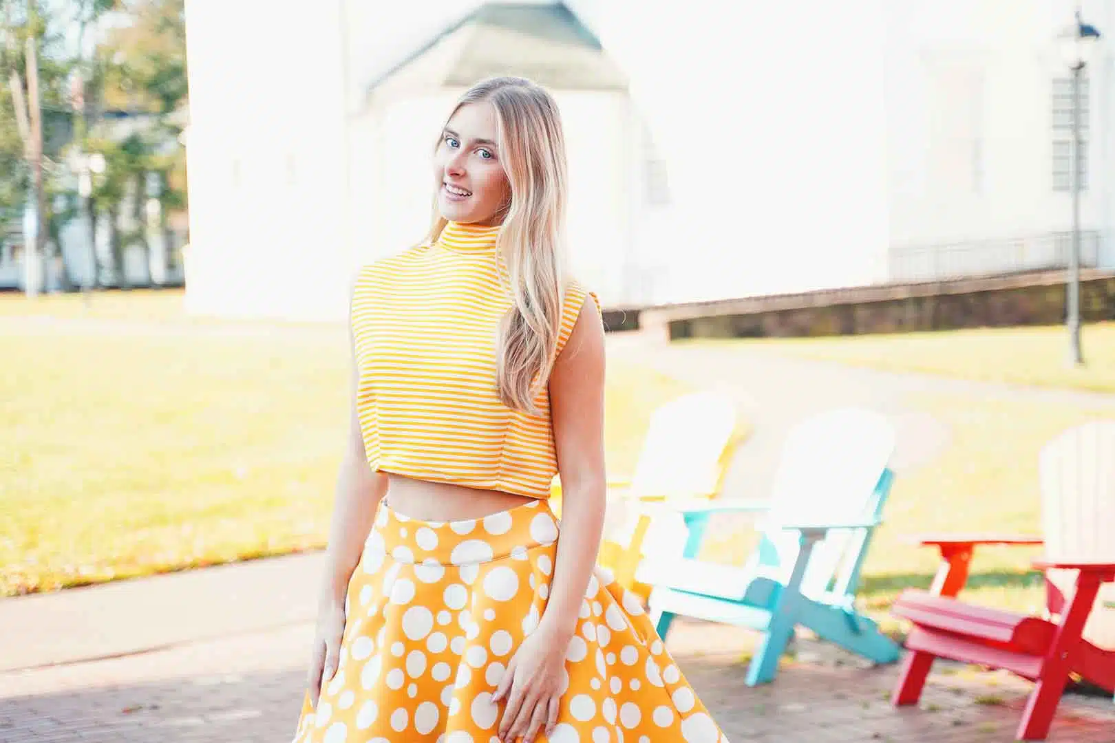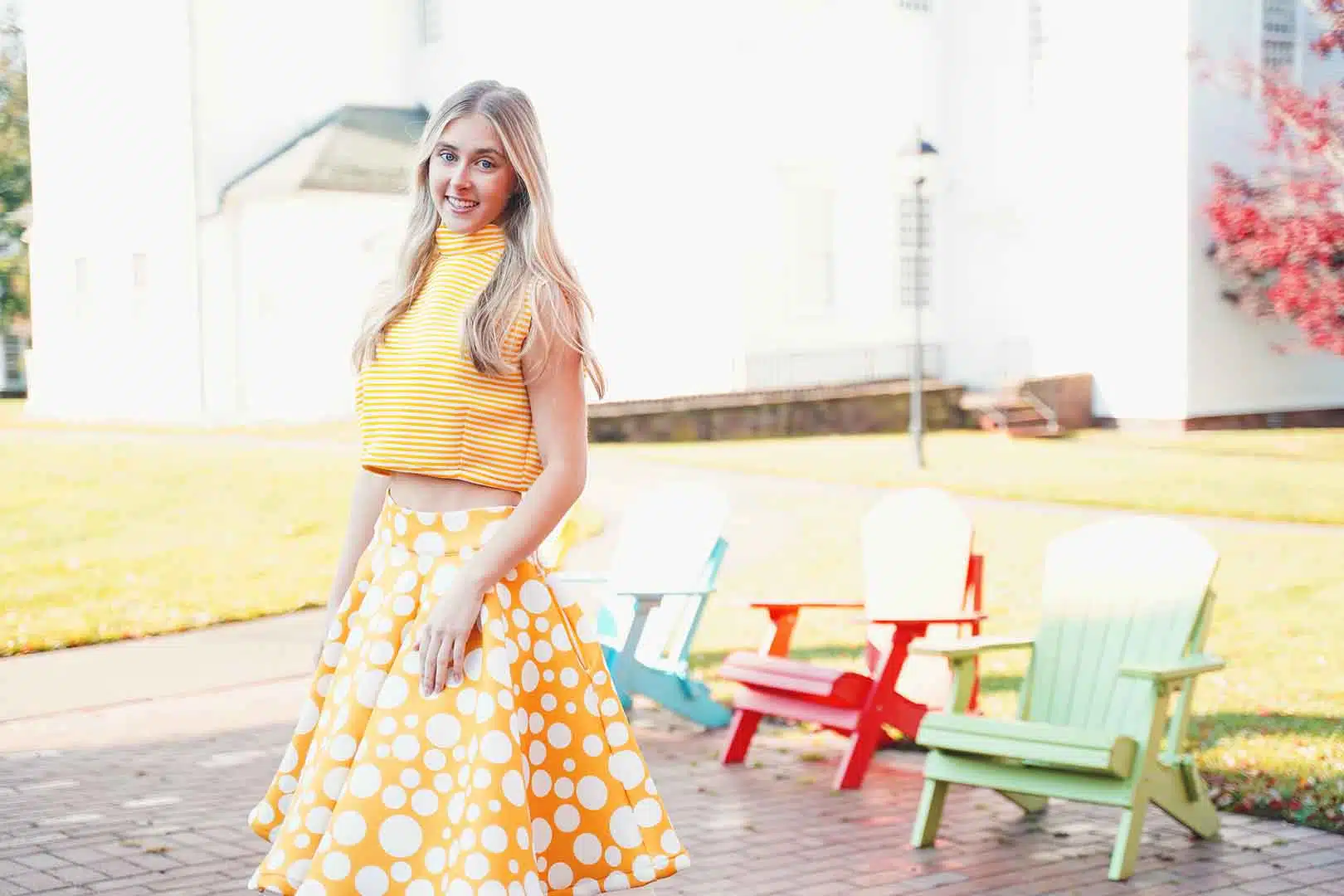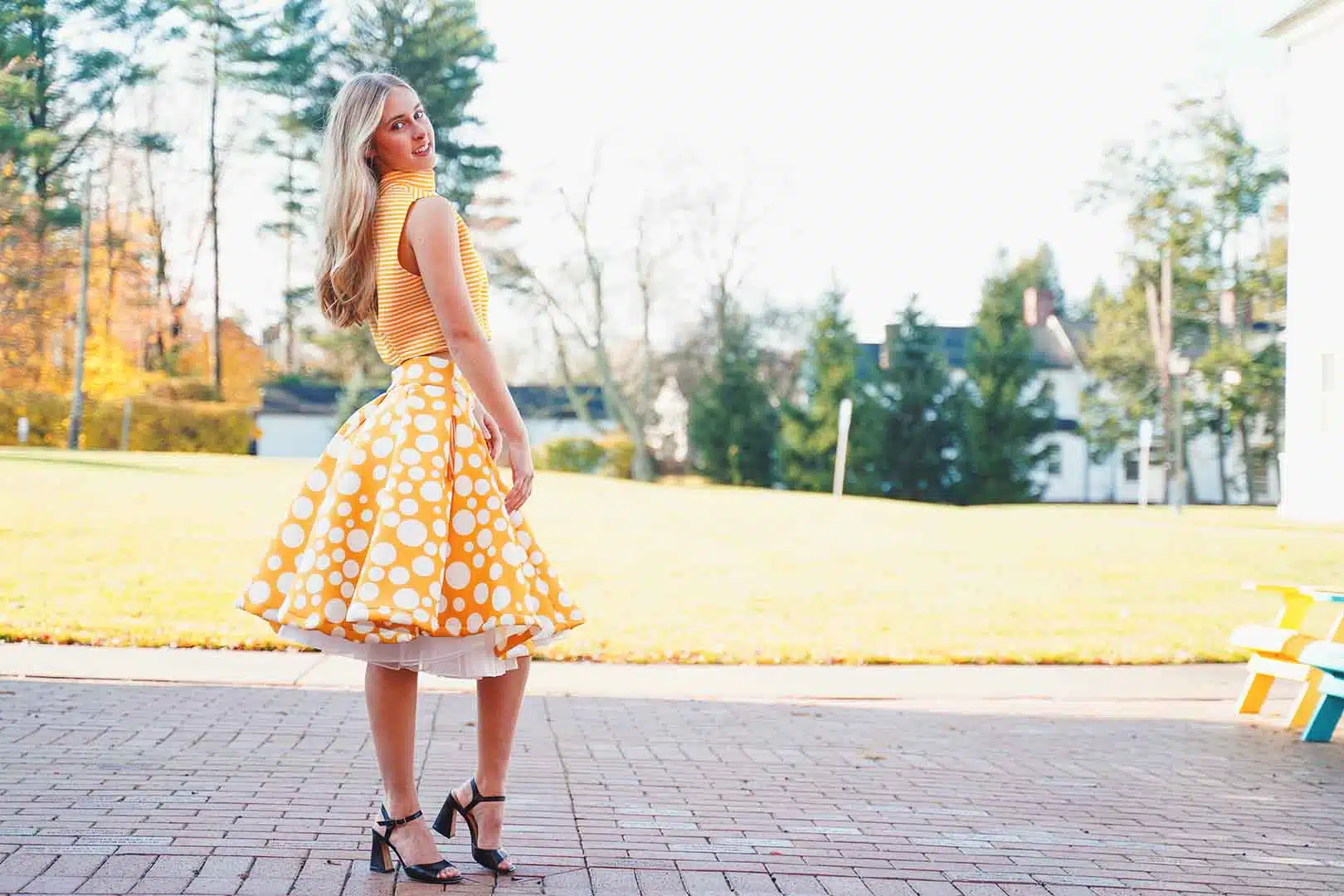 The latest design from La’Moo stands out in an urban environment, as demonstrated by model Maja Esposito who poses in Hartford, and the suburban environment, as demonstrated by model Violet Jakupco in Farmington.