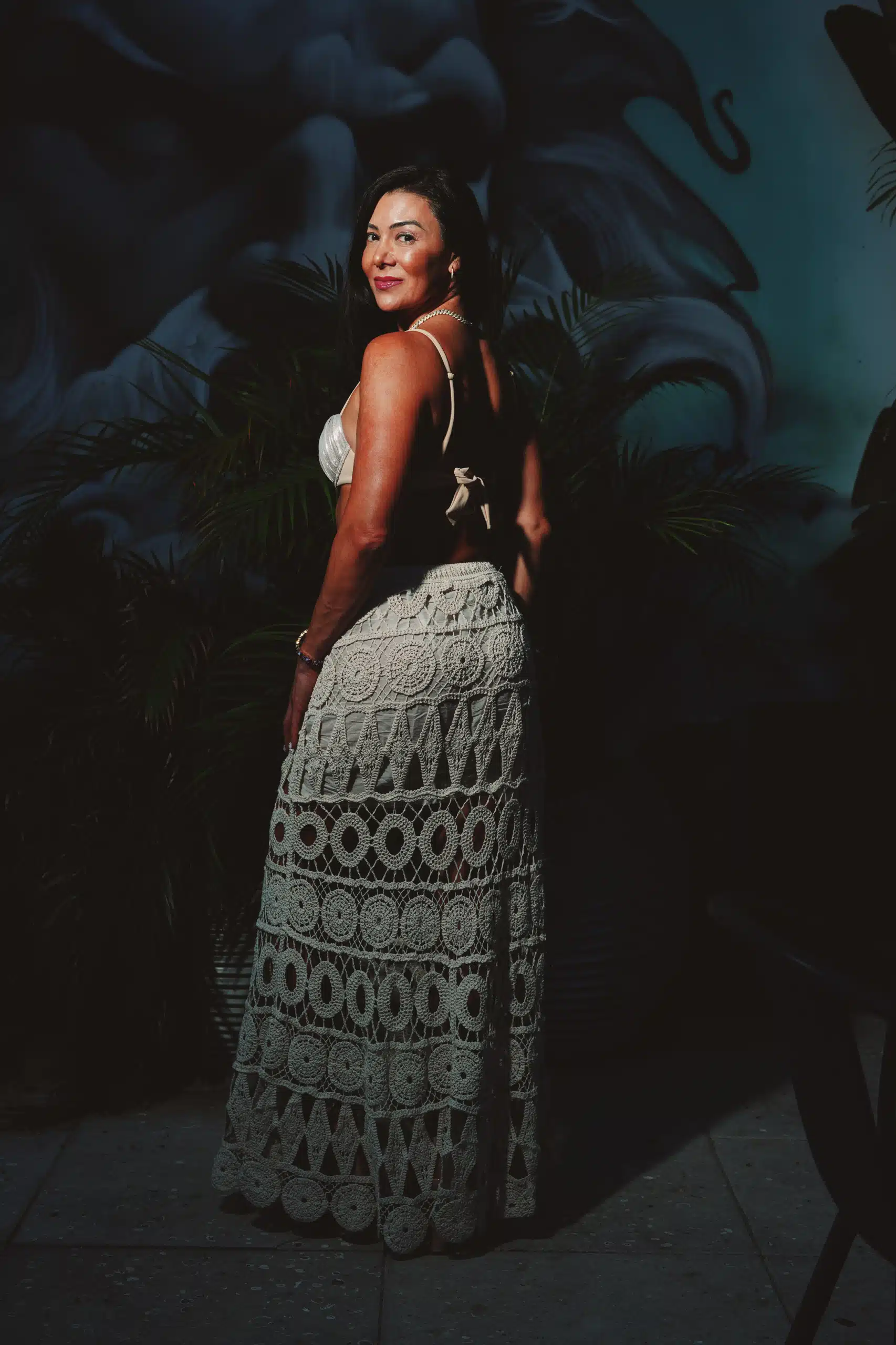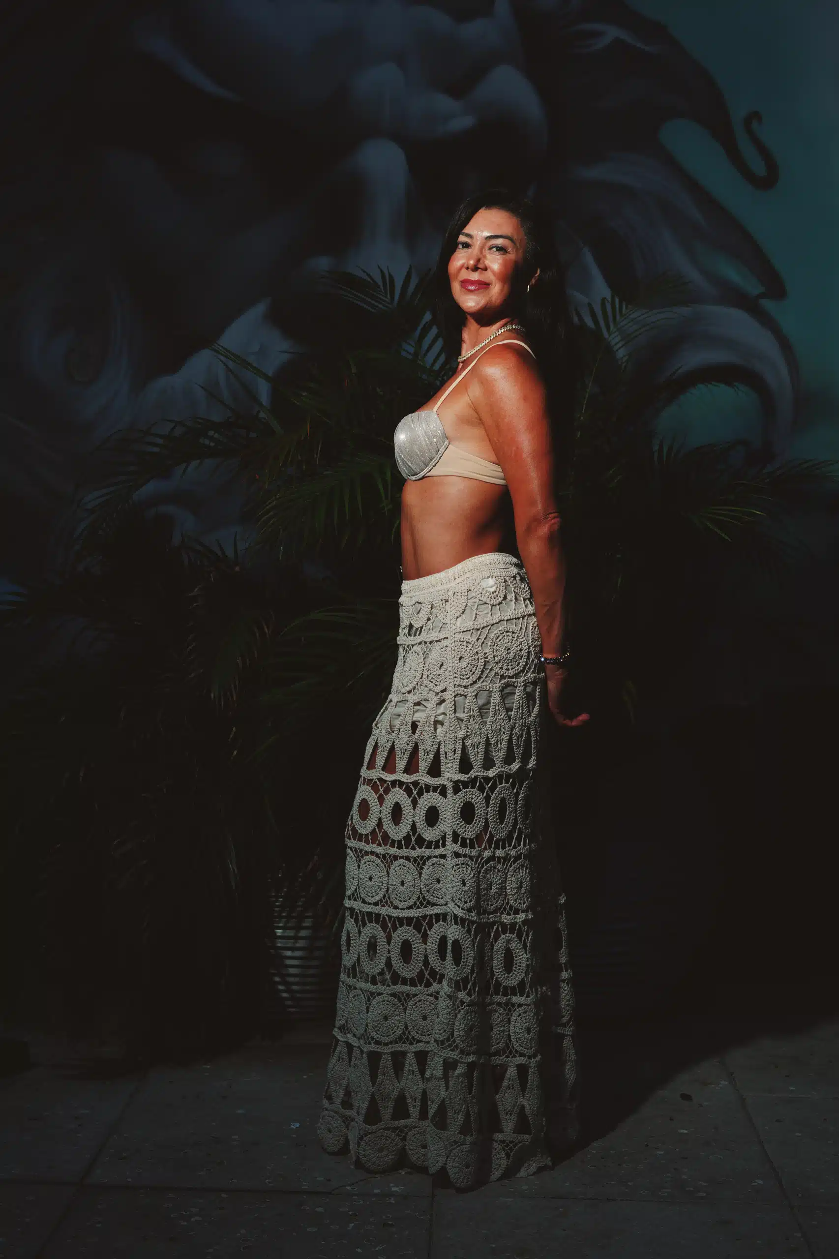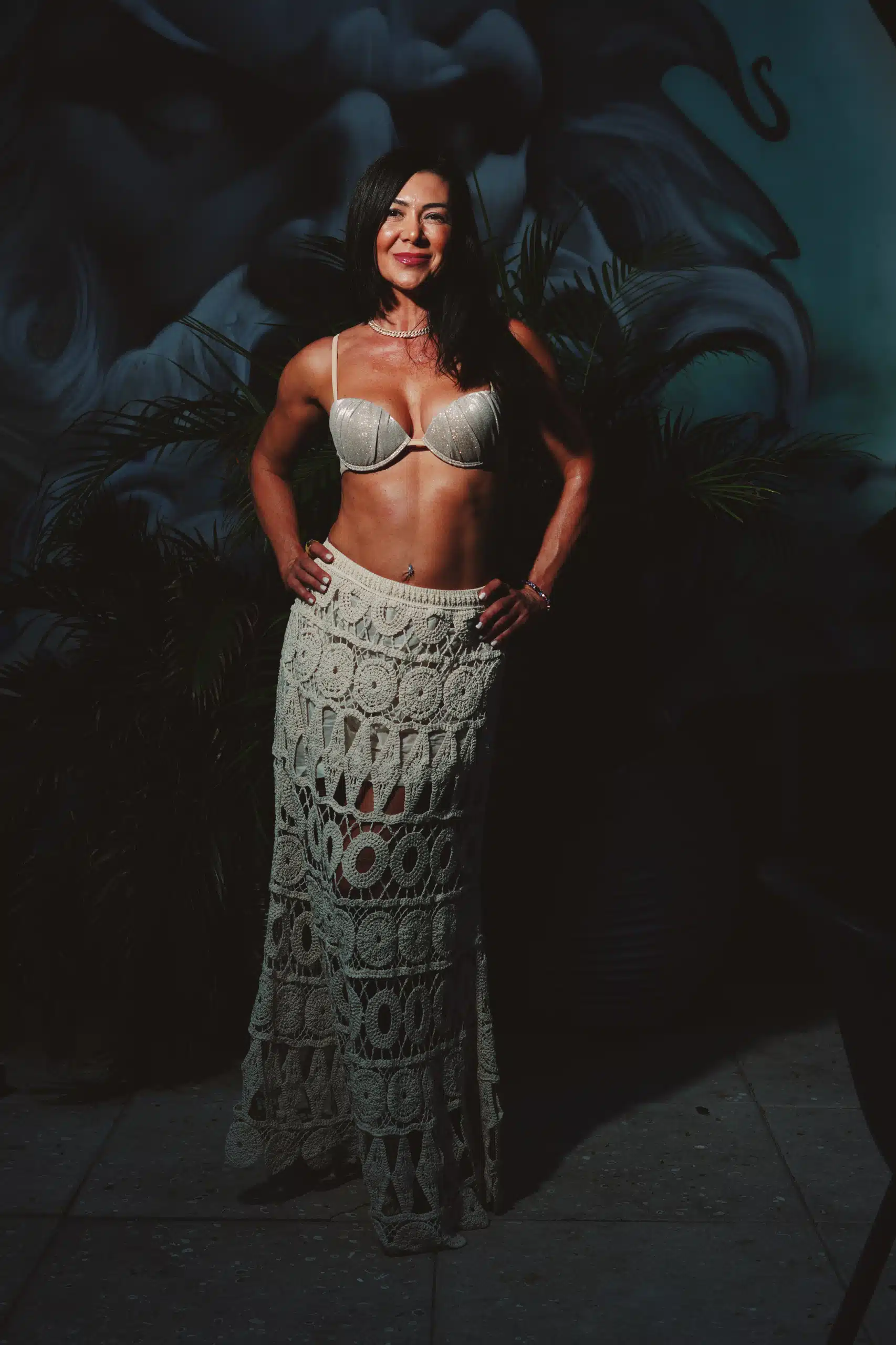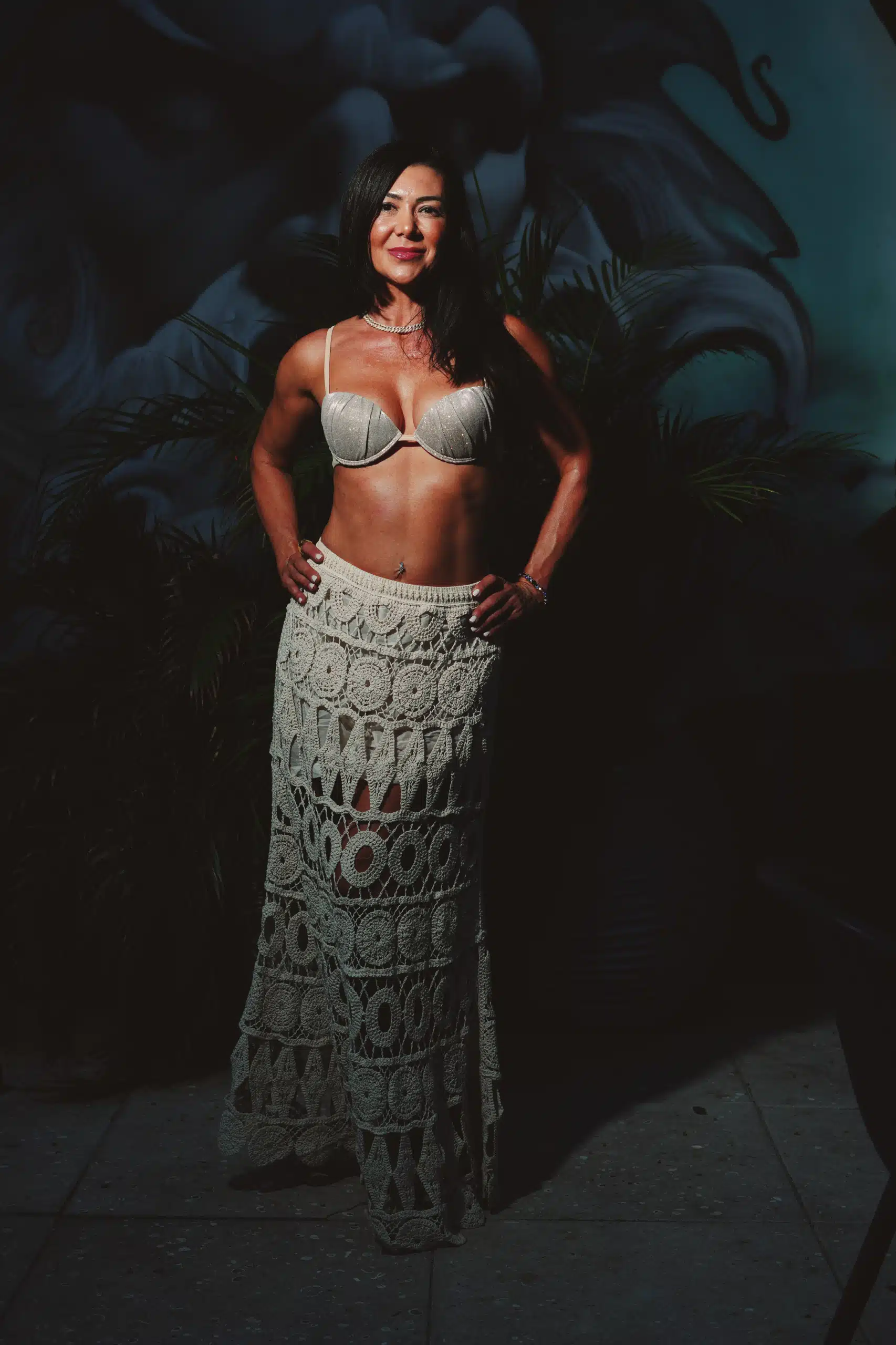 Audrey Salvatierra, who was competing at Miss Bikini US as Miss Bikini Wellness Miami Fitness, looks chic in this ensemble that is fitting from the transition from the shore to a chic eatery along Ocean Drive in Miami Beach.