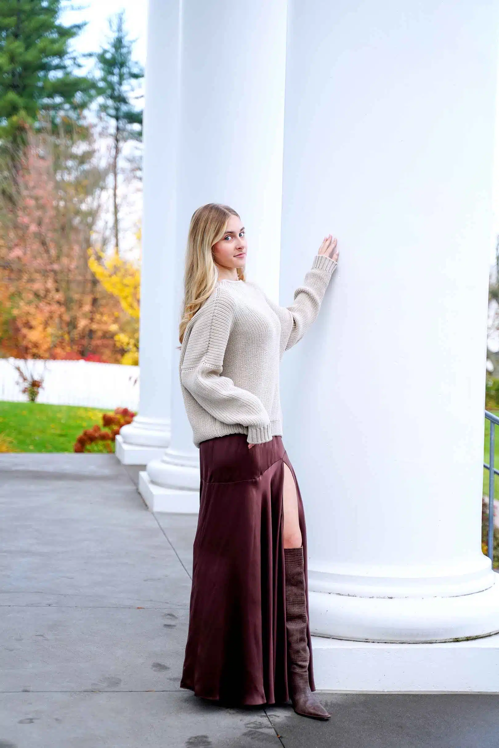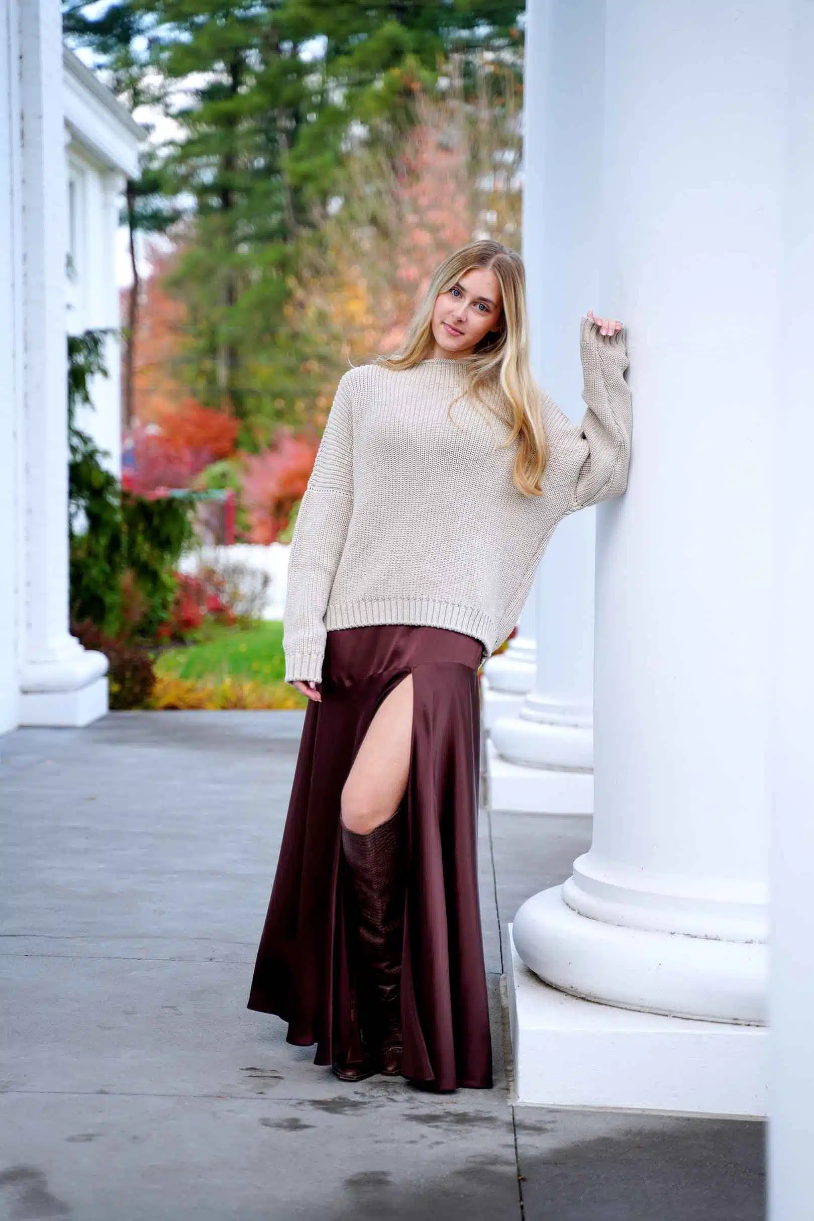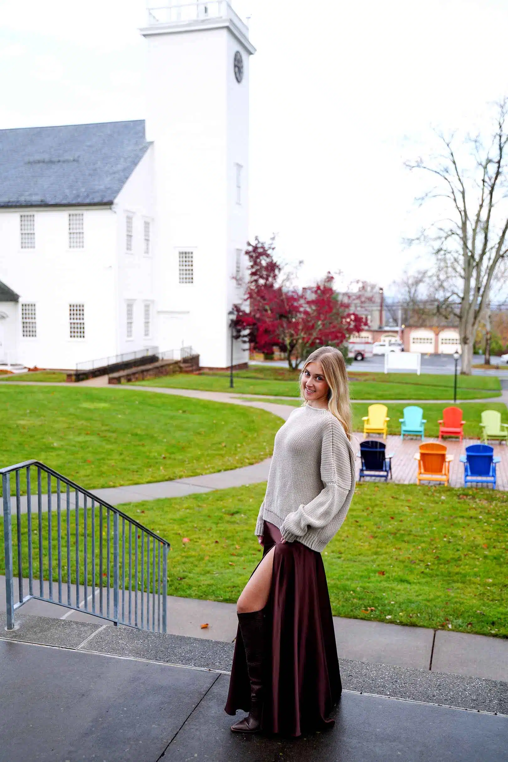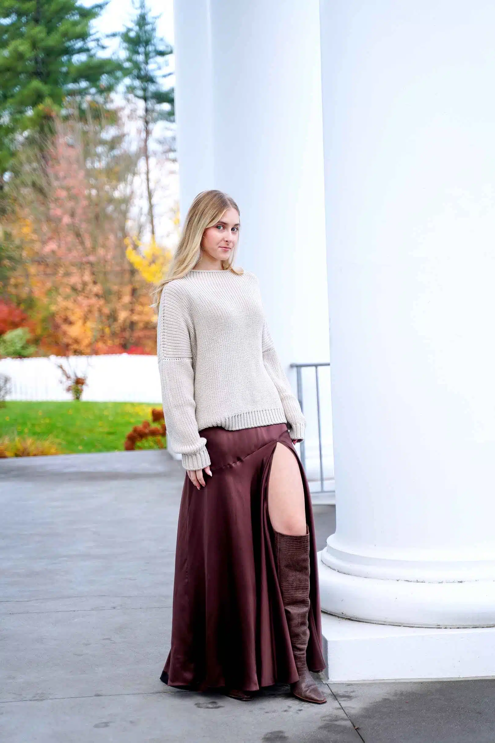 The air is crisp. The mornings find frost on your car windshields. It’s a typical New England fall heading into the Thanksgiving holiday. In this fashion editorial, model Violet Jakupco finds a perfect autumn look from Connecticut brand Ecoforia (http://www.ecoforia.us).