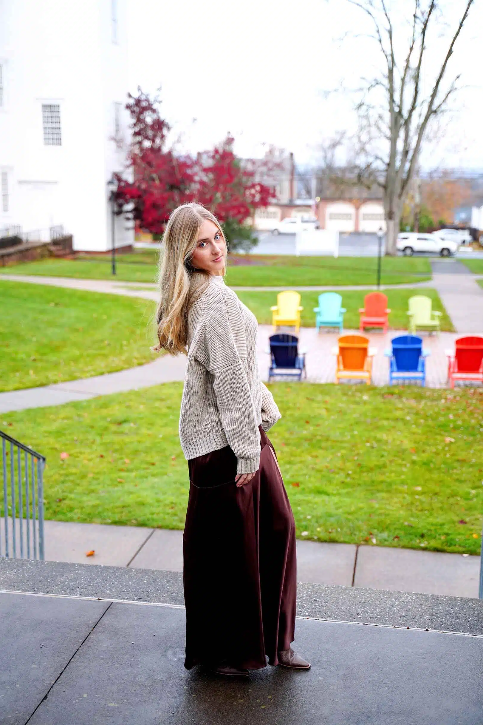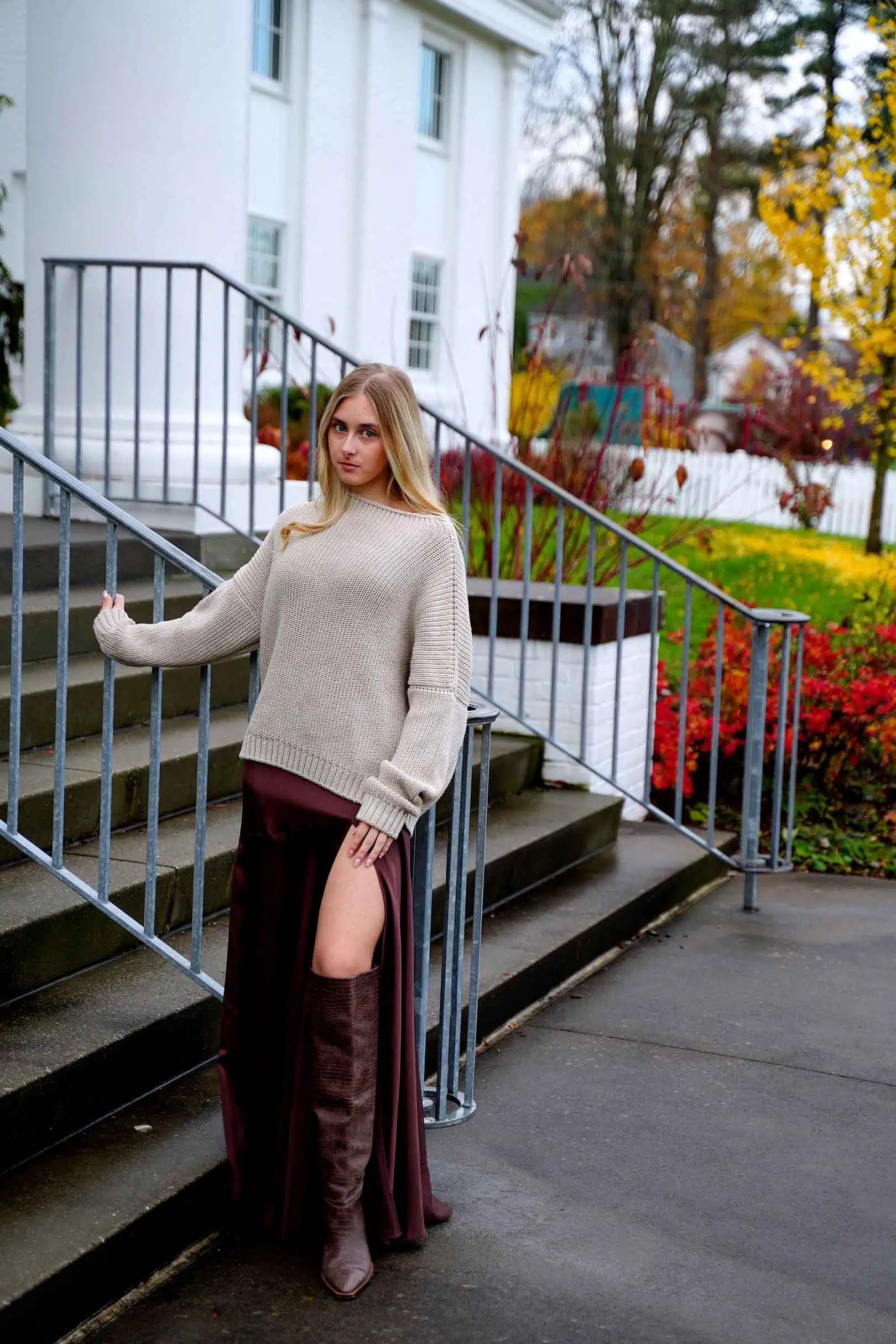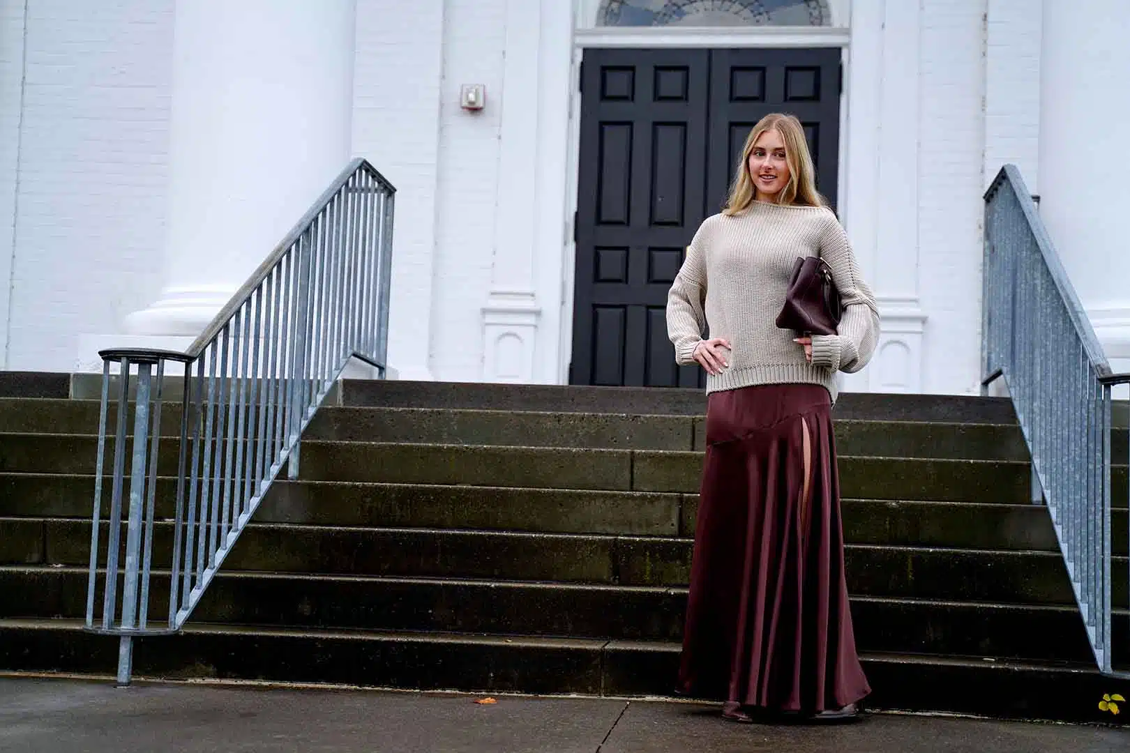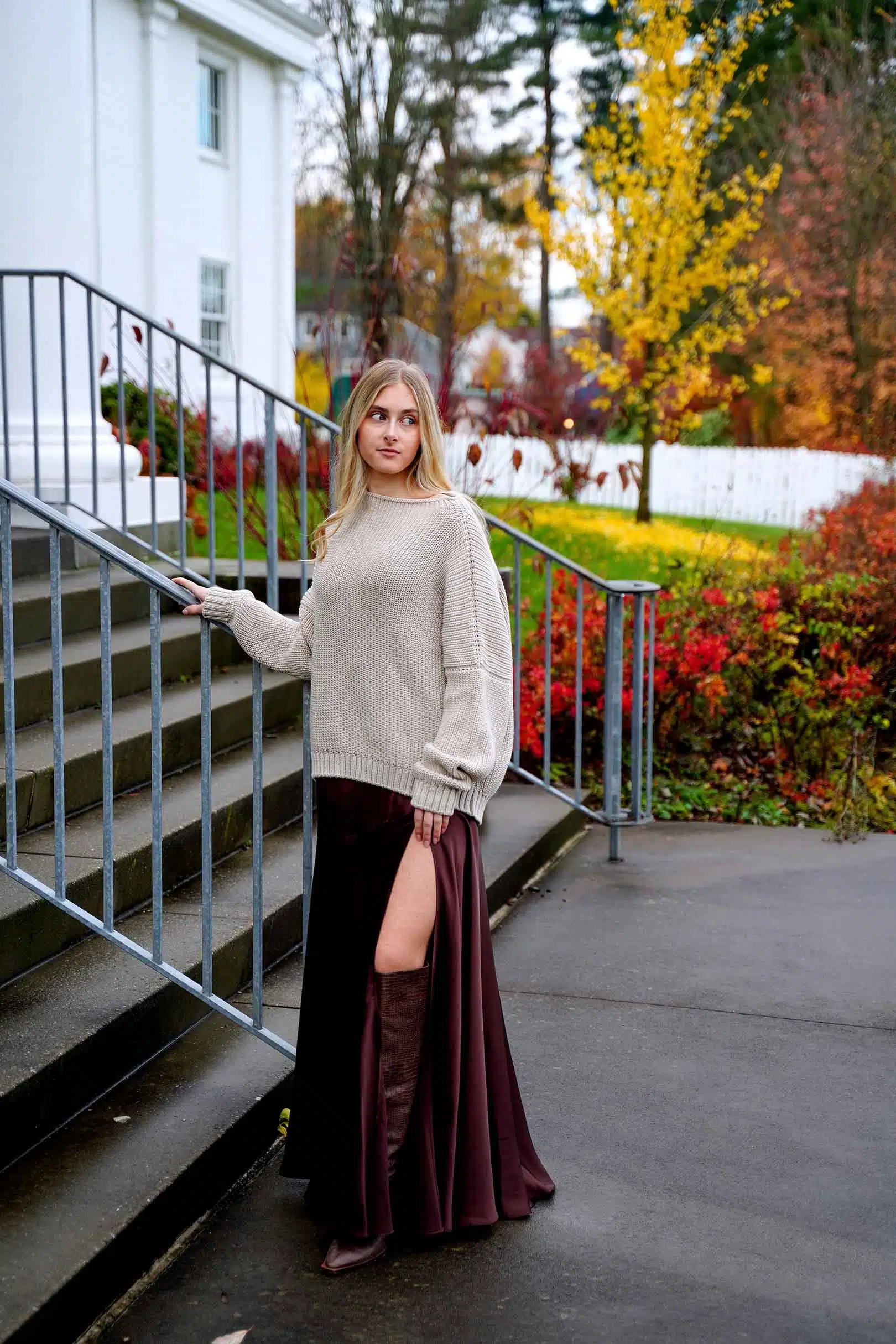 The air is crisp. The mornings find frost on your car windshields. It’s a typical New England fall heading into the Thanksgiving holiday. In this fashion editorial, model Violet Jakupco finds a perfect autumn look from Connecticut brand Ecoforia (http://www.ecoforia.us).