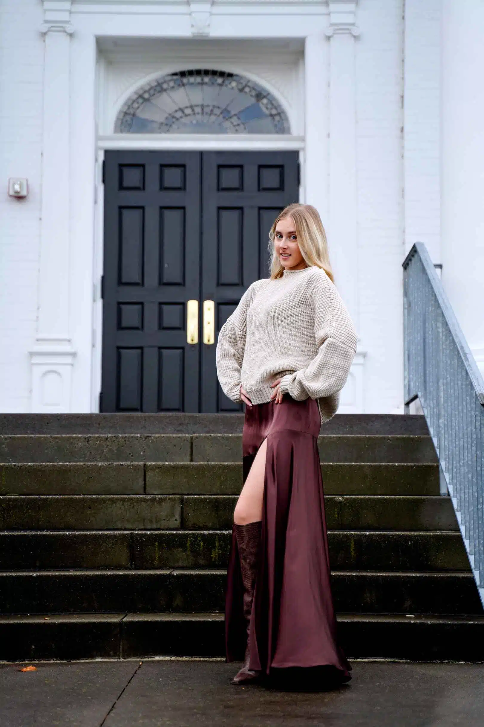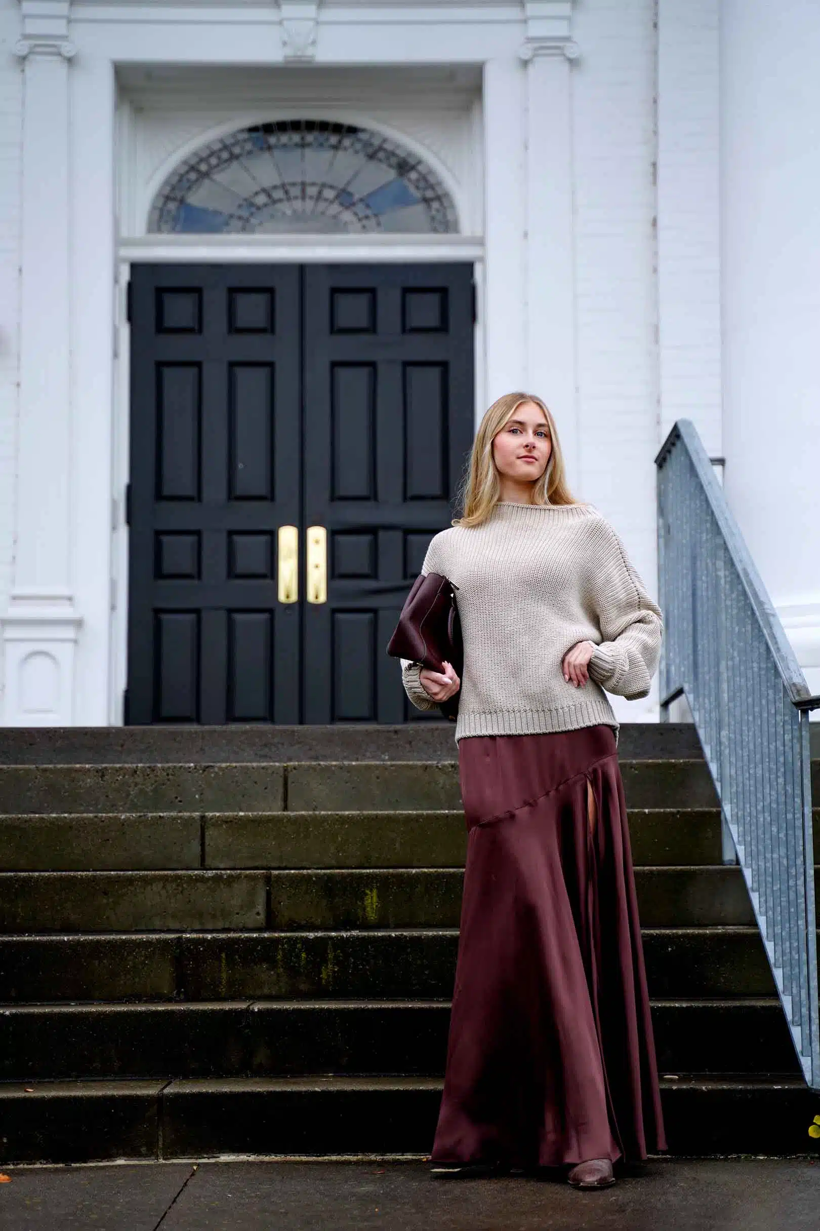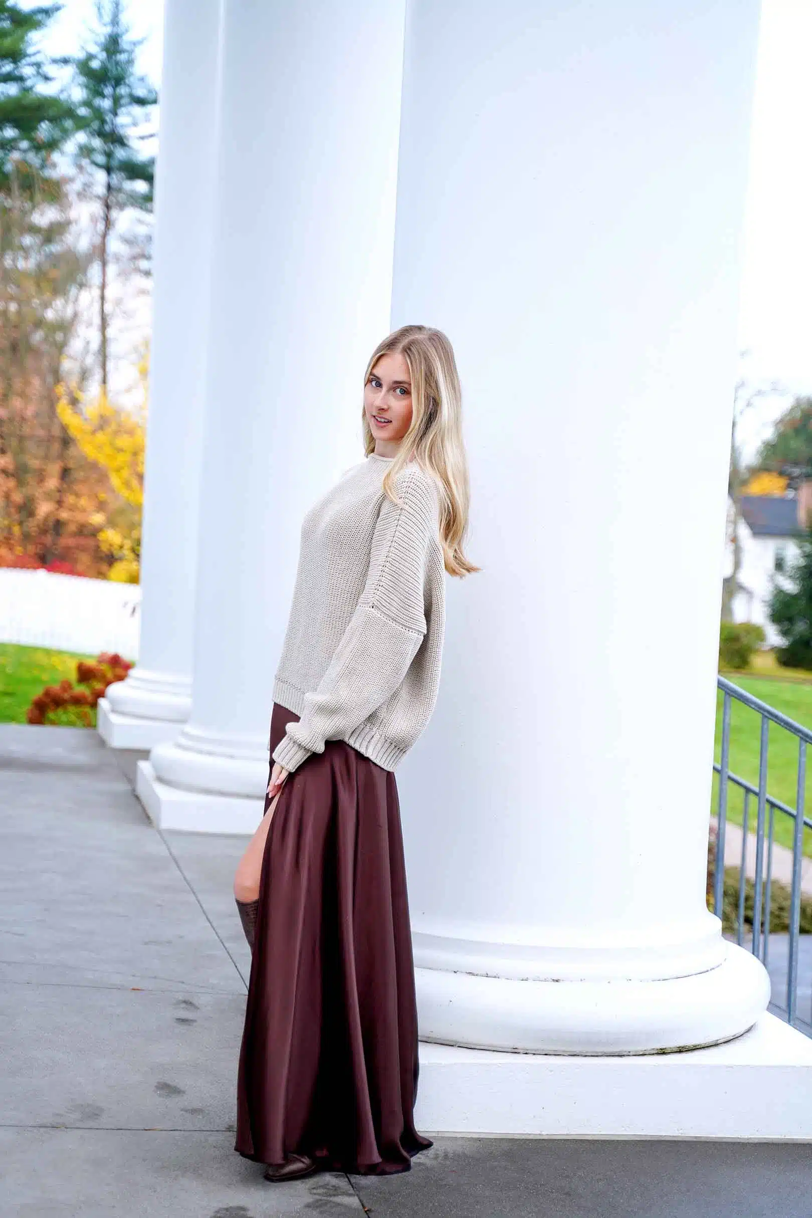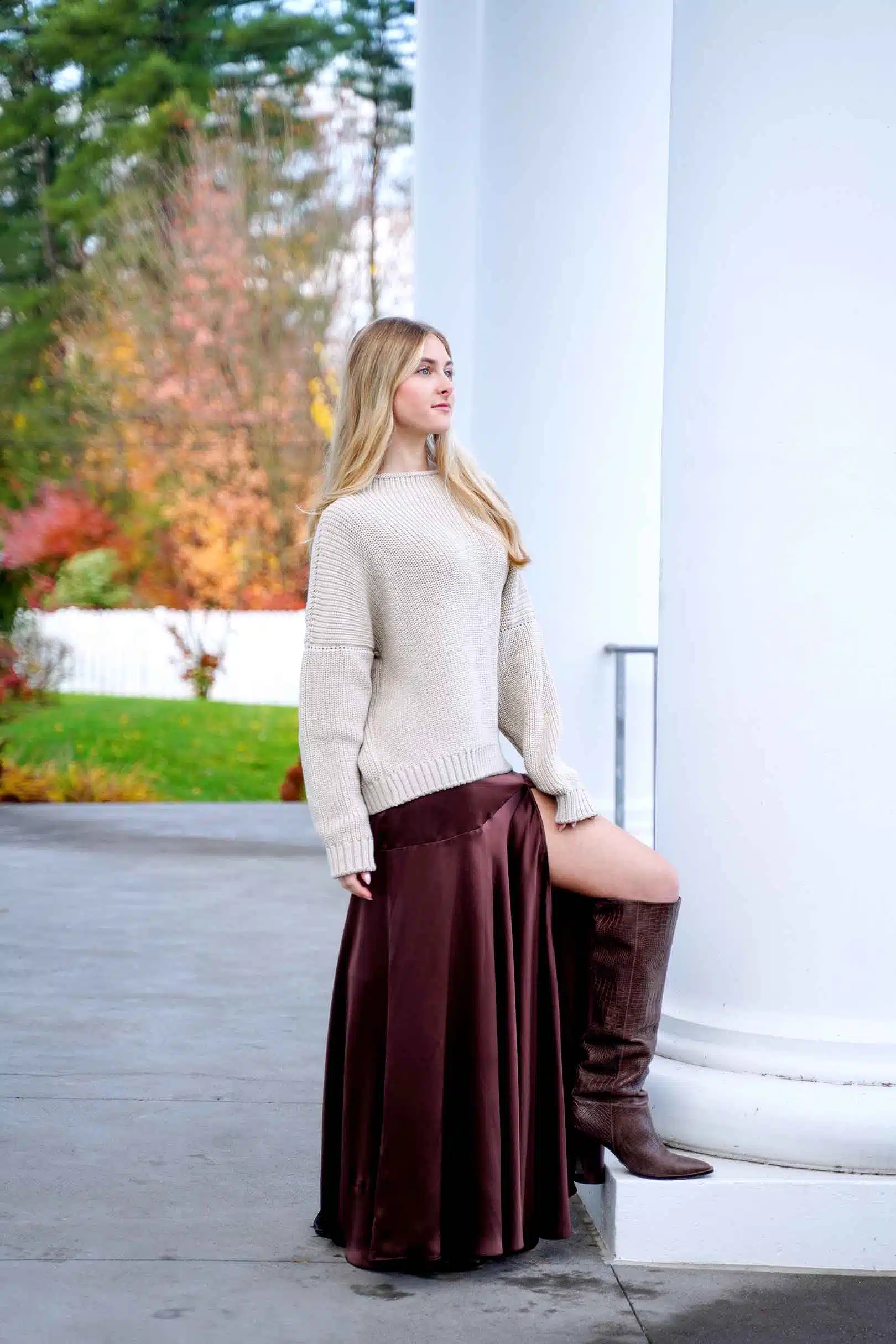 The air is crisp. The mornings find frost on your car windshields. It’s a typical New England fall heading into the Thanksgiving holiday. In this fashion editorial, model Violet Jakupco finds a perfect autumn look from Connecticut brand Ecoforia (http://www.ecoforia.us).