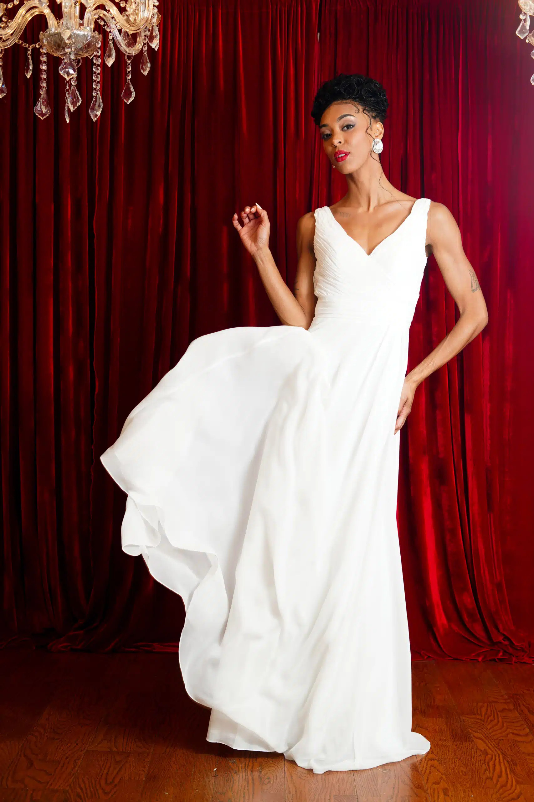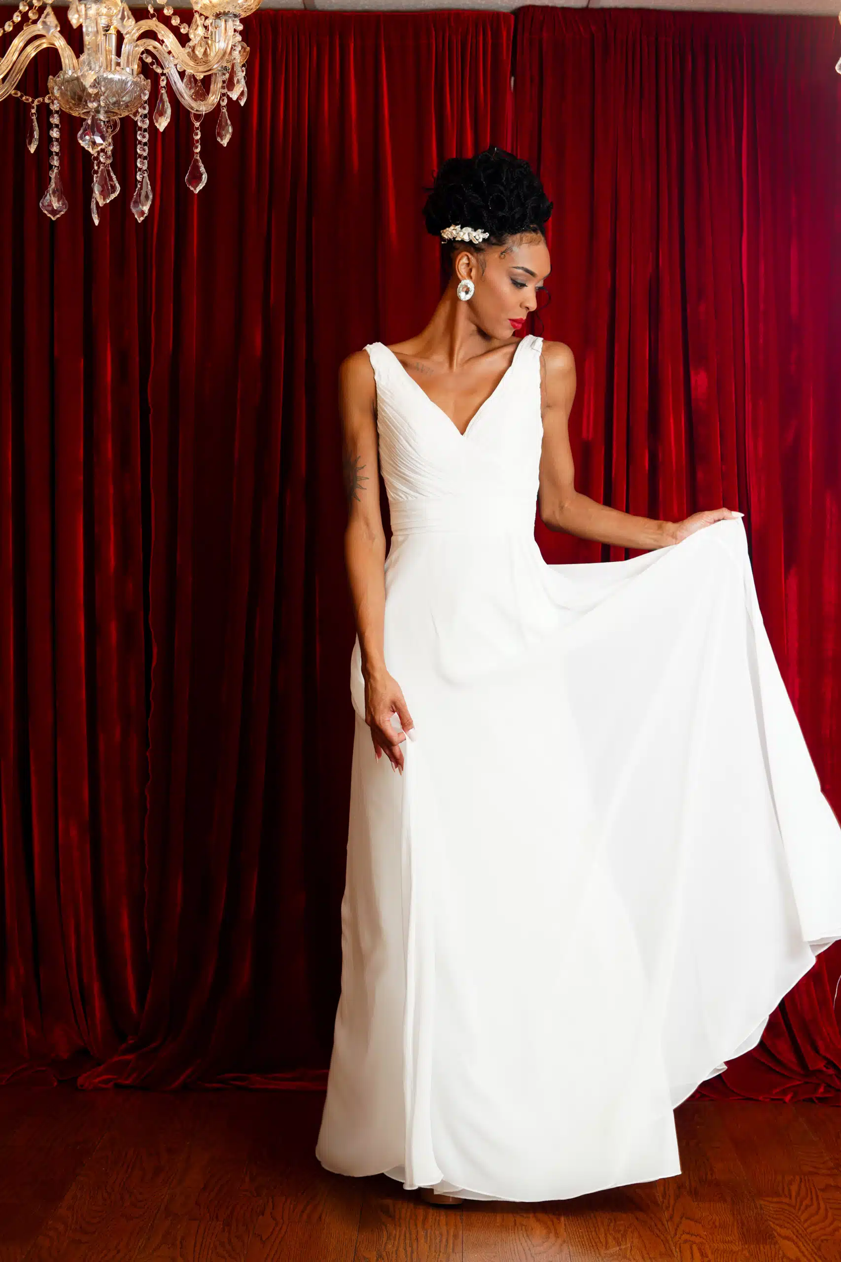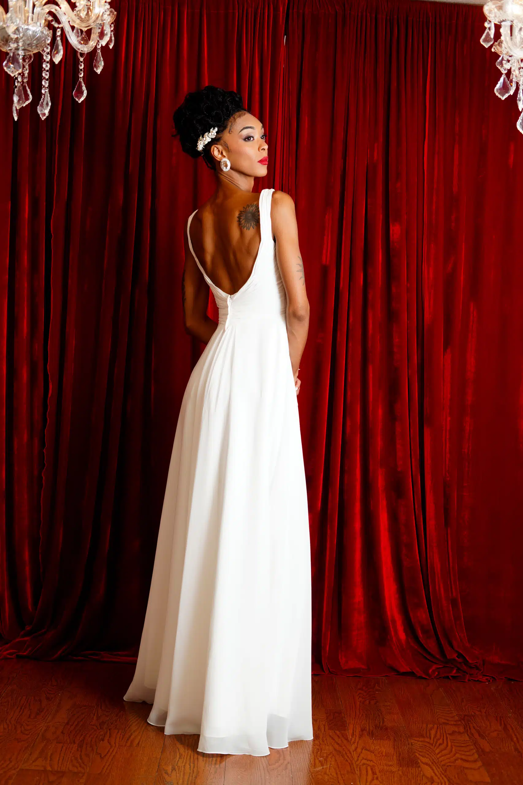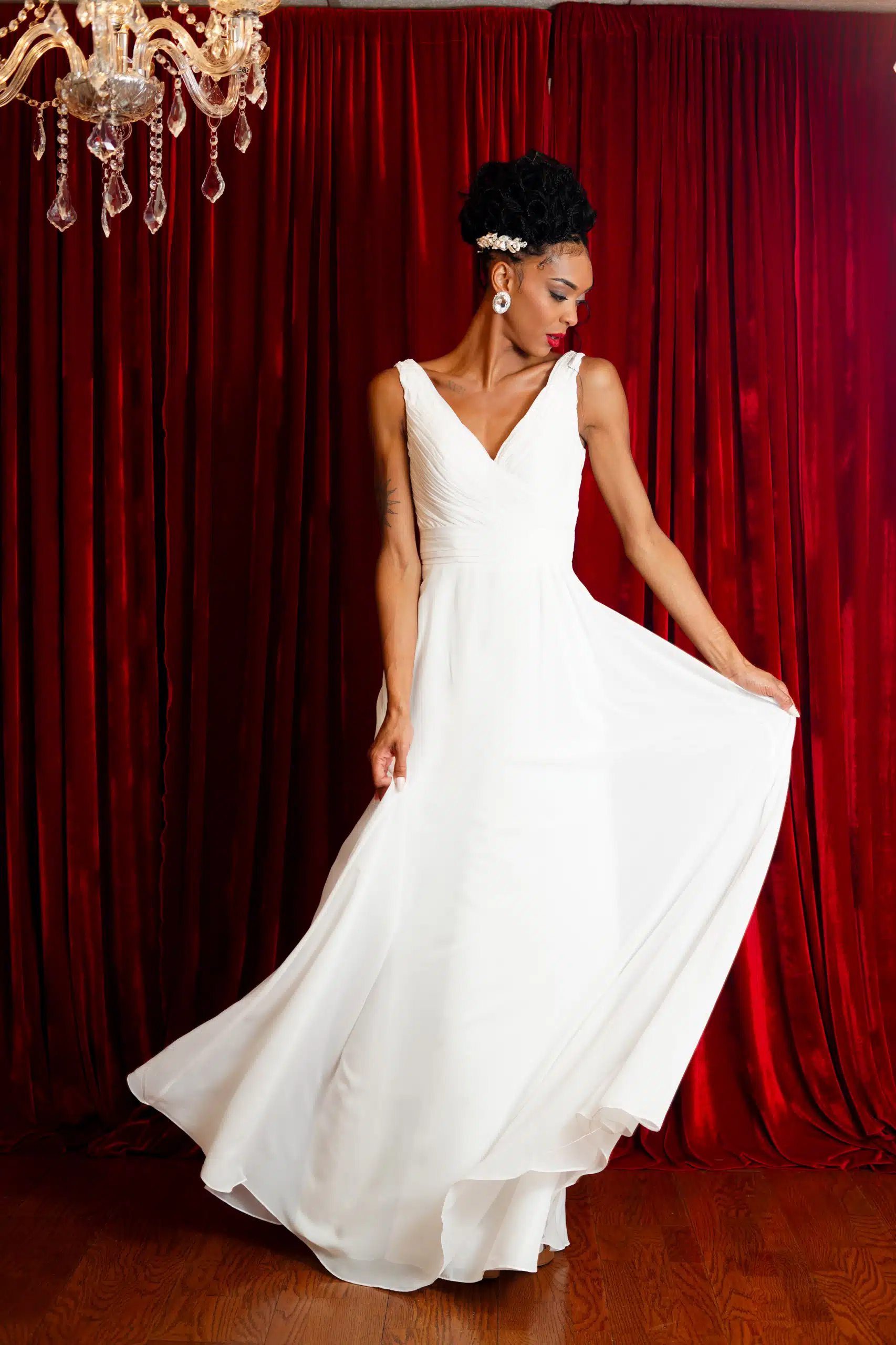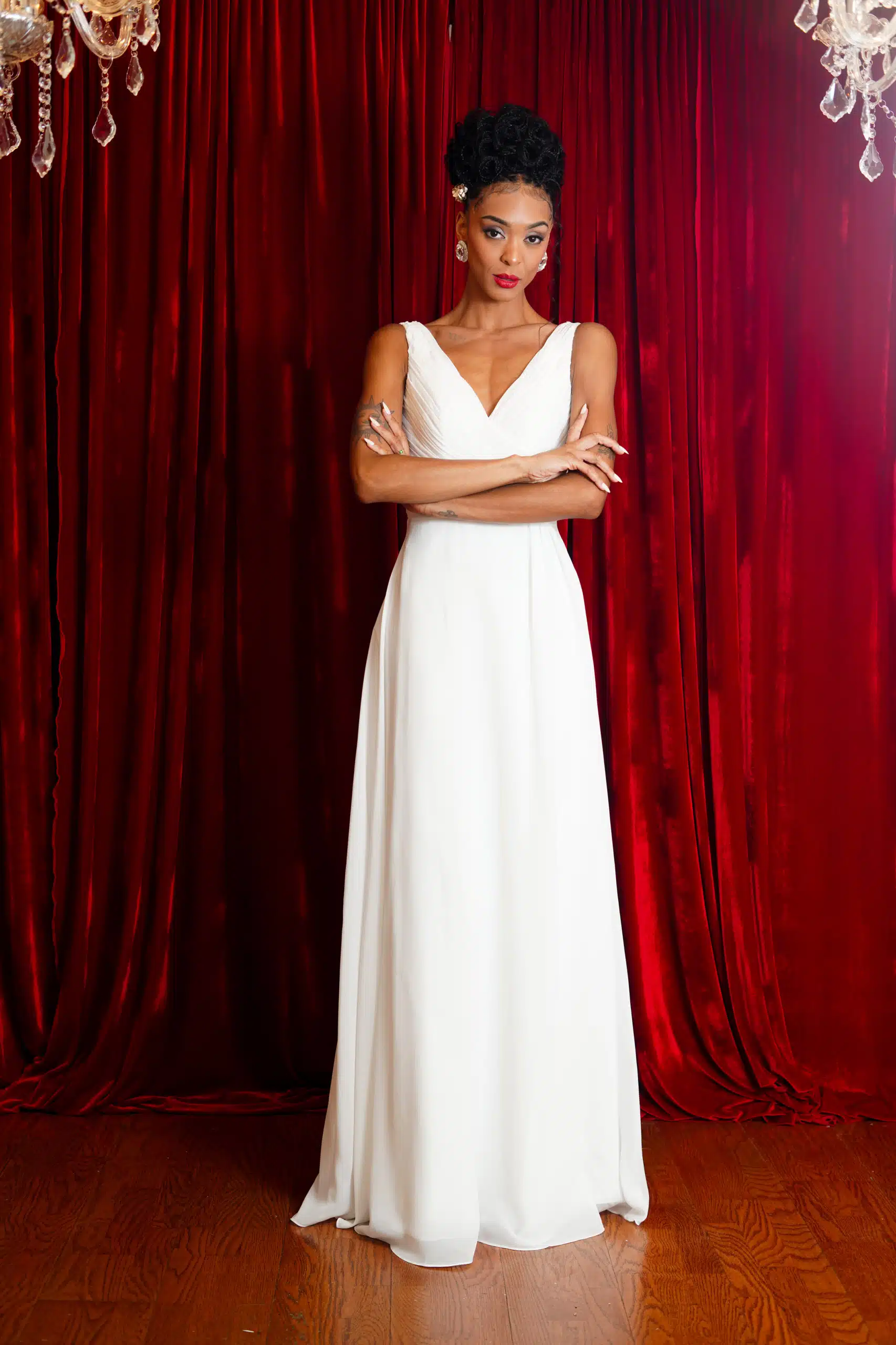 Utah-based model Marisa Mae Cannon was in a bridal mood wearing the latest wedding attire from Alonso Maximo in this fashion editorial shot at the designer’s studio space in Wallingford, Conn.