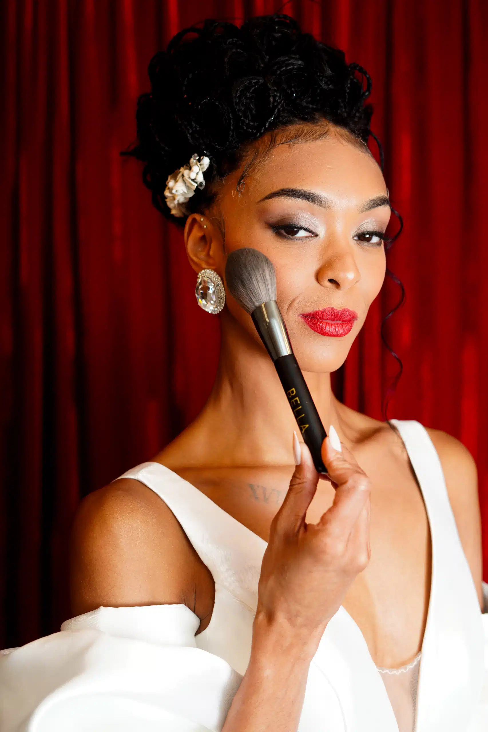Hair and makeup by designer Alonso Maximo Abel, who used Bella Mademoiselle Cosmetics.