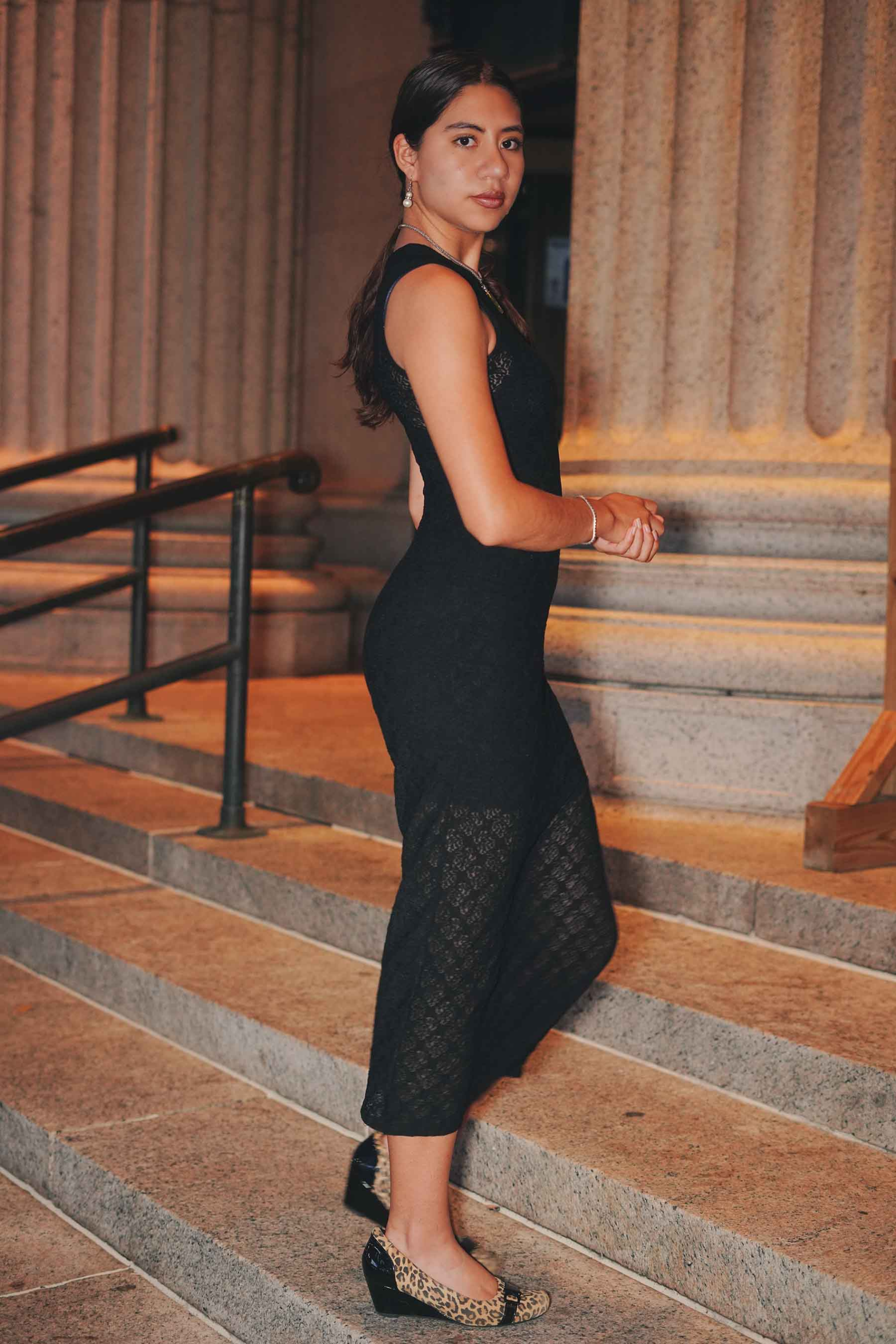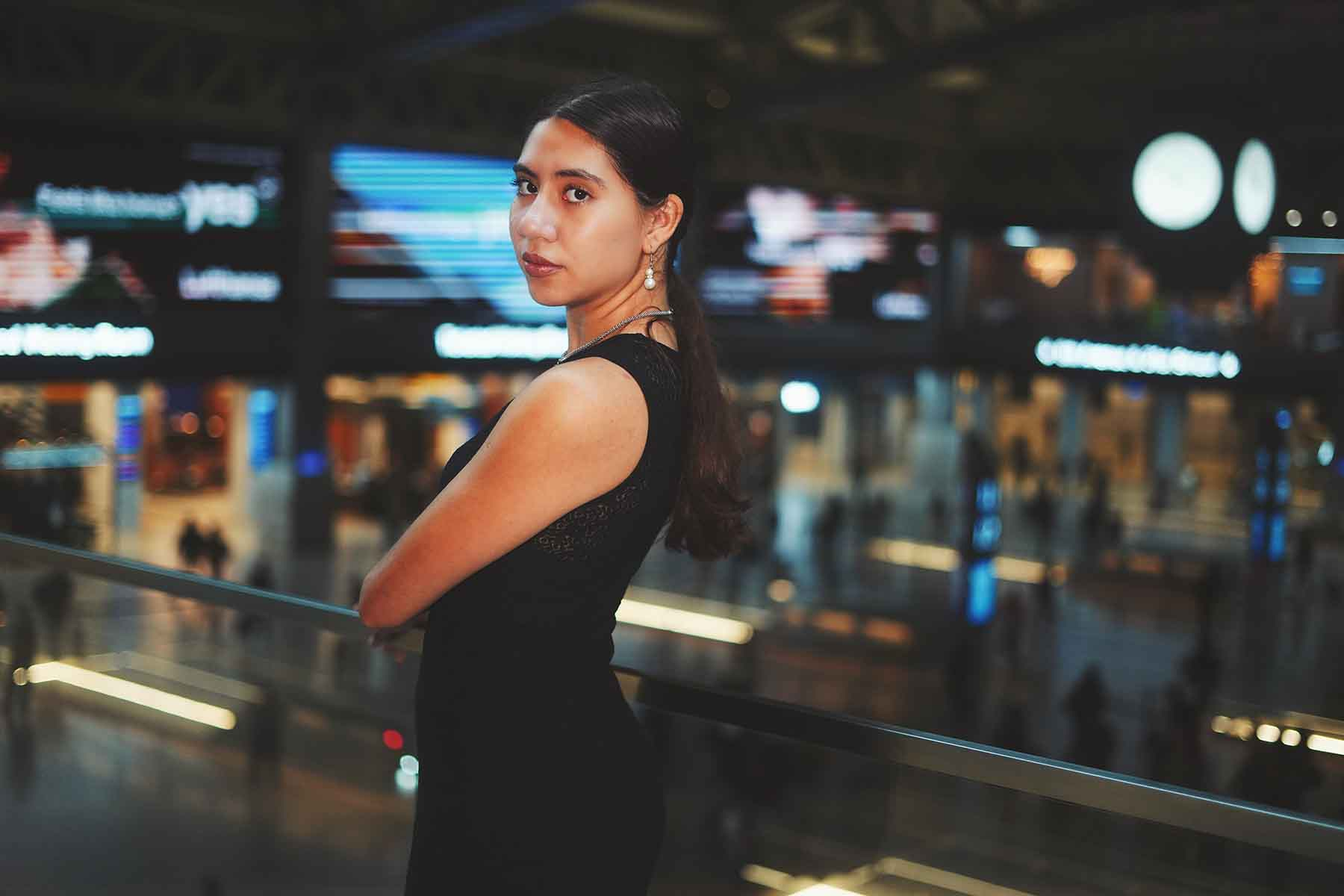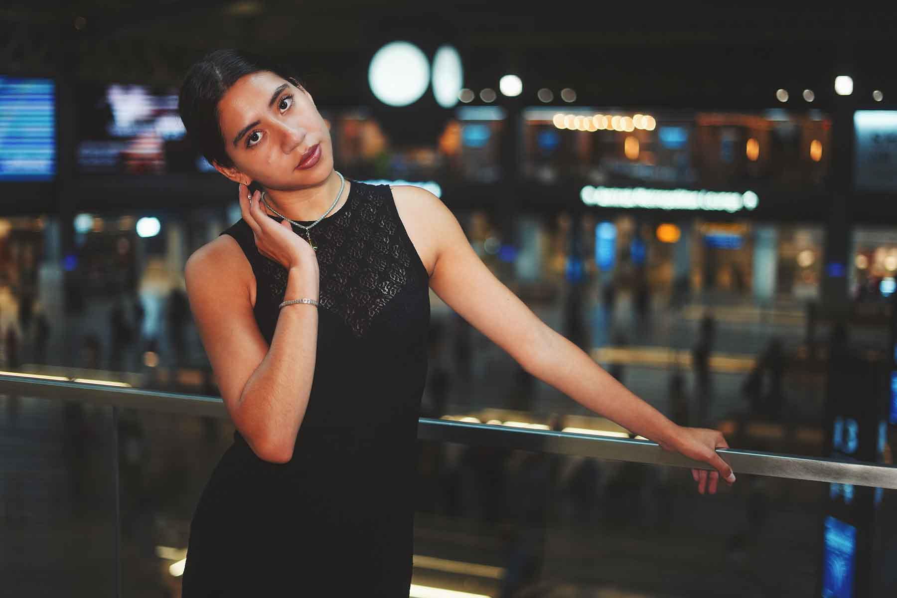 In this fashion editorial, model Camila Tabora learns New York City’s Moynihan Train Hall means more than a quick exit out of town or a leisurely entrance, it provides the perfect backdrop for your favorite LBD (little black dress).