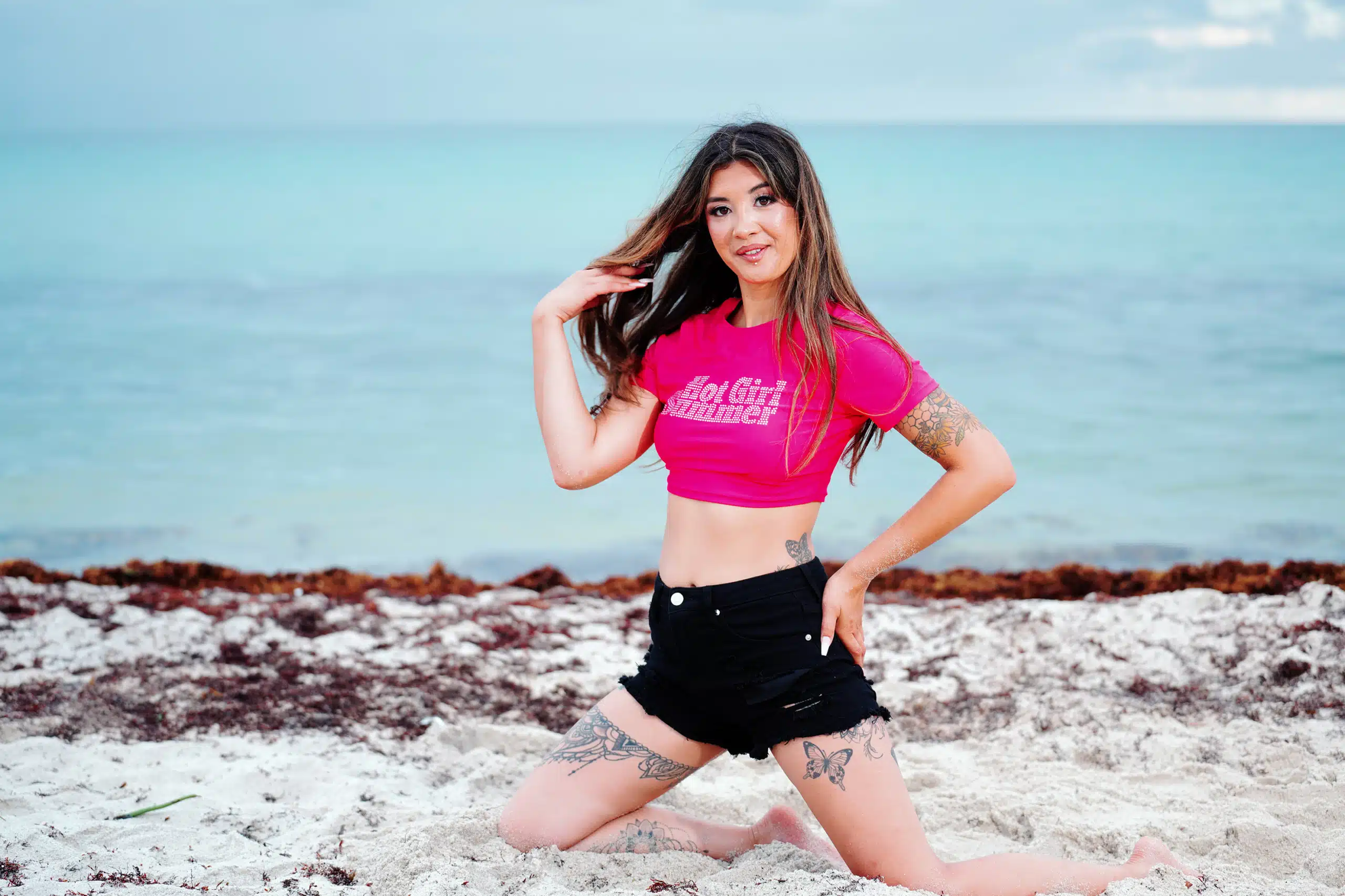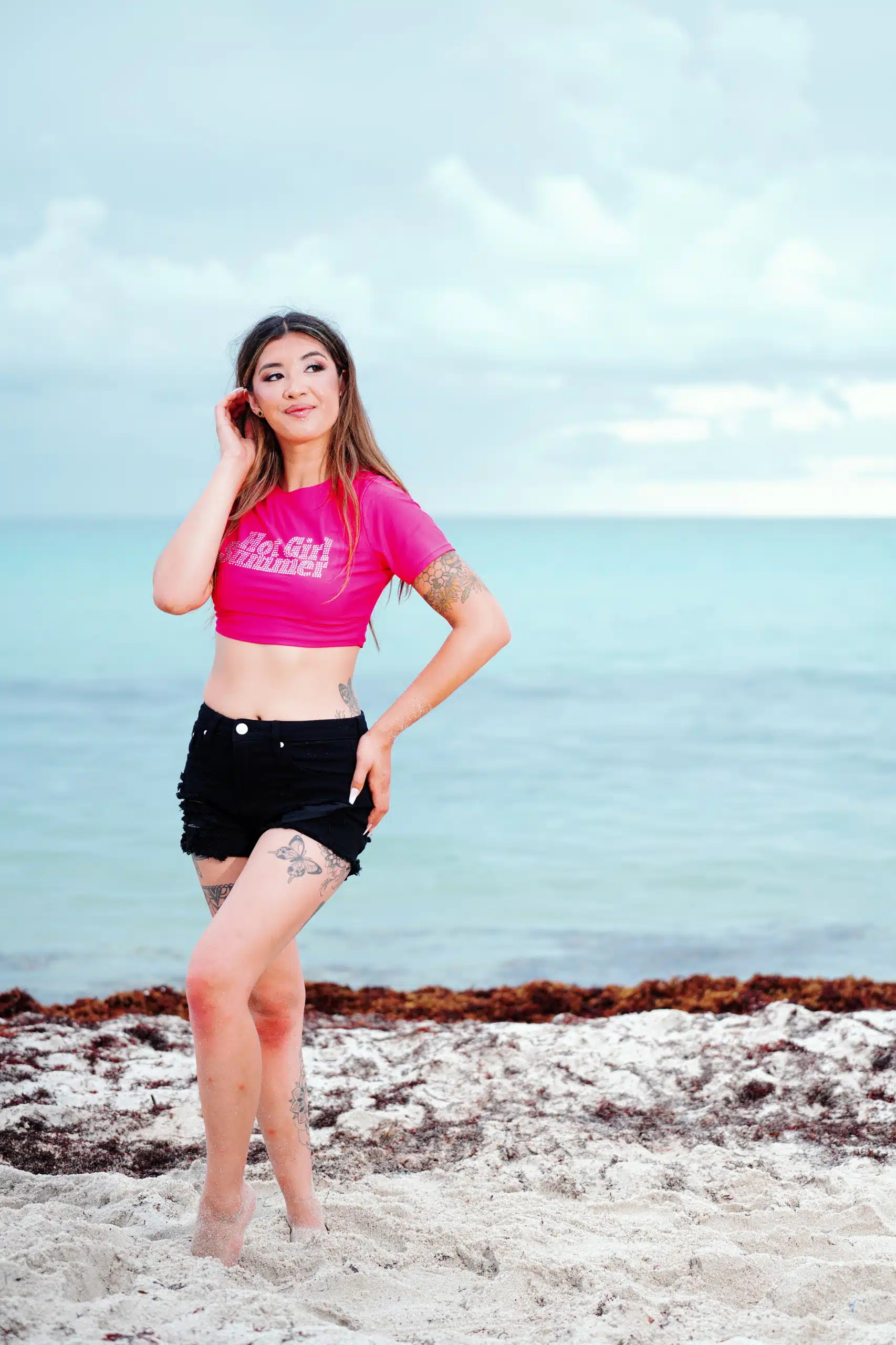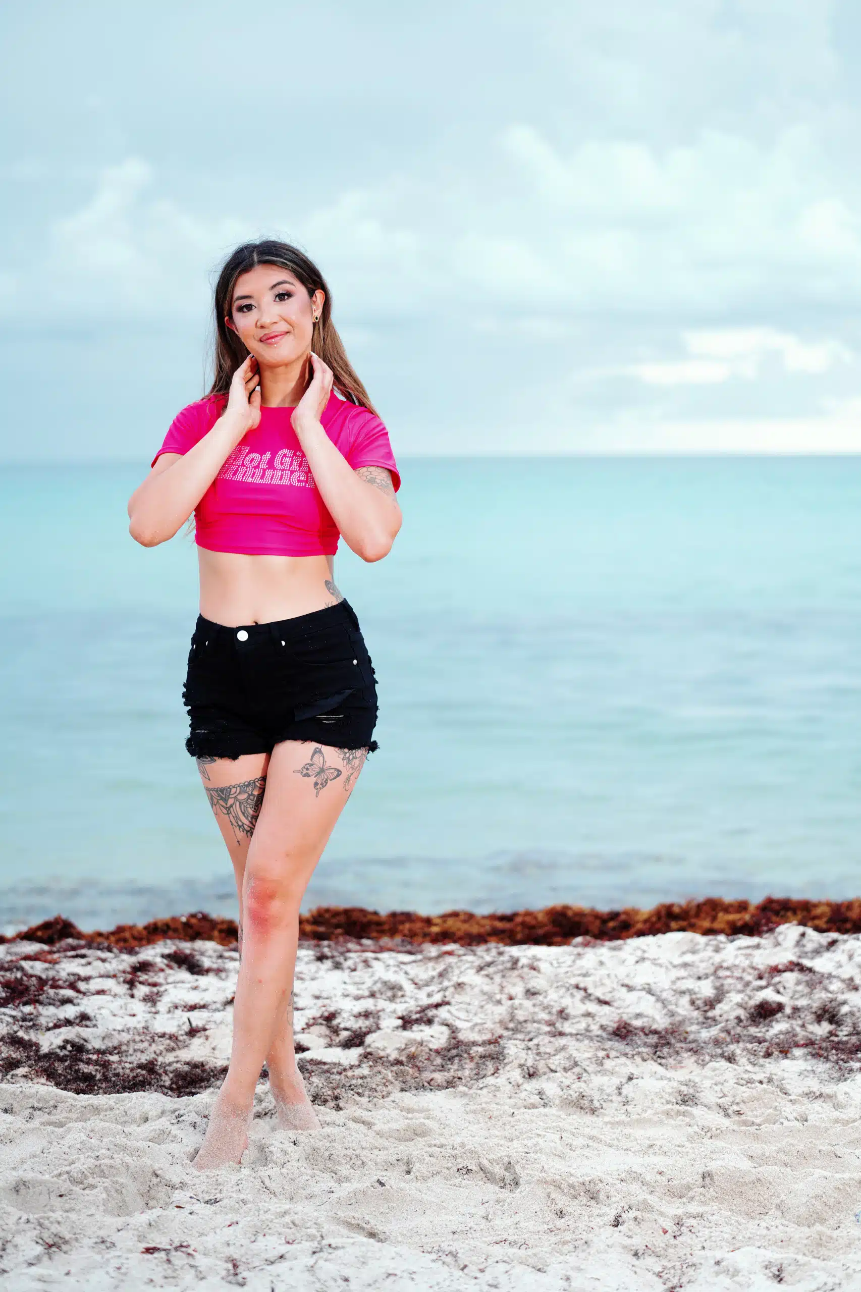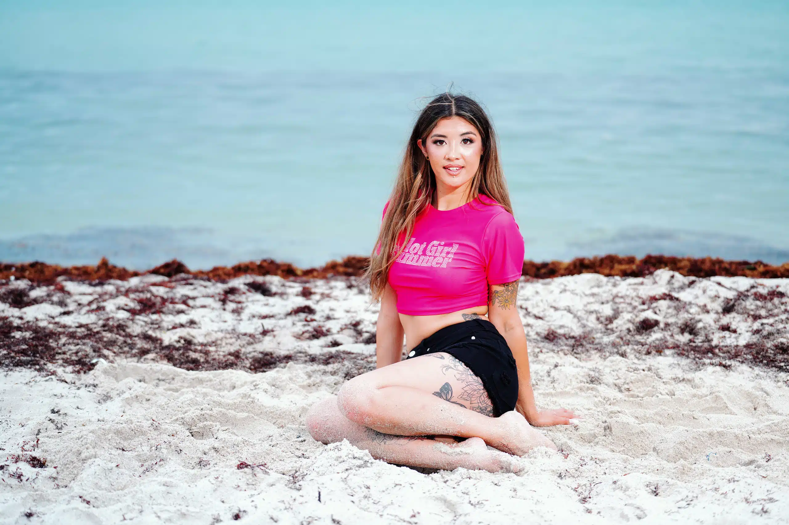 Miss Bikini Montana Model Mollie Wilson gets casual at the shore with a t-shirt and cut-offs during a fashion editorial taken at the Sagamore South Beach Hotel during this yearโs Miss Bikini US competition.