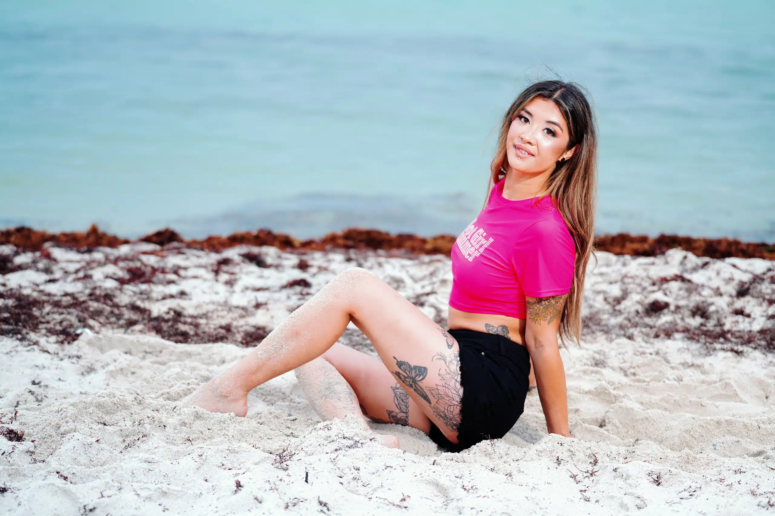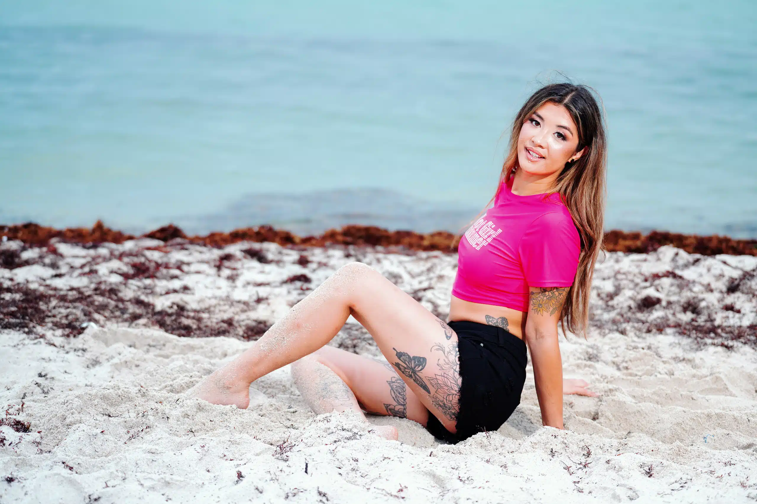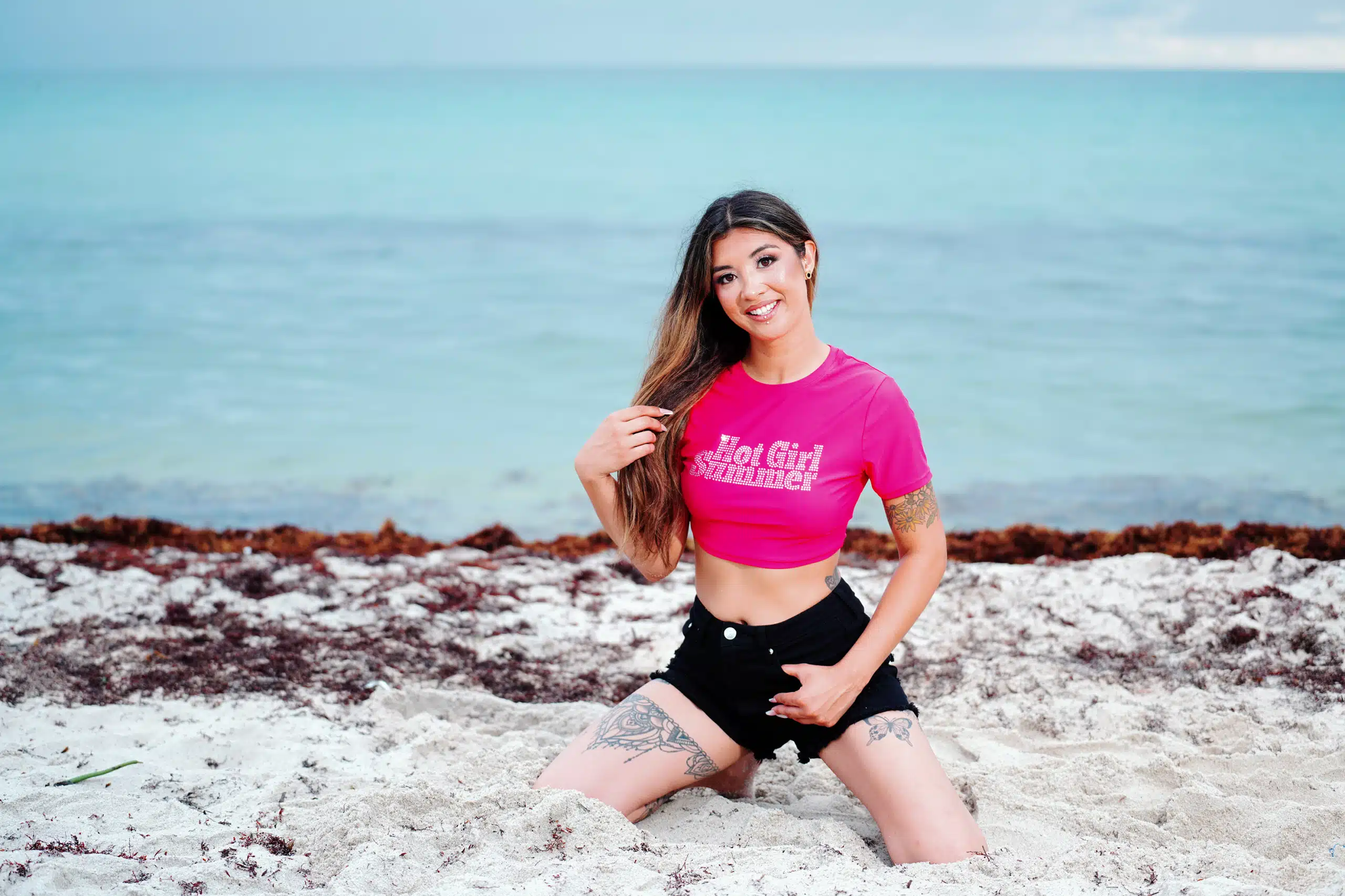 Miss Bikini Montana Model Mollie Wilson gets casual at the shore with a t-shirt and cut-offs during a fashion editorial taken at the Sagamore South Beach Hotel during this yearโs Miss Bikini US competition.