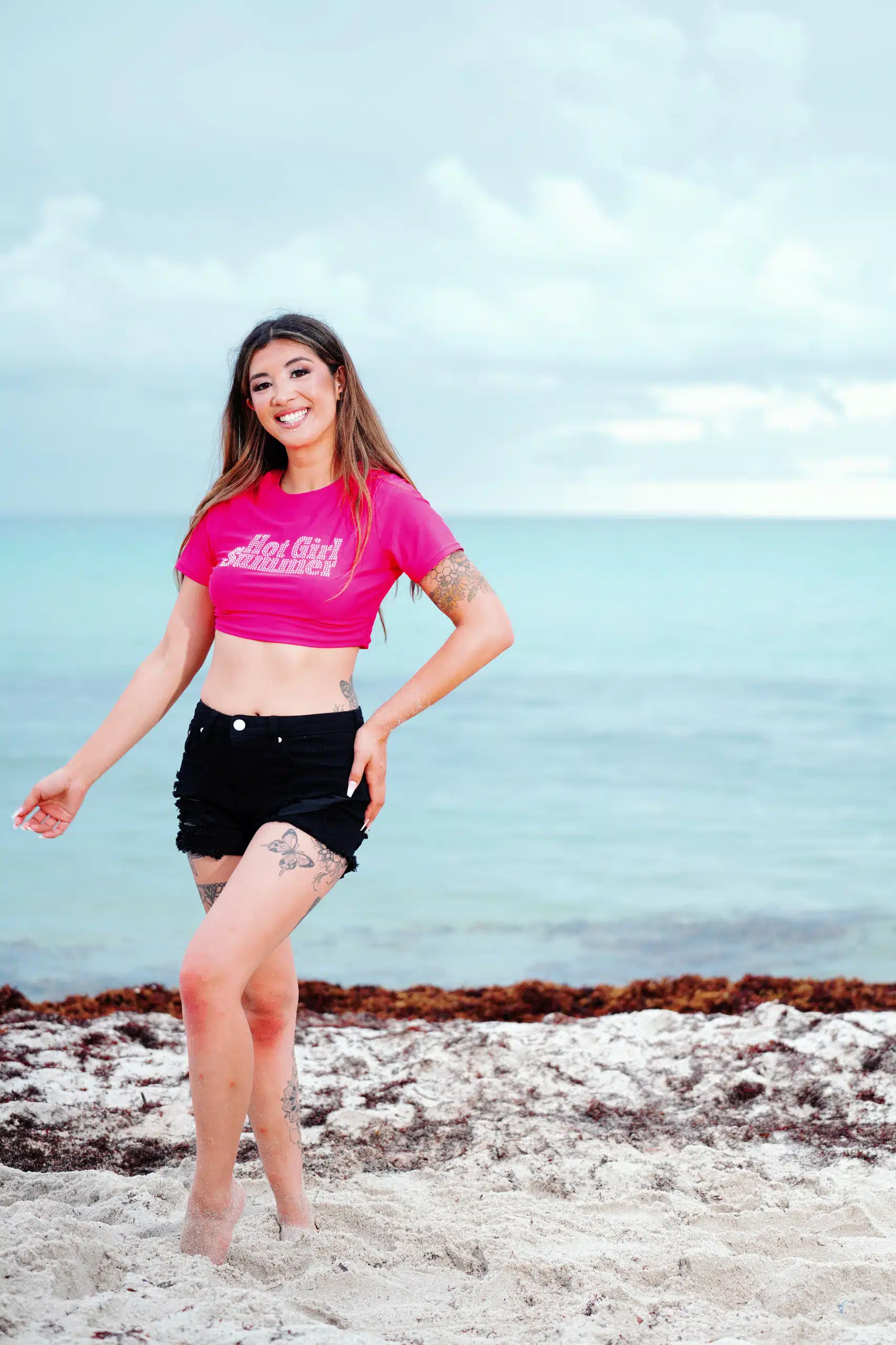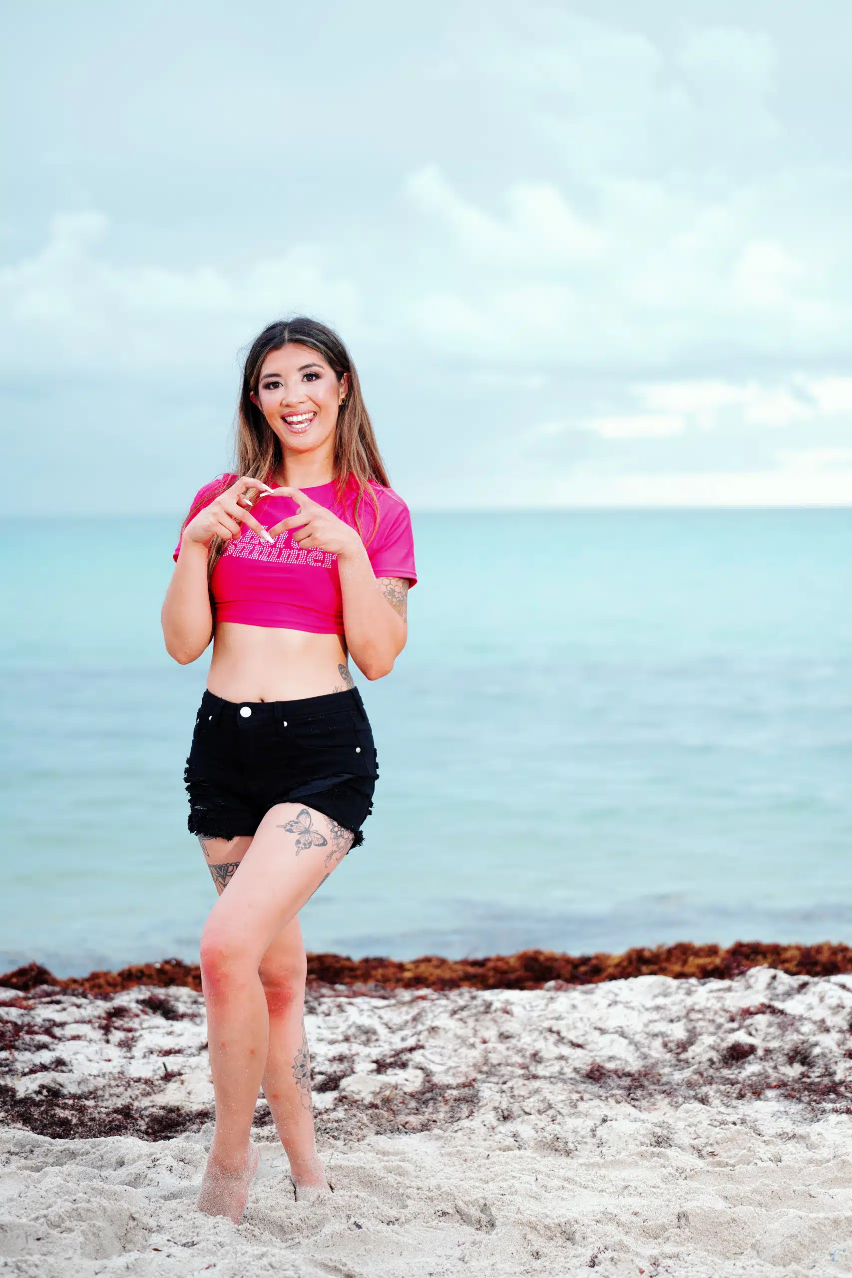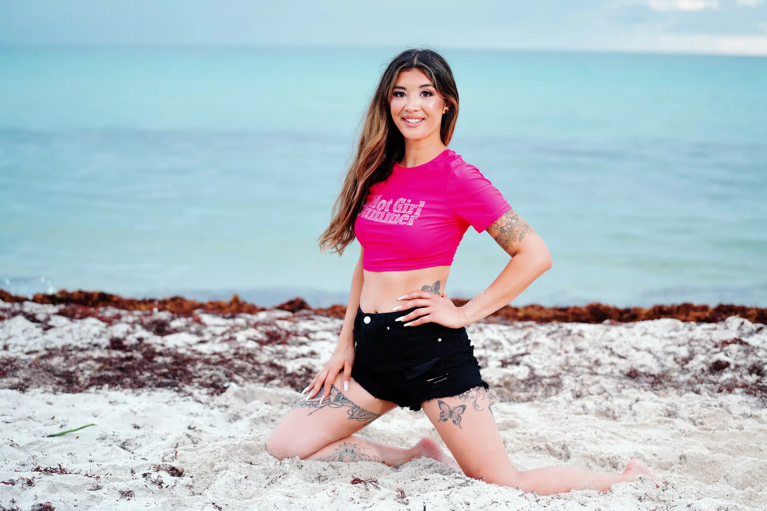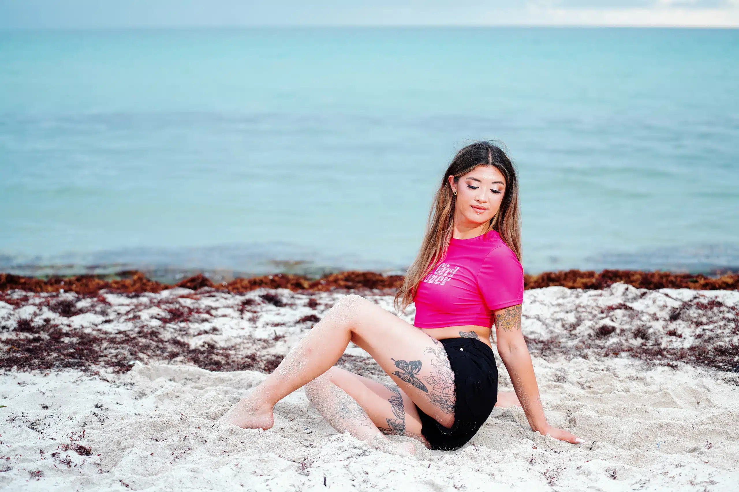 Miss Bikini Montana Model Mollie Wilson gets casual at the shore with a t-shirt and cut-offs during a fashion editorial taken at the Sagamore South Beach Hotel during this yearโs Miss Bikini US competition.
