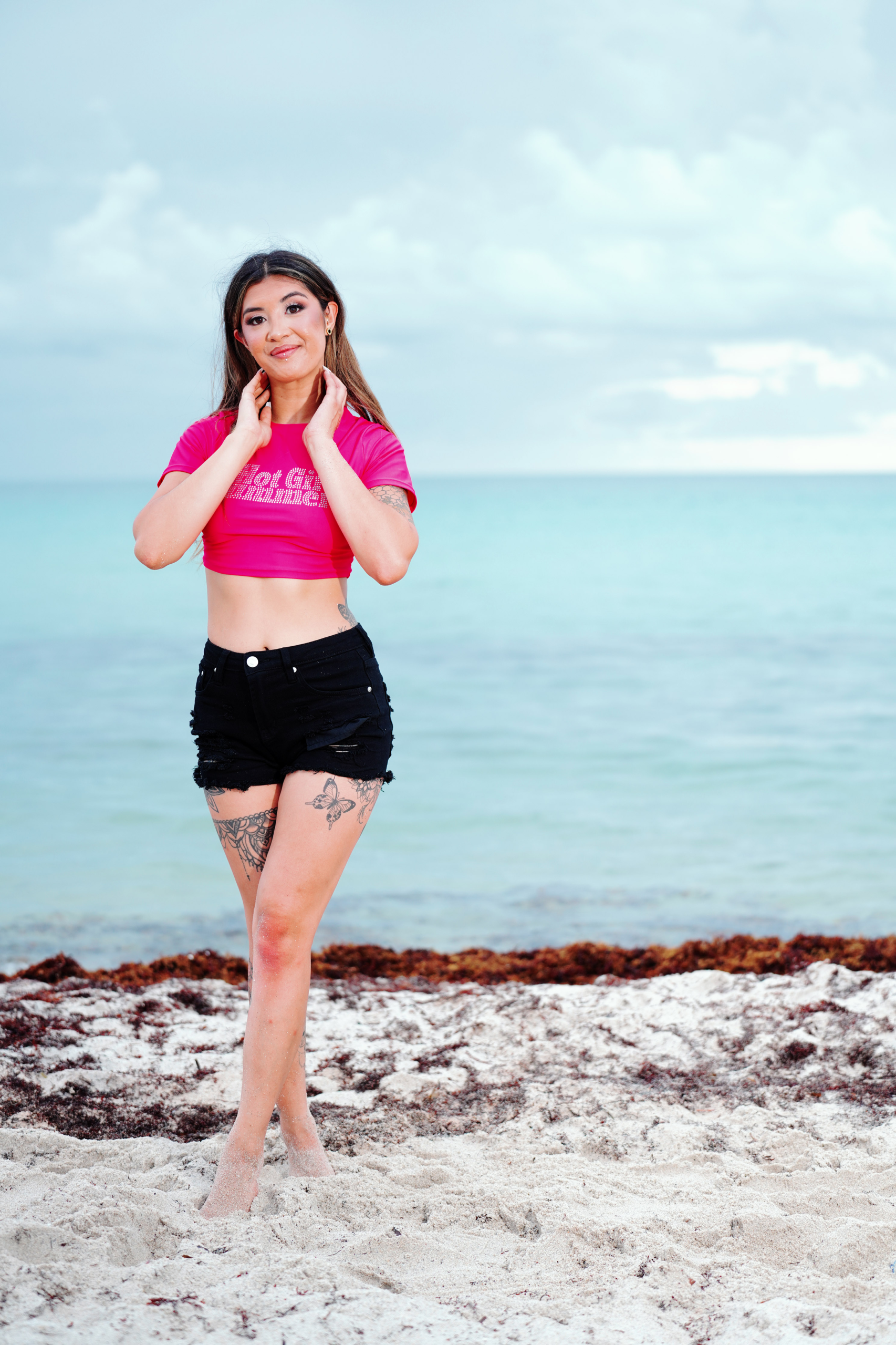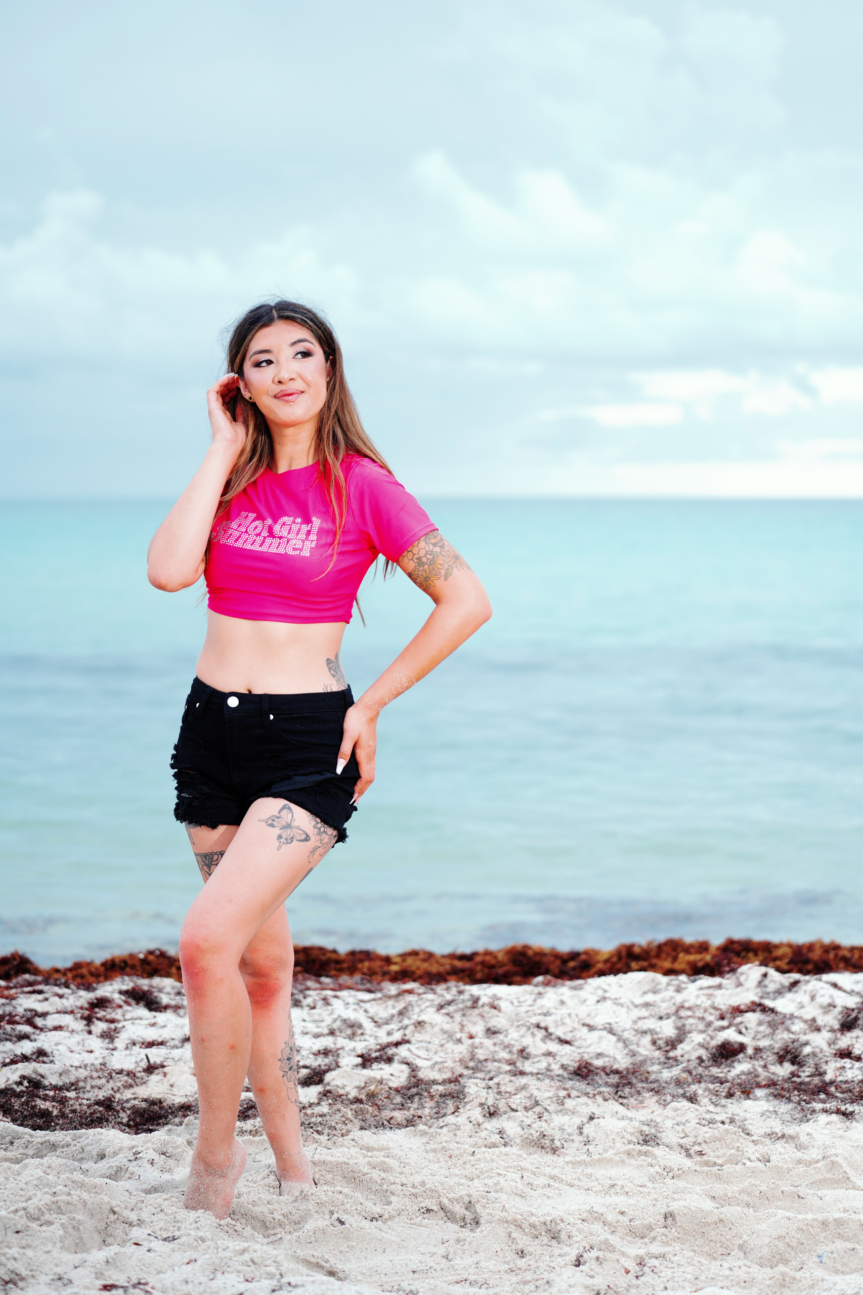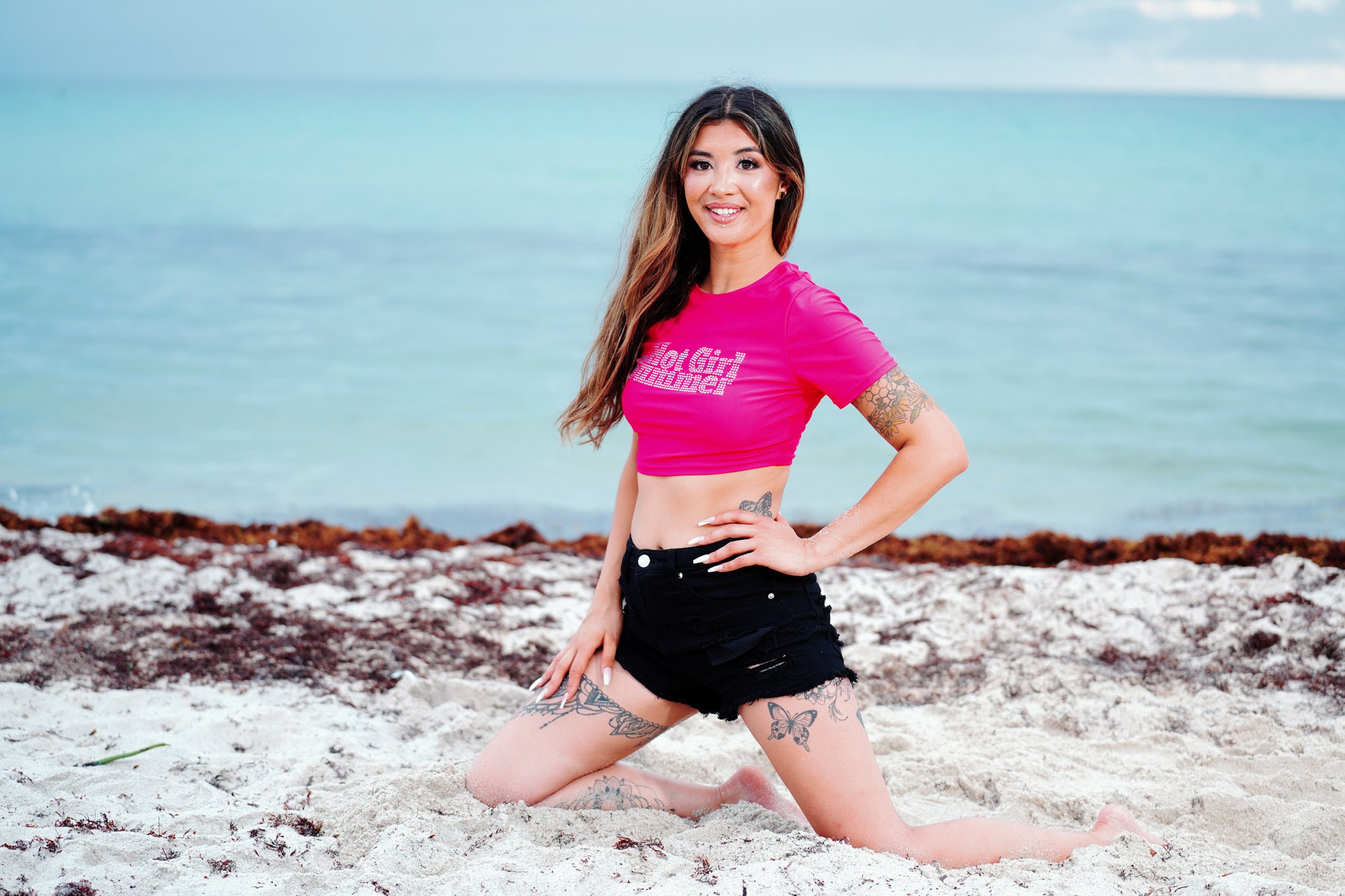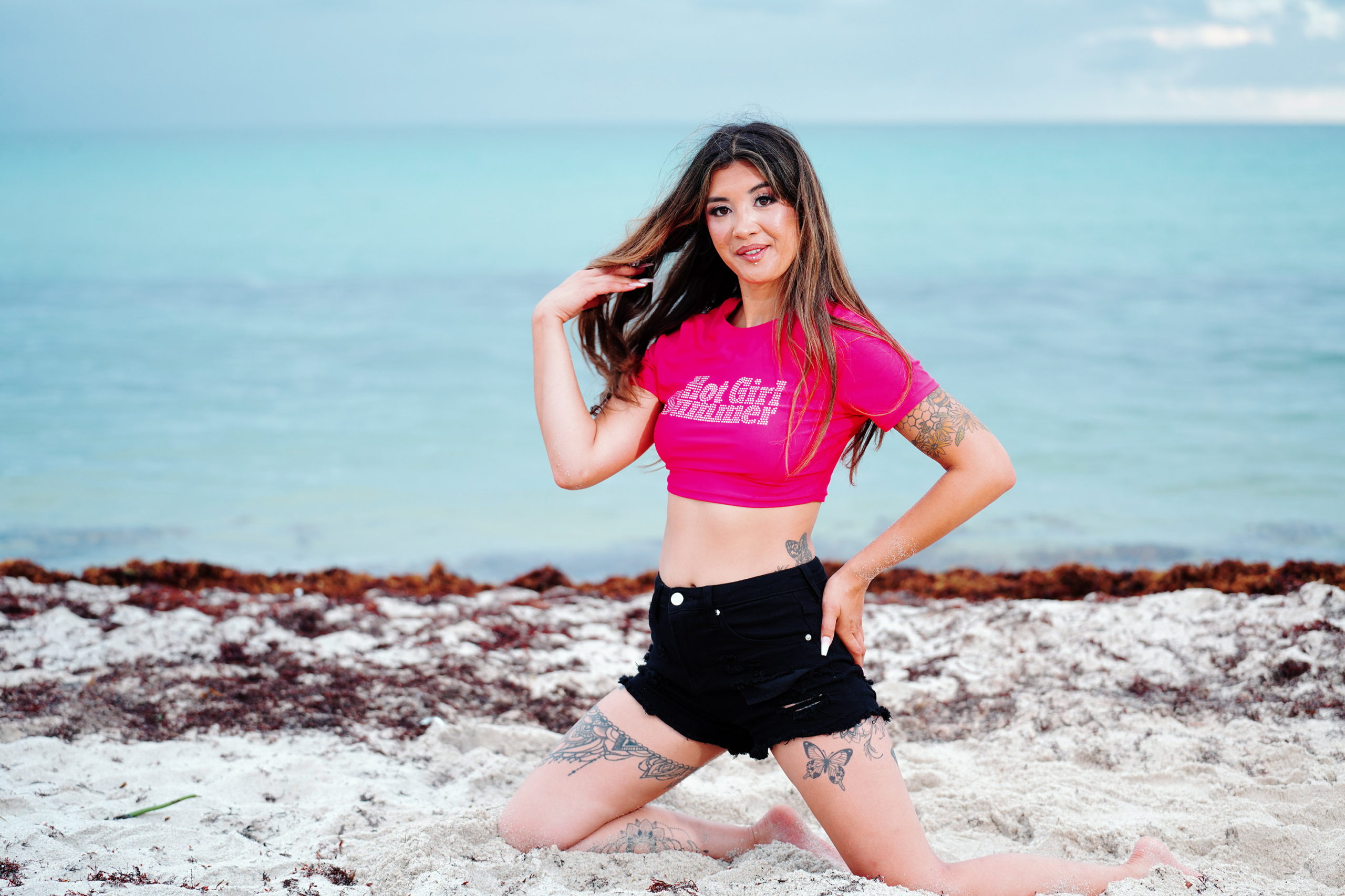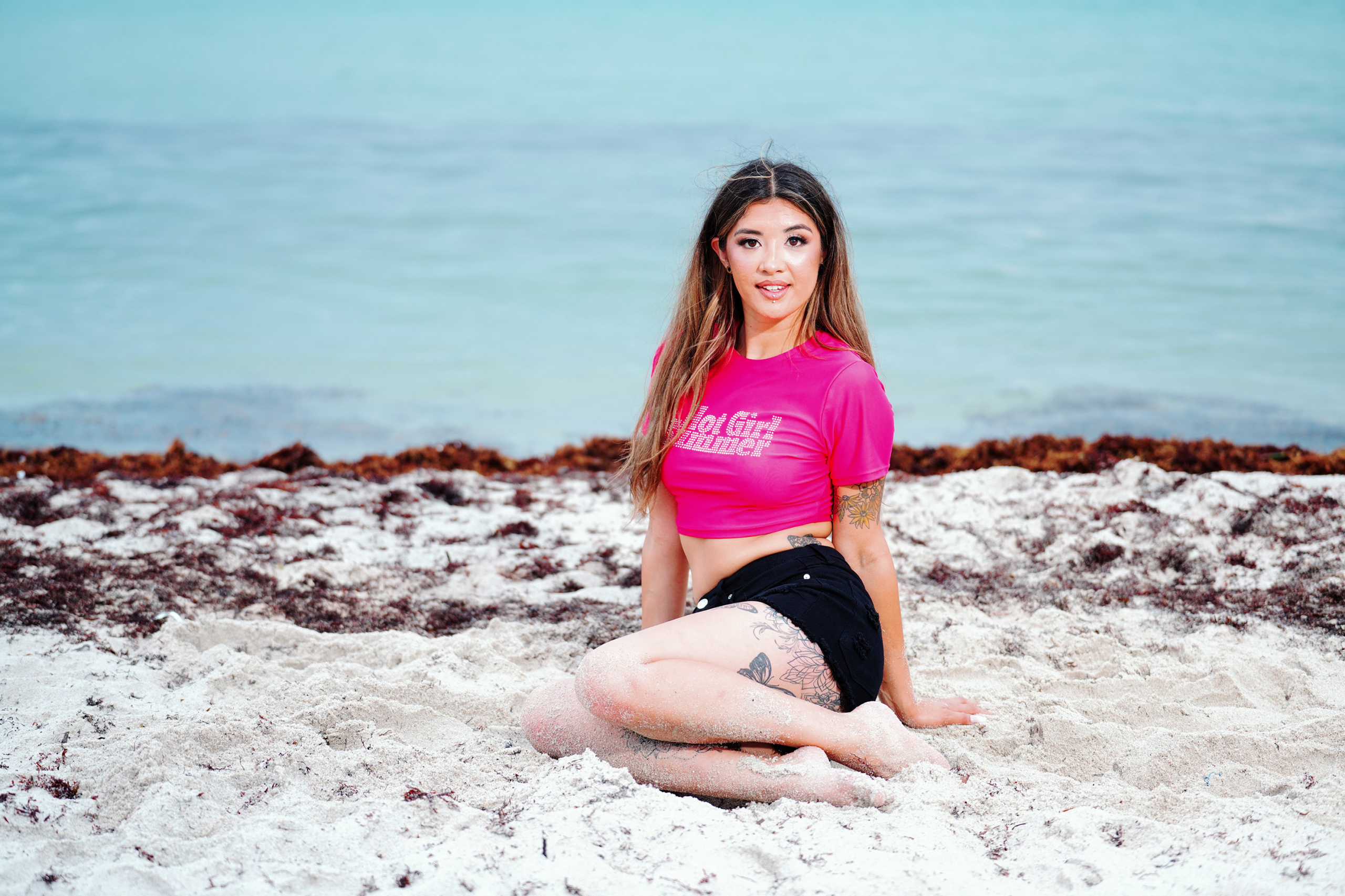 Miss Bikini Montana Model Mollie Wilson gets casual at the shore with a t-shirt and cut-offs during a fashion editorial taken at the Sagamore South Beach Hotel during this year’s Miss Bikini US competition.