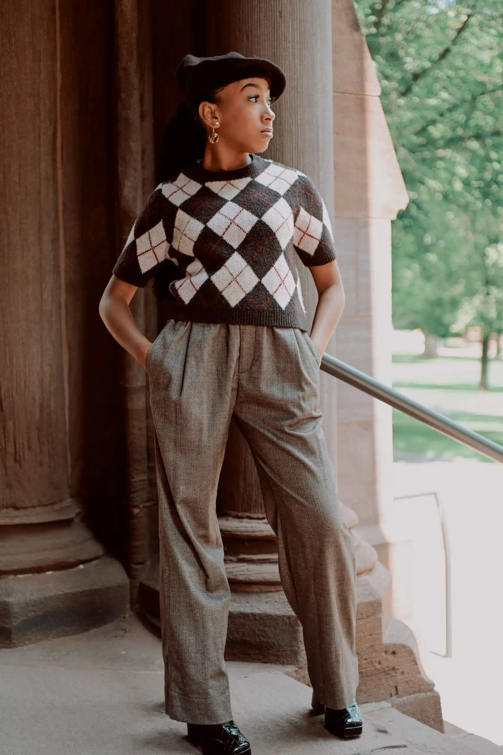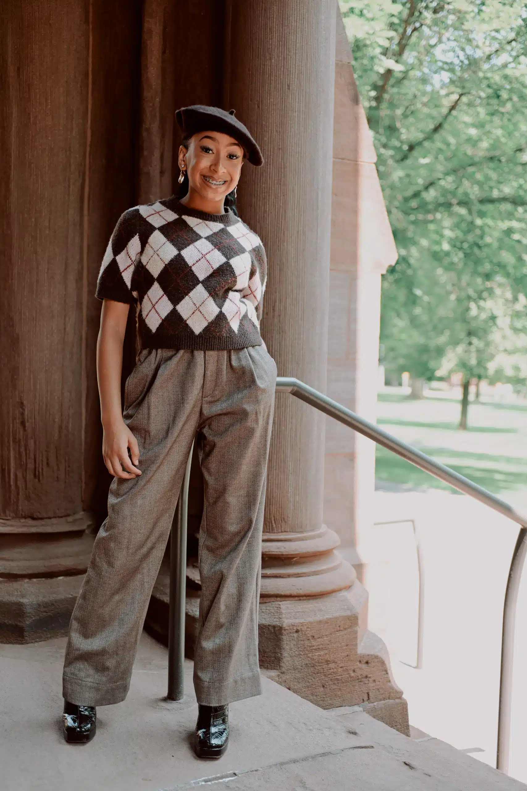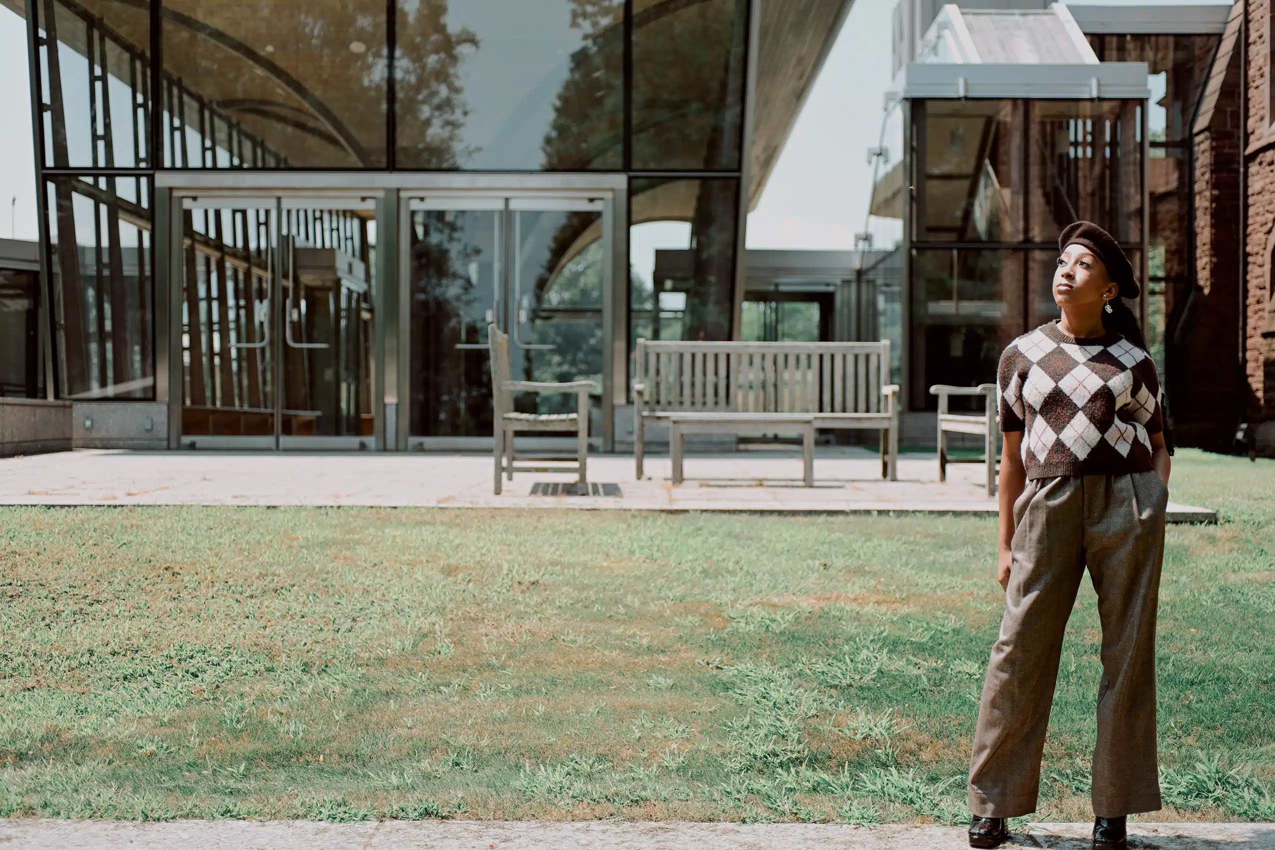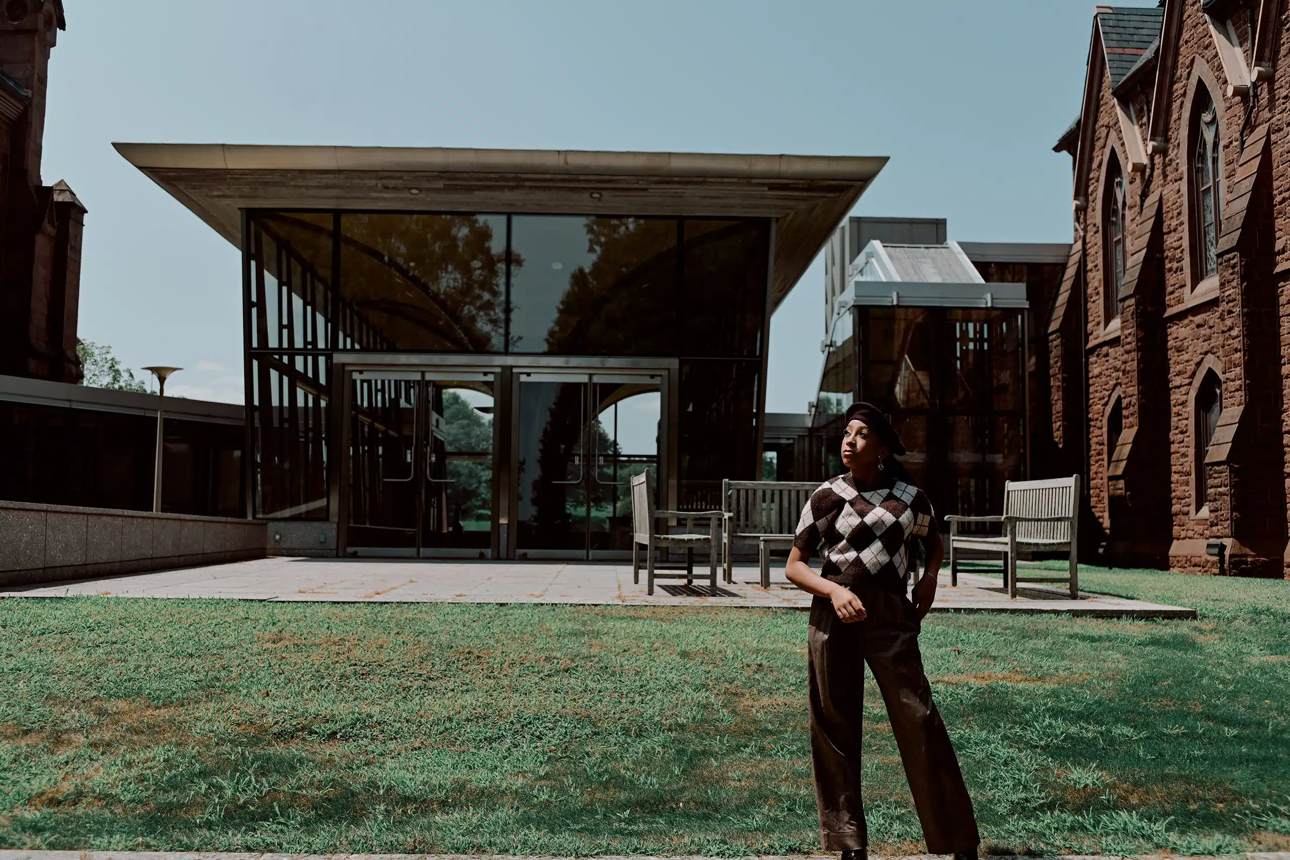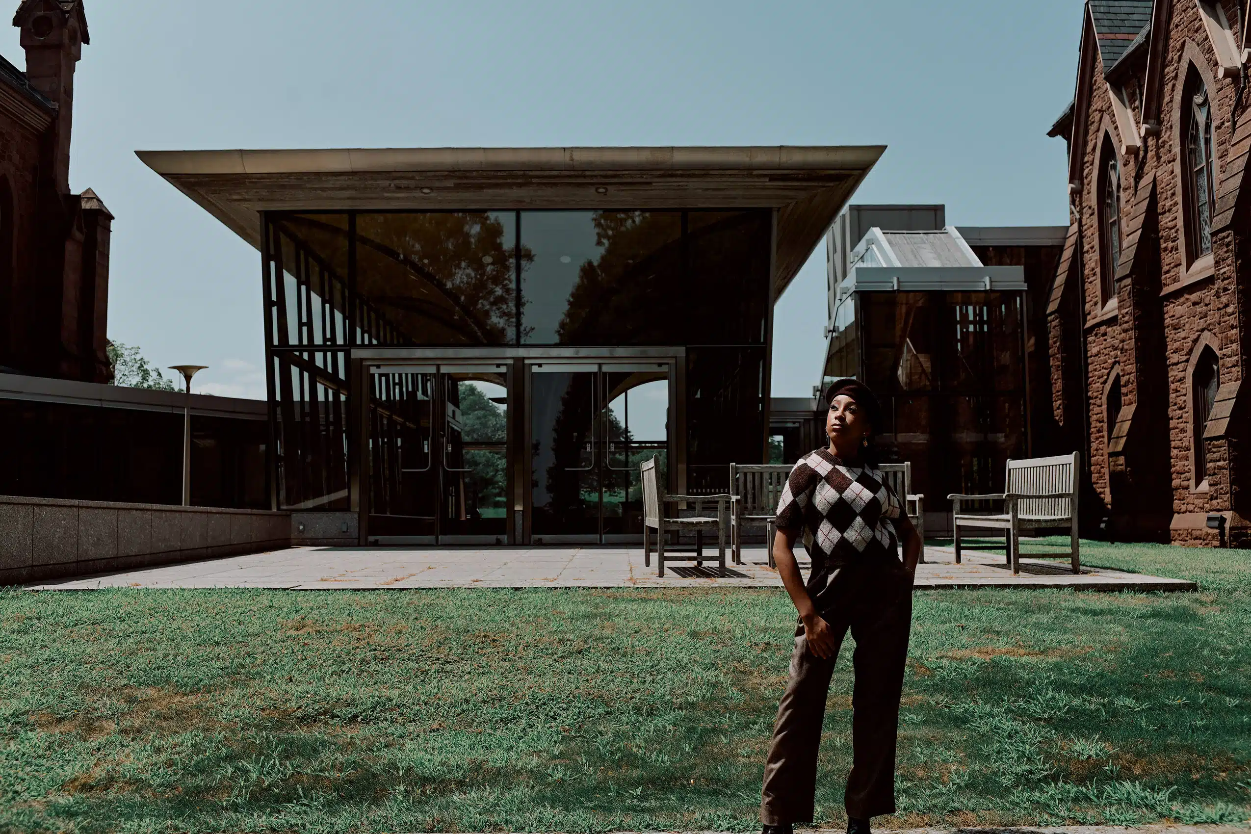 The campus of Middletown’s Wesleyan University offers an interesting of classic architecture and modern architecture. In this fashion editorial, model Harper Johnson evokes a classic style aesthetic that still has a 2025 flare.