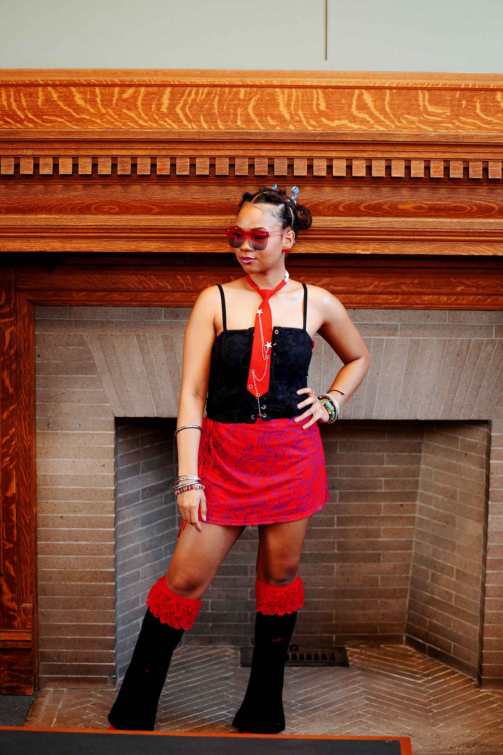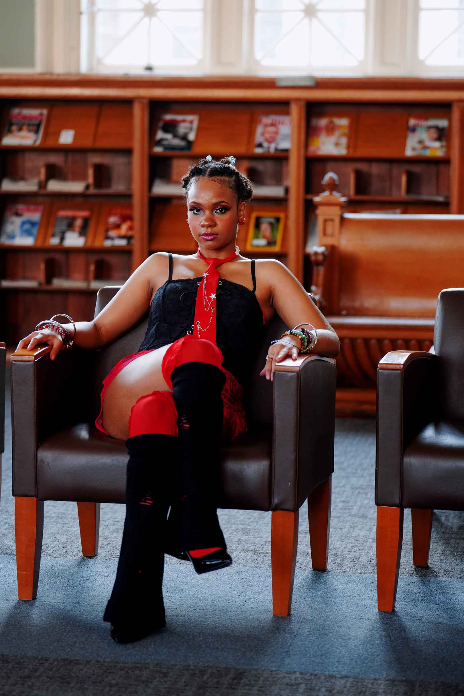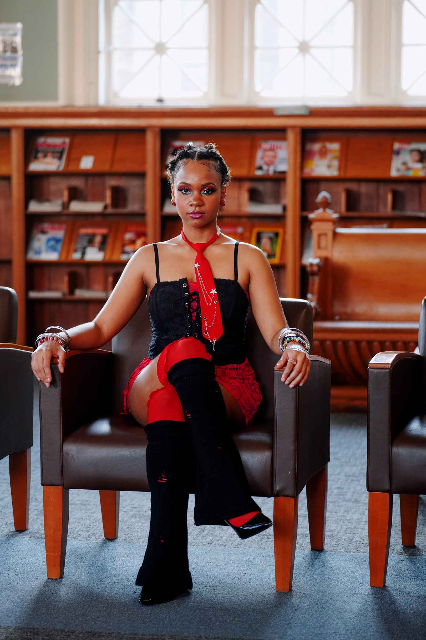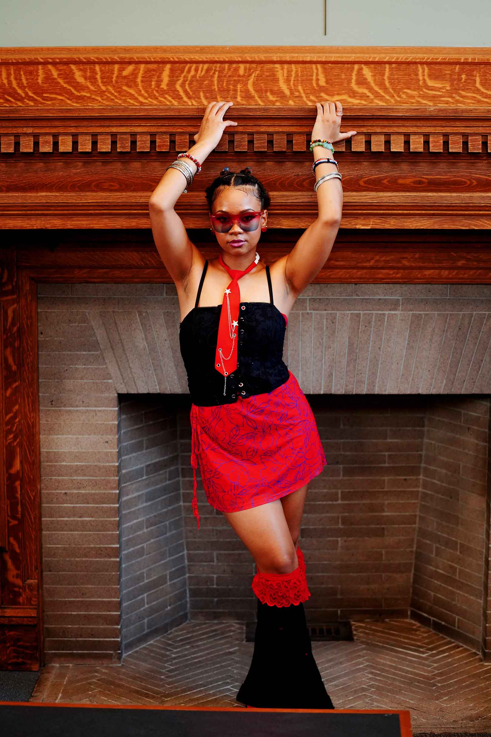 In this fashion editorial, model Jusma takes advantage of the moments after a fashion show by Gorgy By Candy to take some editorial shots in the designer’s garments inside the historic New Britain Public Library.