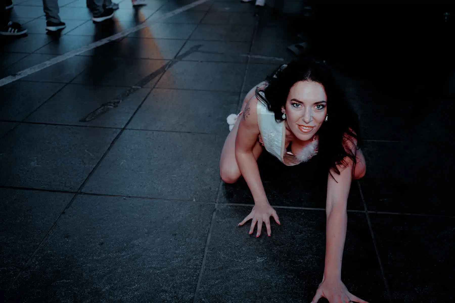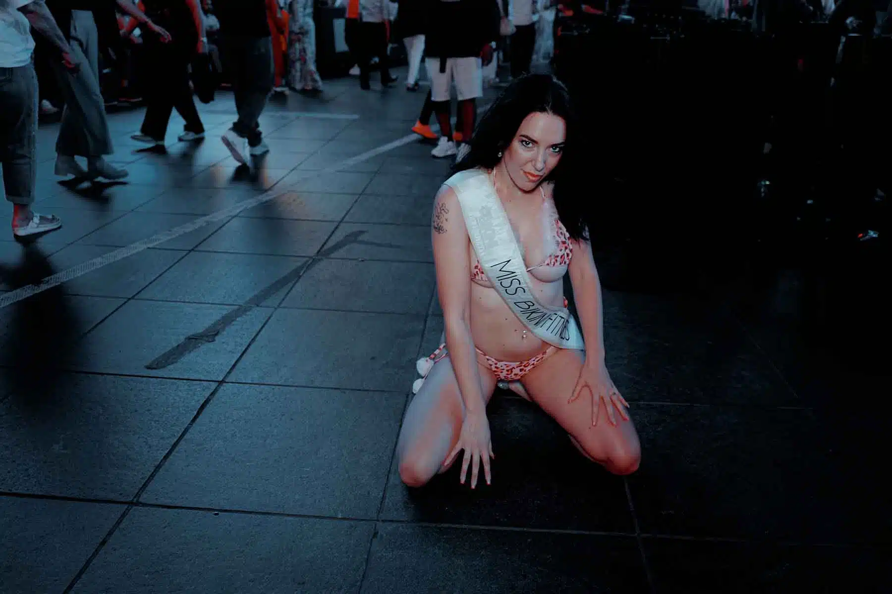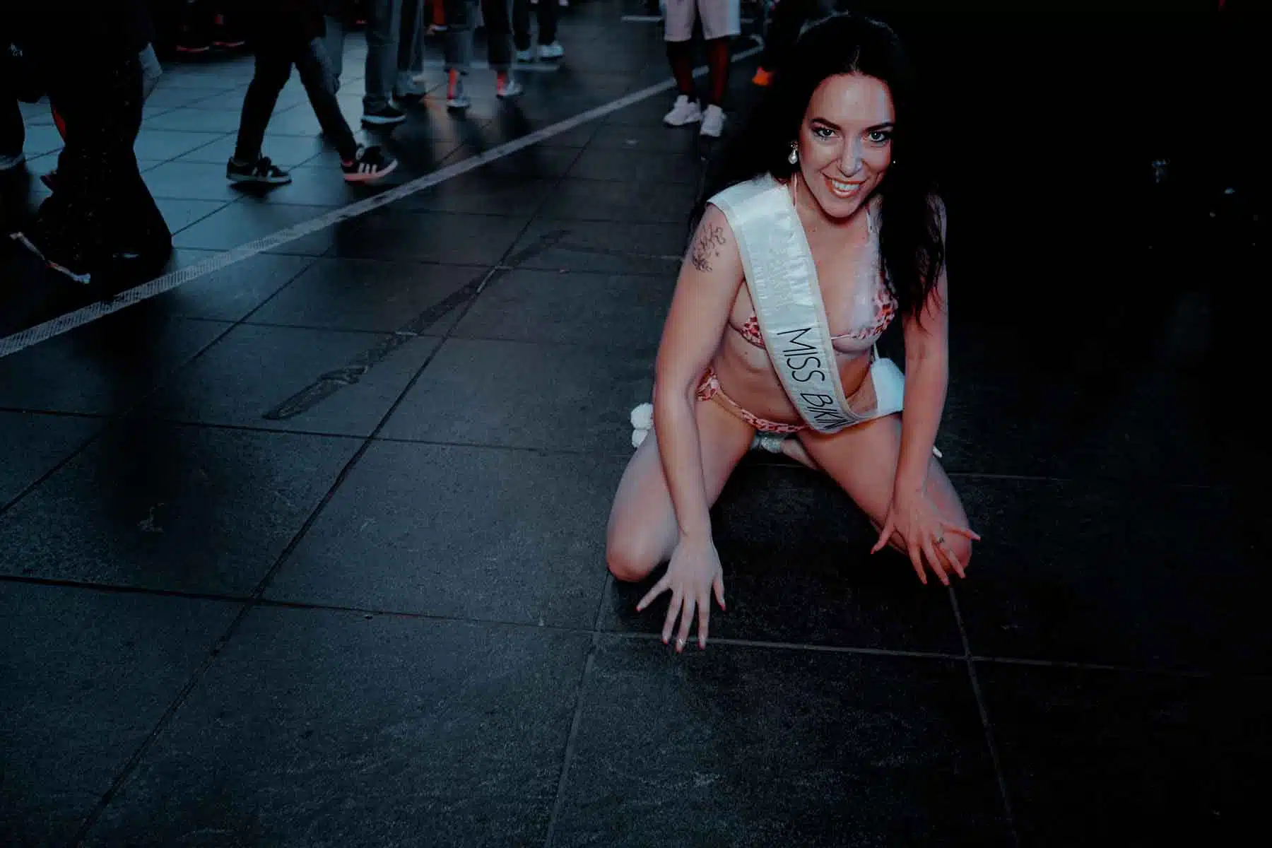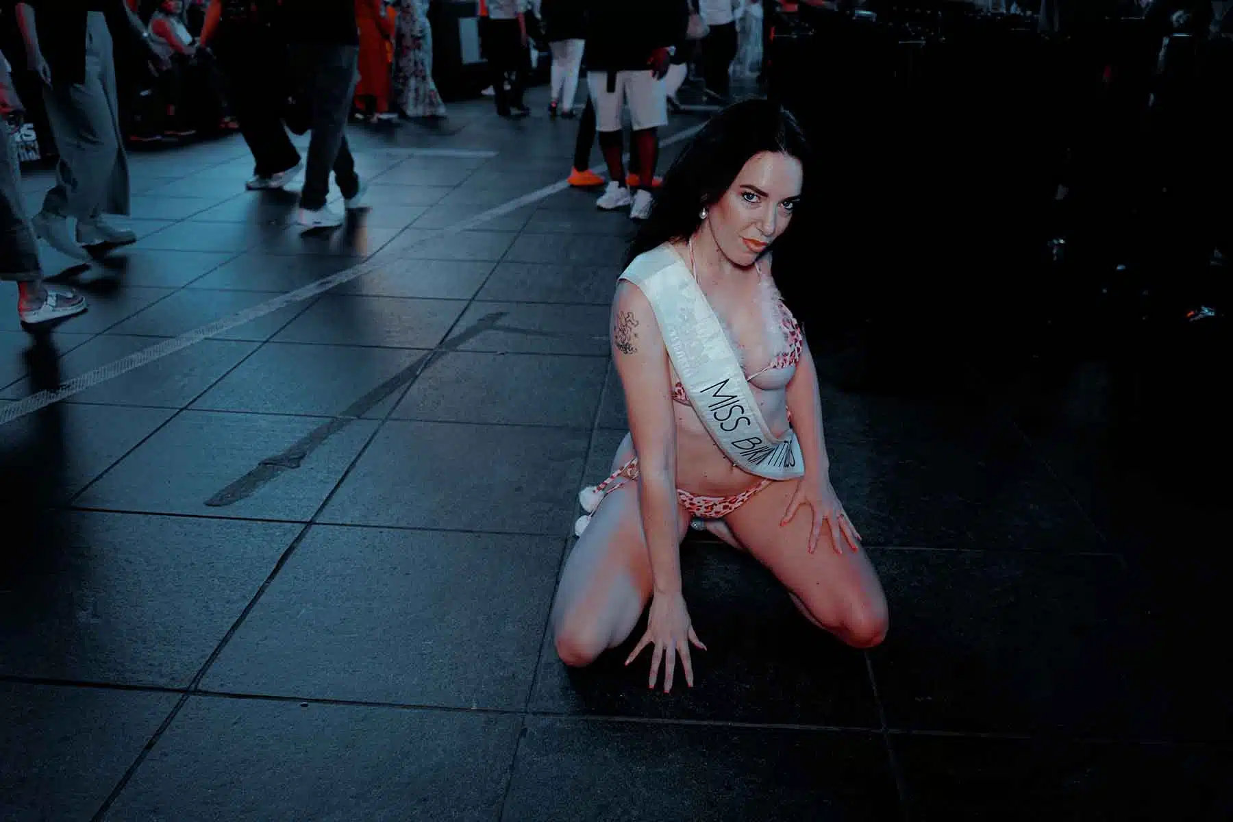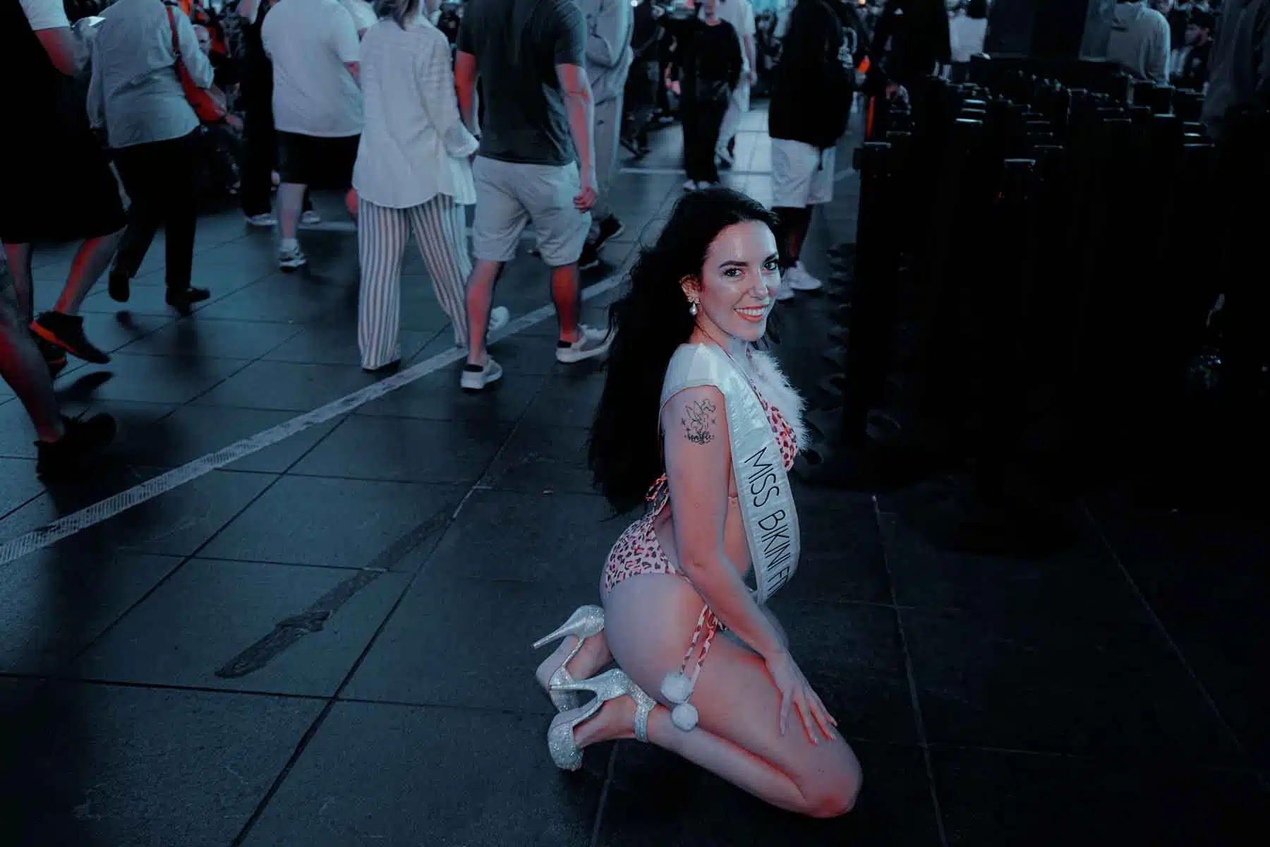 With the lights of Times Square to illuminate her — and dozens of cellphone cameras directed her way– Miss Bikini Fitness Katie Quintana of Arizona flipped on her starpower switch and worked the poses for the camera in this fashion editorial taken during New York Fashion Week in New York City.