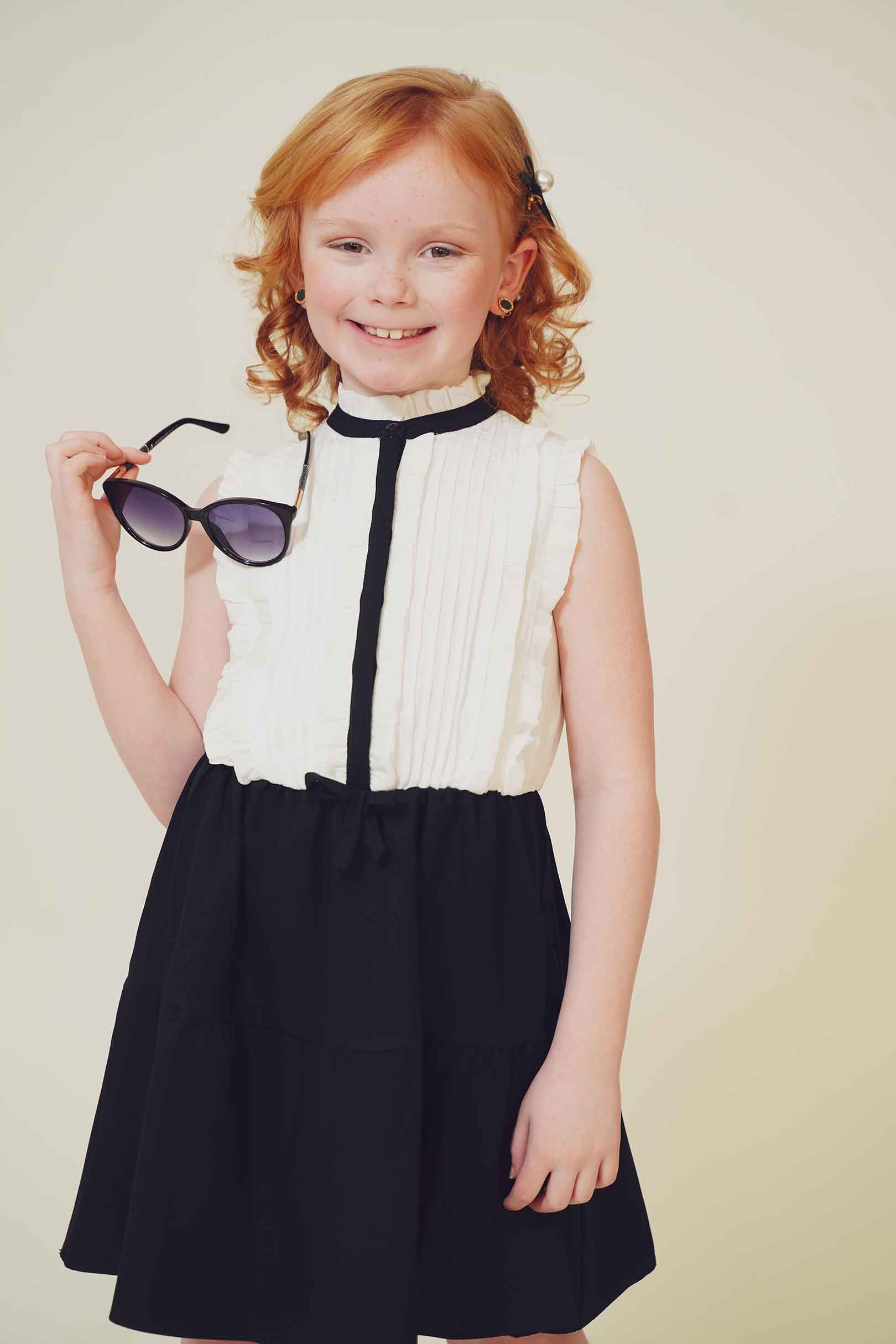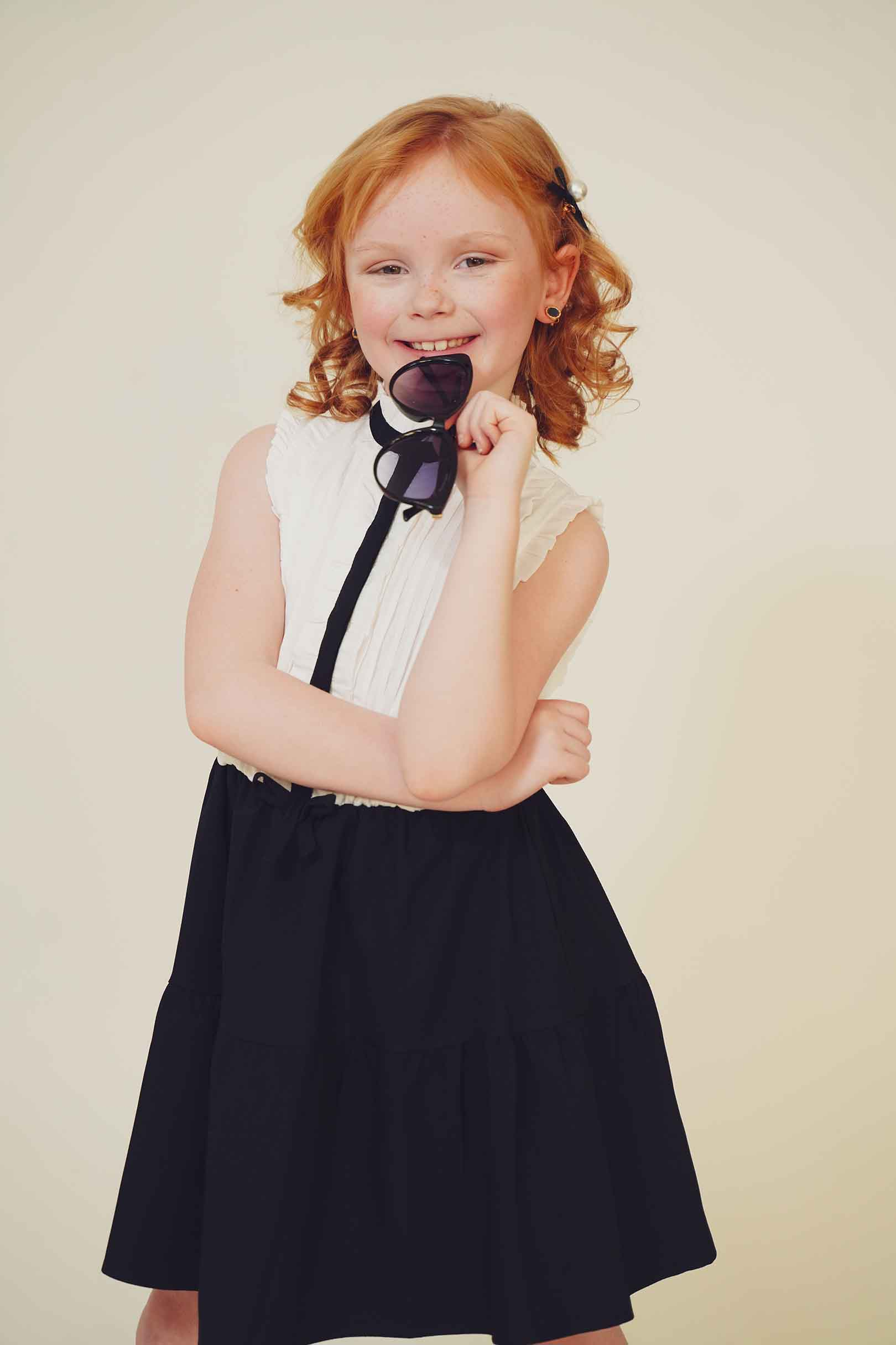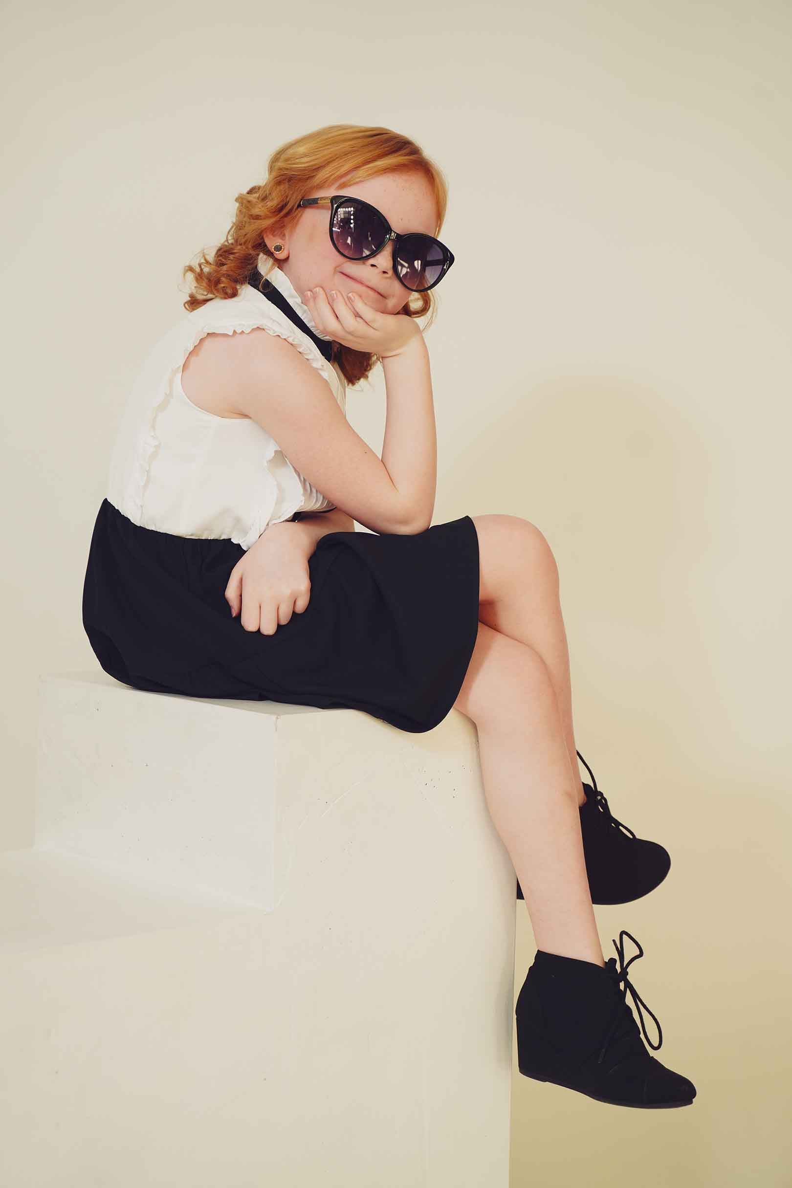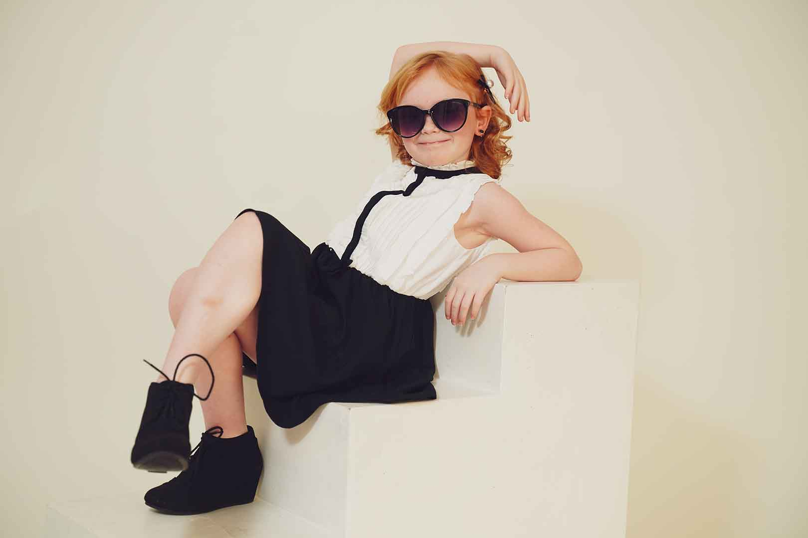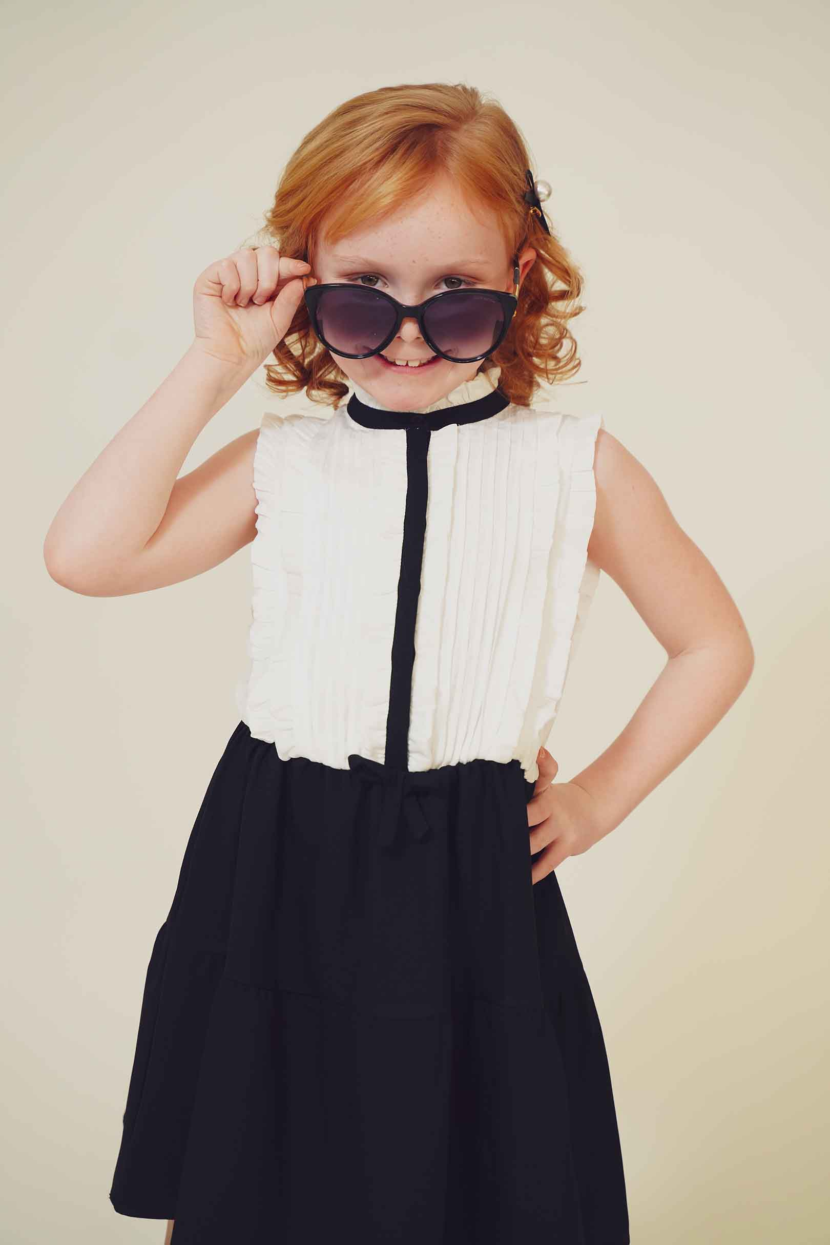 In this fashion editorial, young model Pixly demonstrates that a love for Louis Vuitton accessories begins early in life. She takes delight in a classic pair of sunglasses in a recent photo shoot.