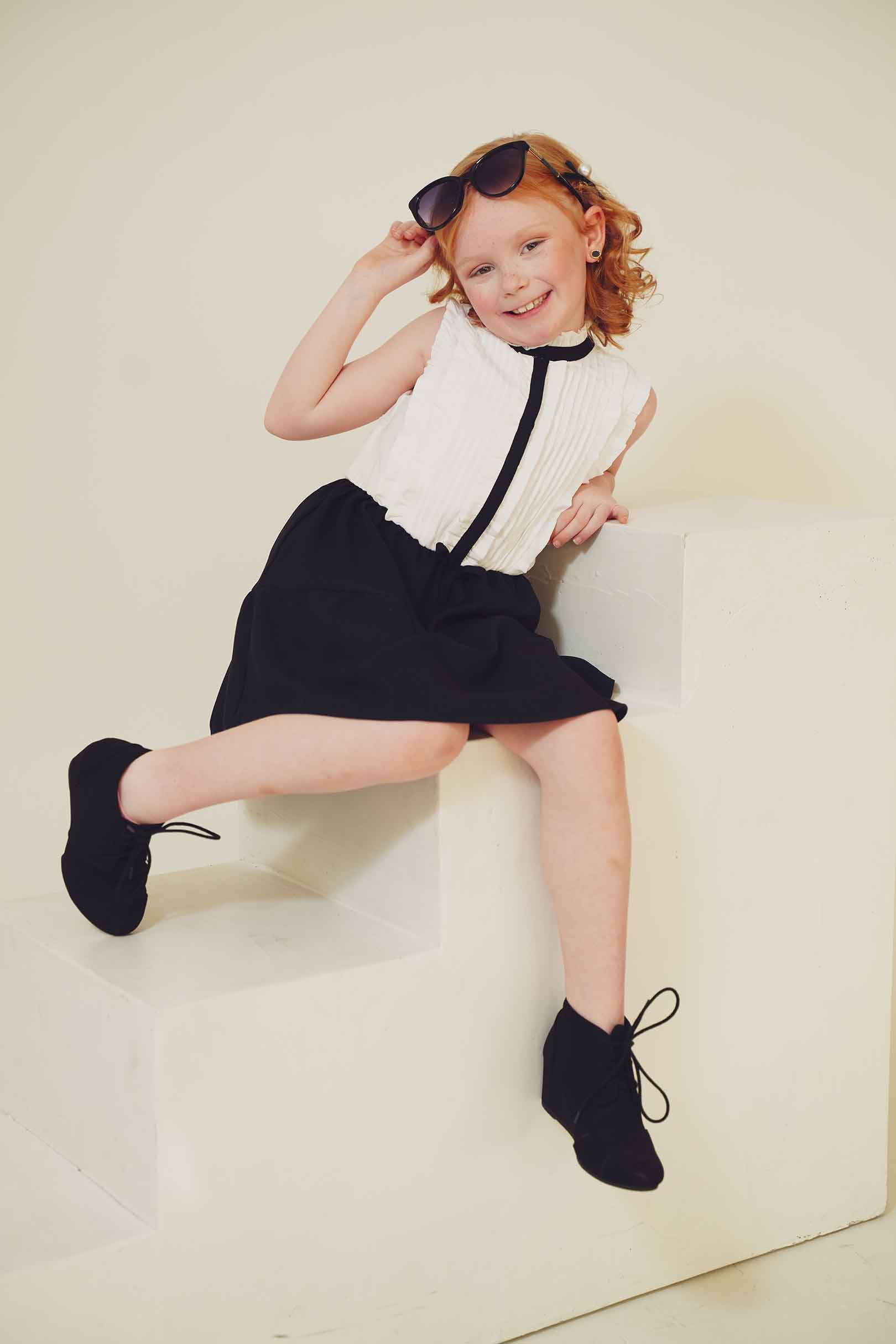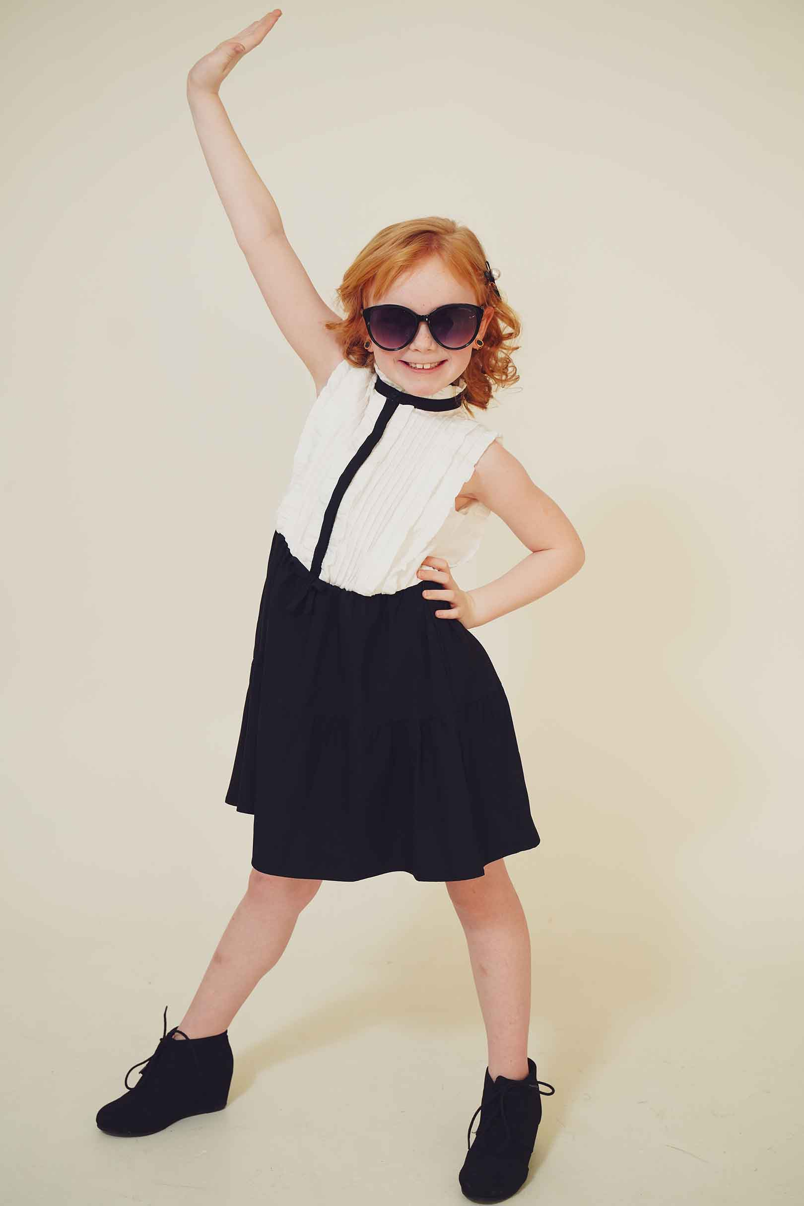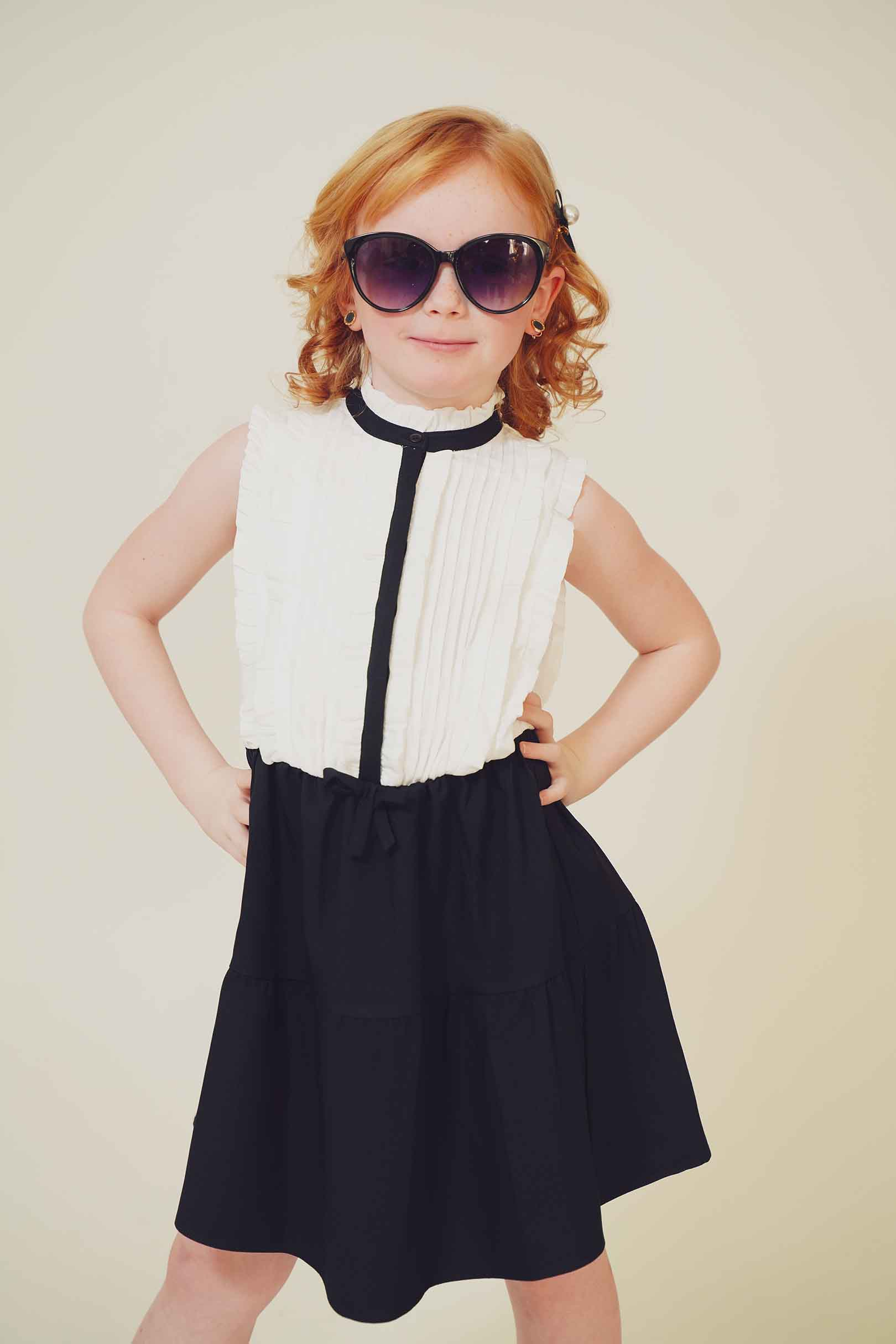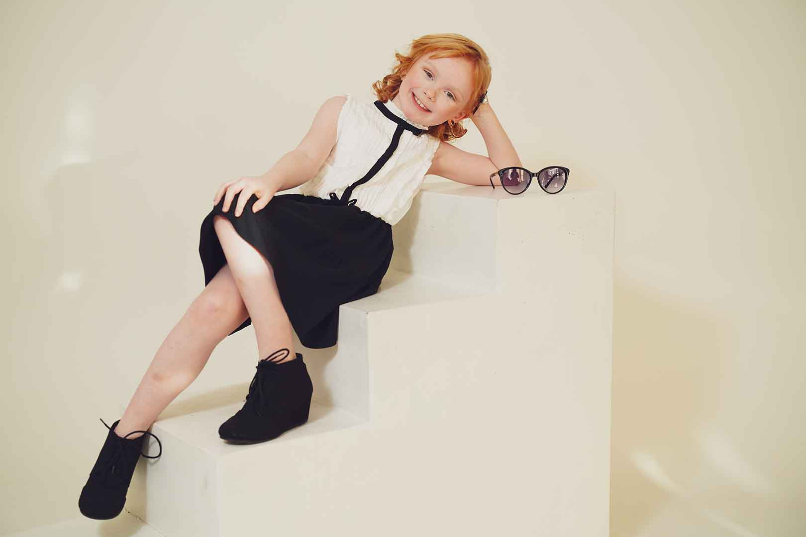 In this fashion editorial, young model Pixly demonstrates that a love for Louis Vuitton accessories begins early in life. She takes delight in a classic pair of sunglasses in a recent photo shoot.