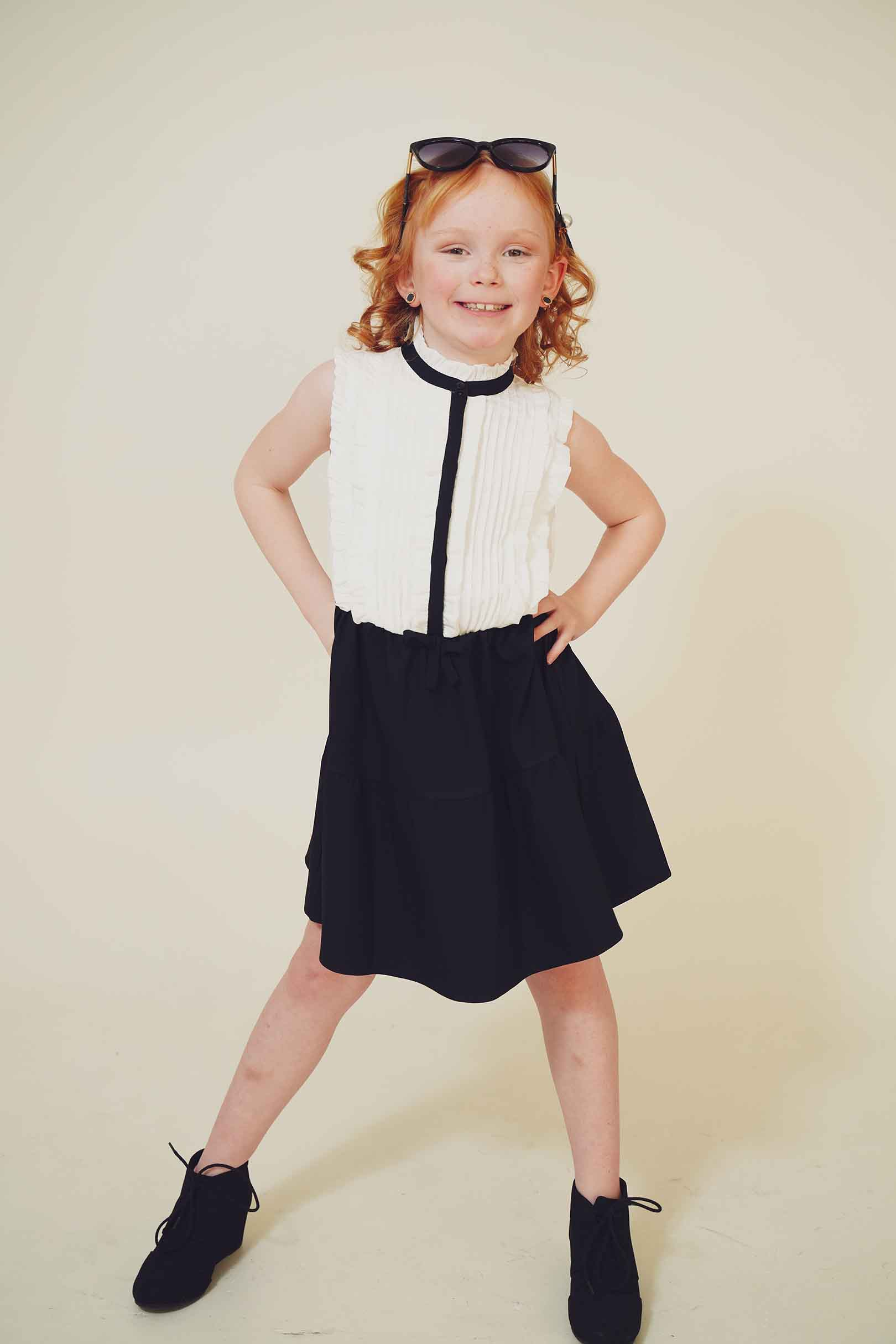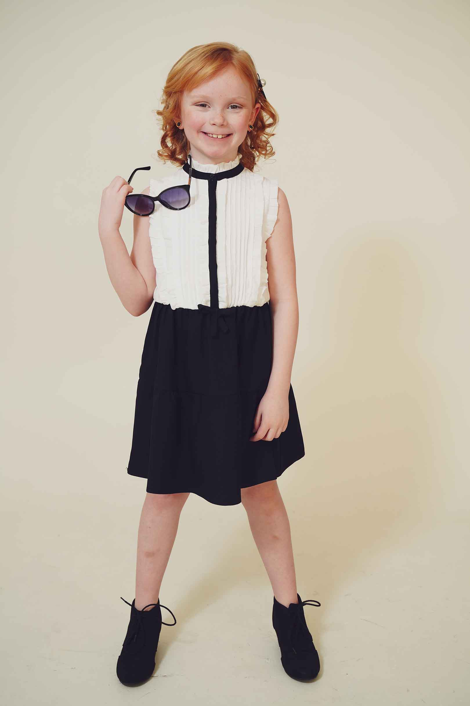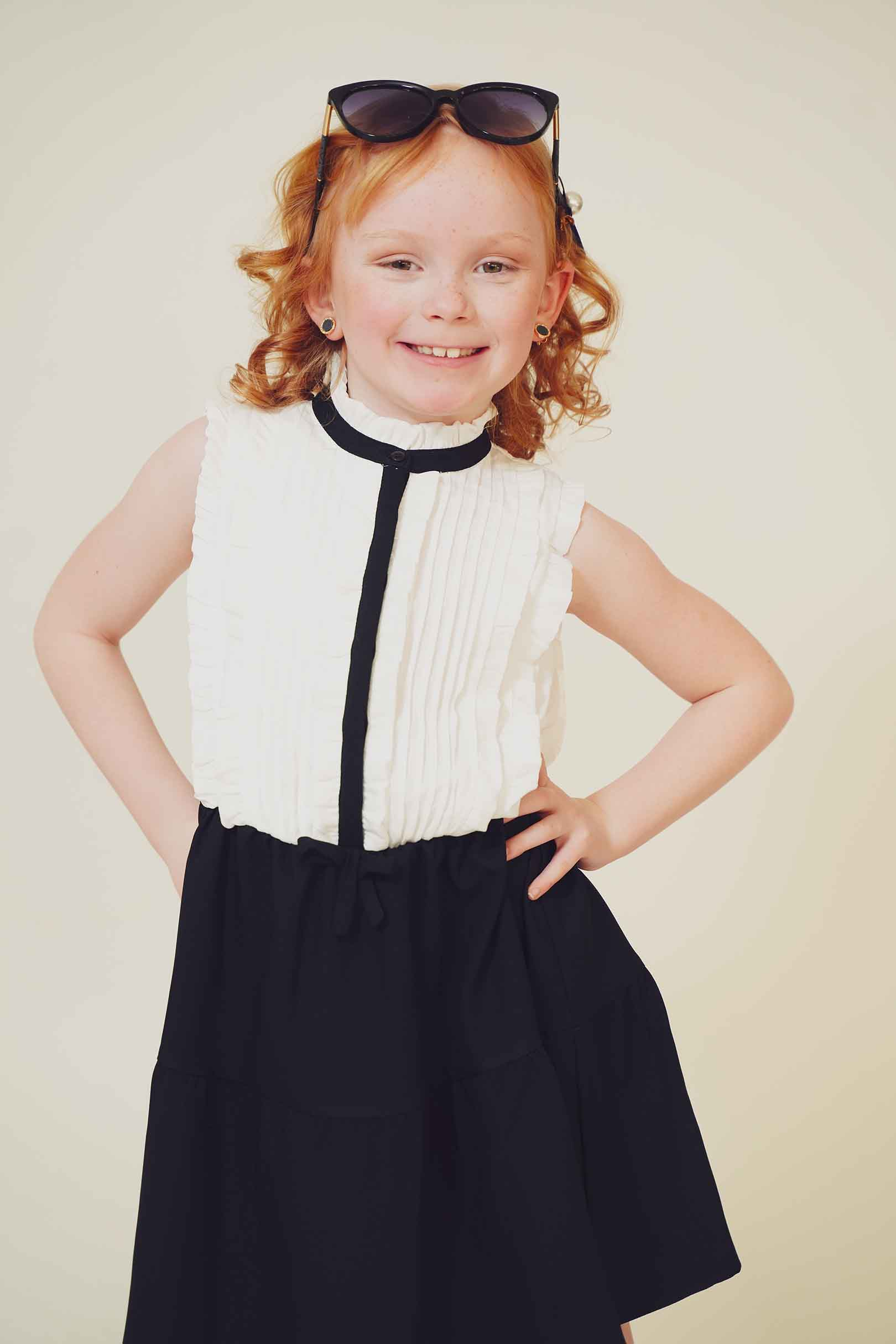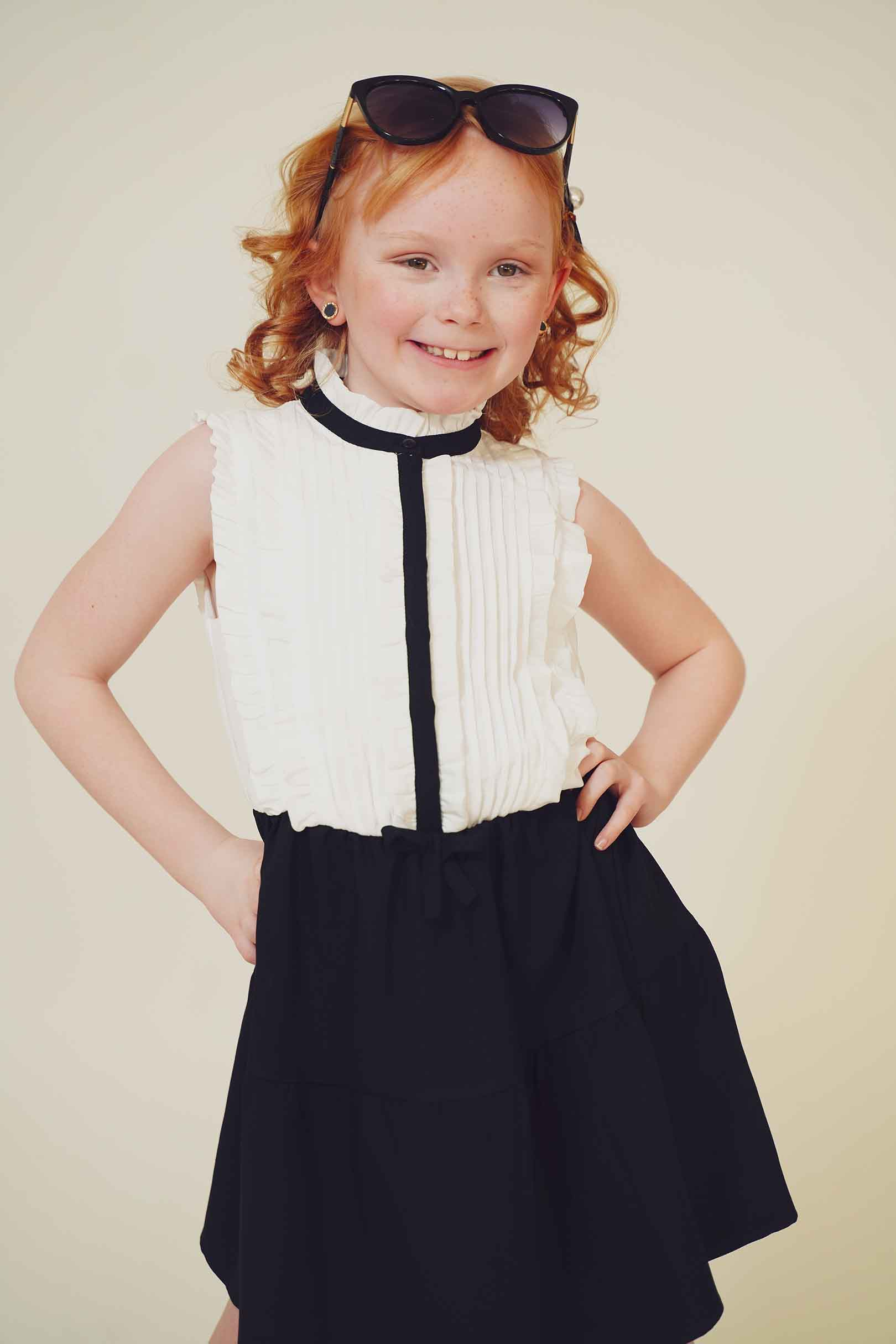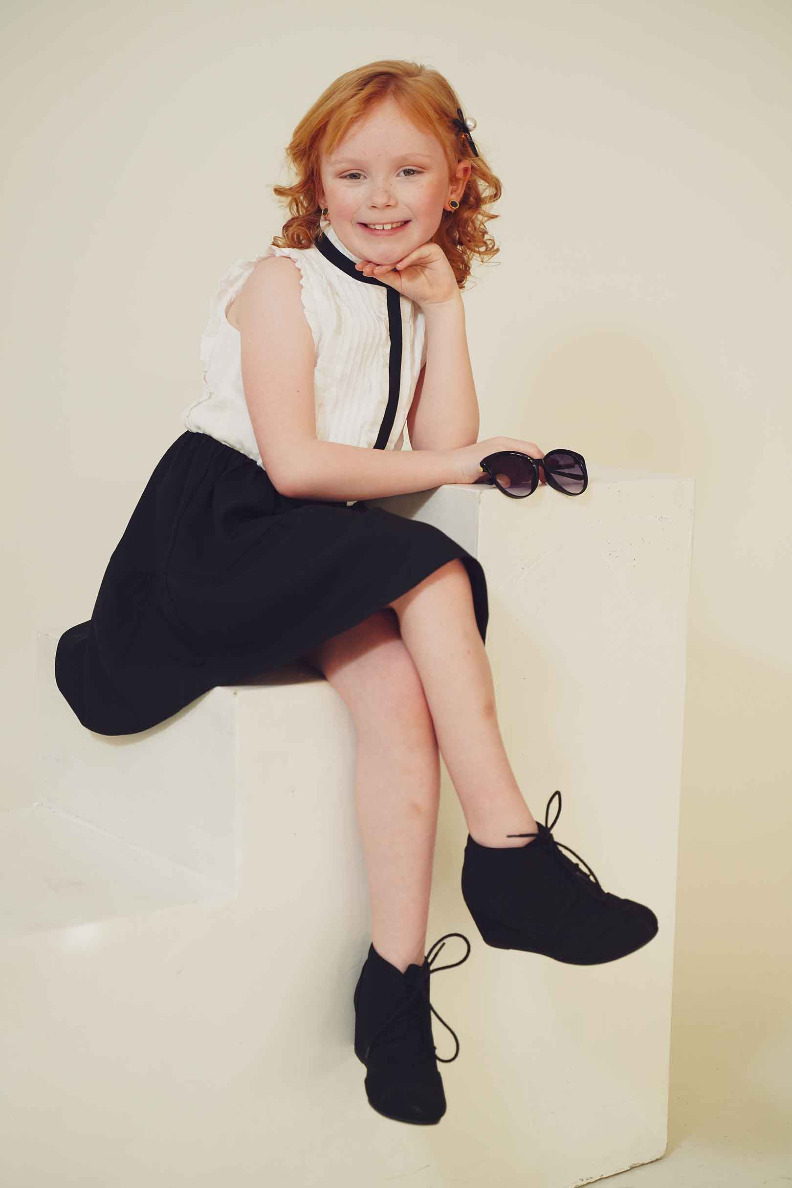 In this fashion editorial, young model Pixly demonstrates that a love for Louis Vuitton accessories begins early in life. She takes delight in a classic pair of sunglasses in a recent photo shoot.