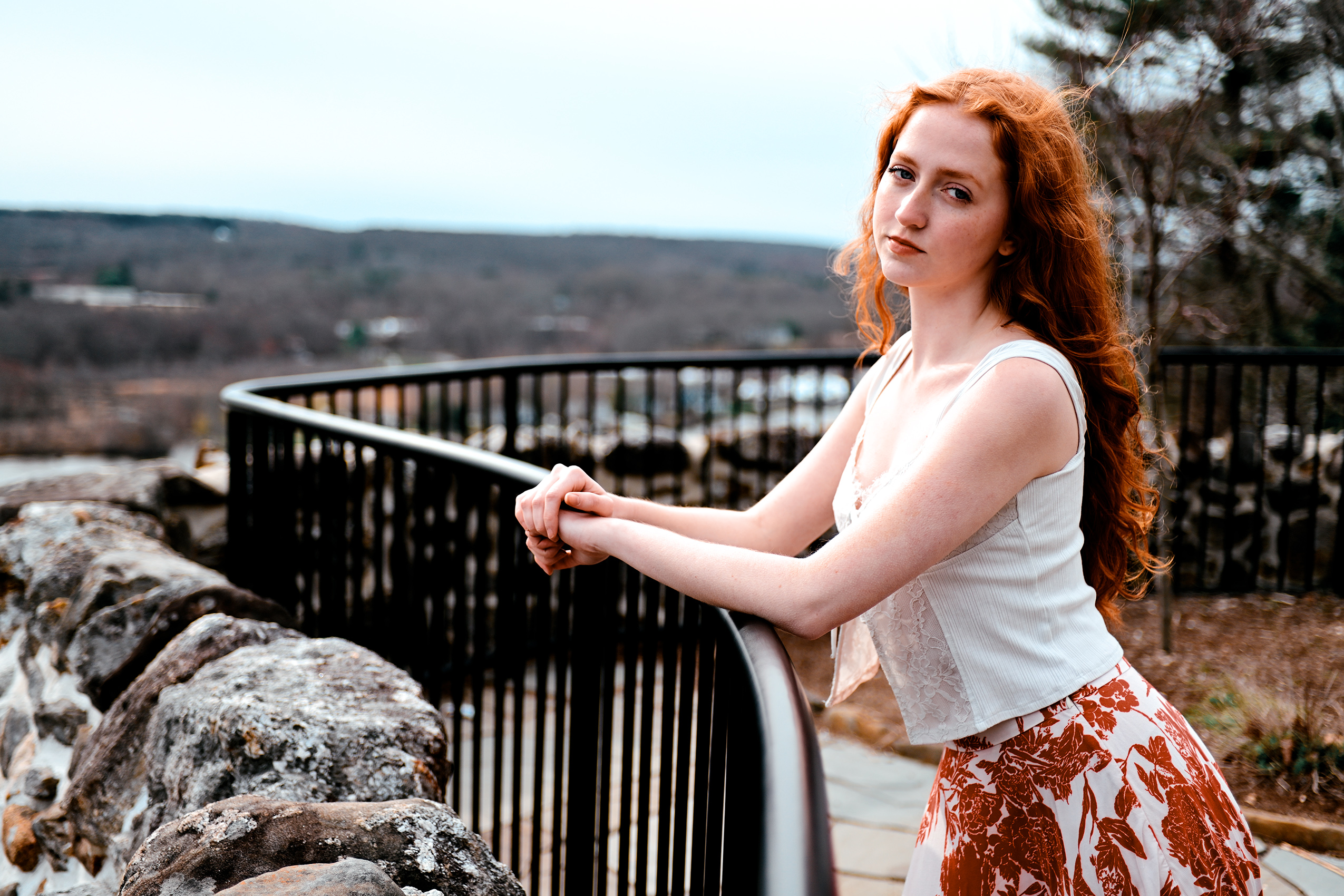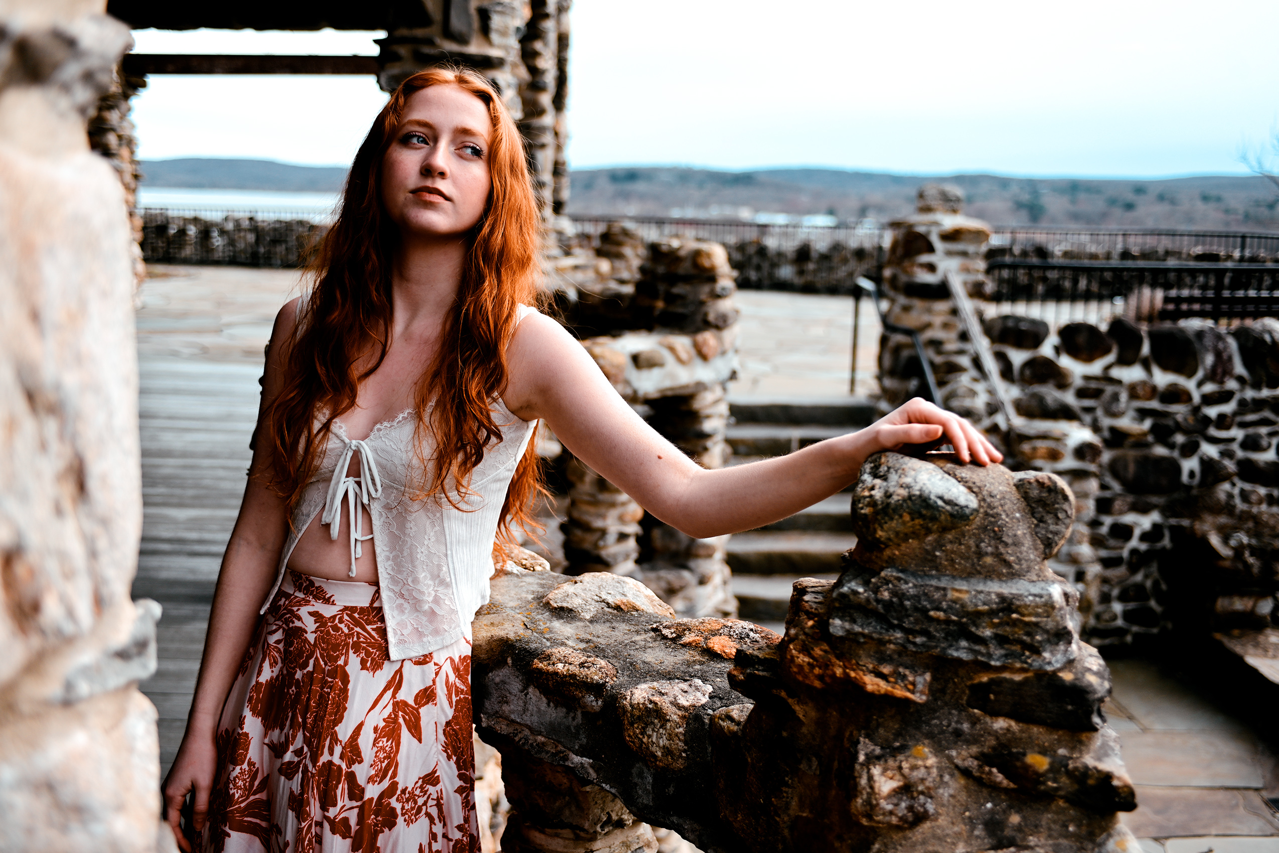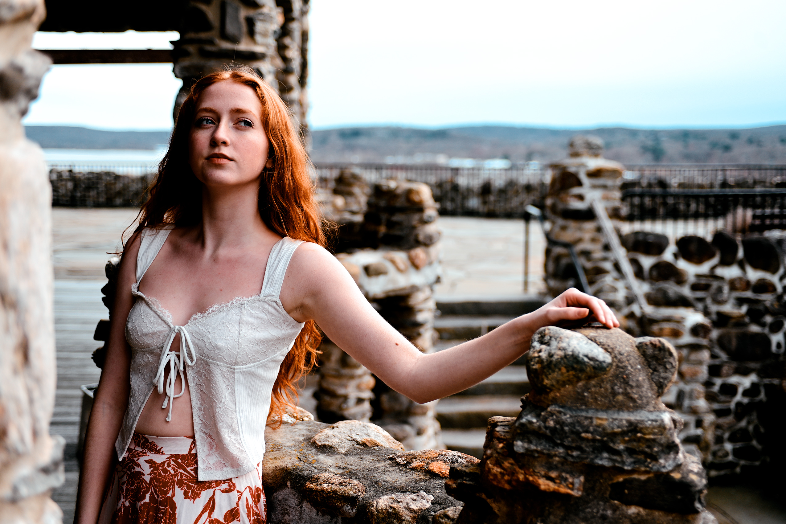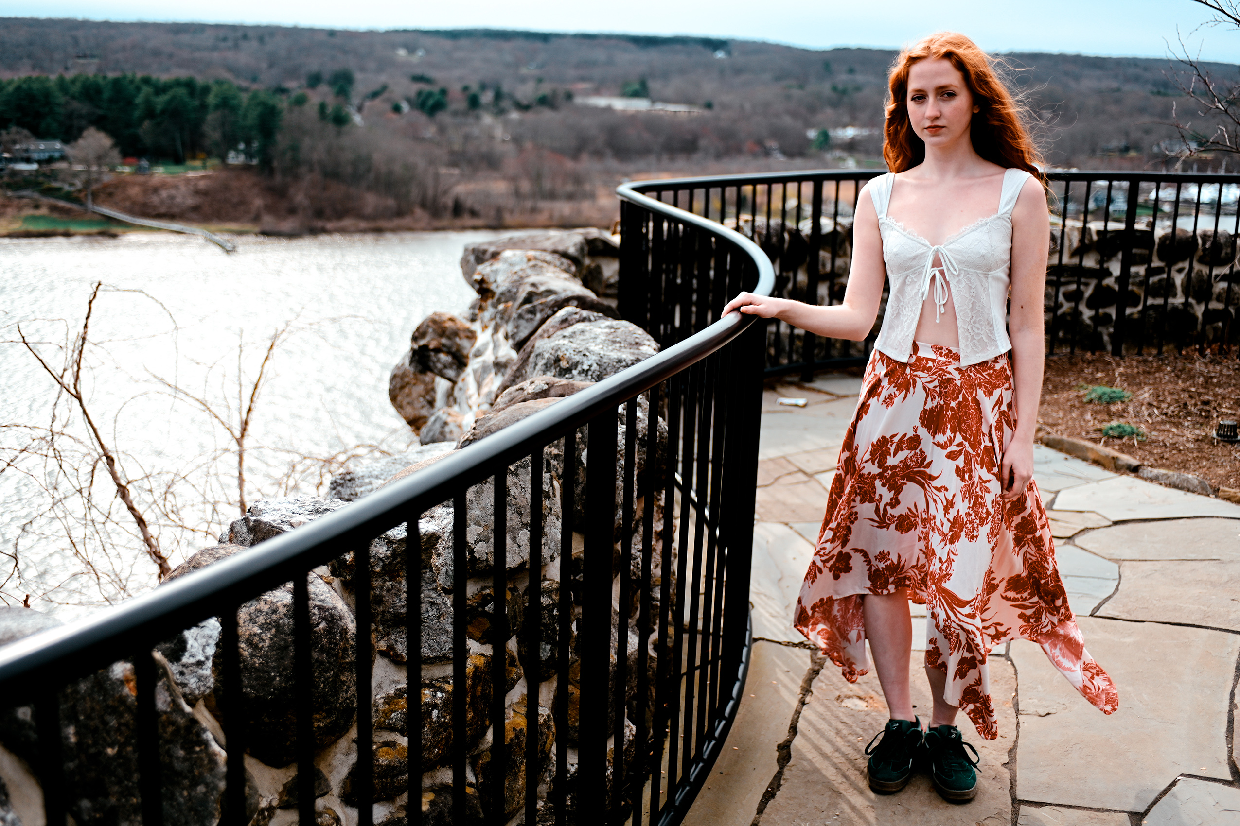 There’s nothing like lounging in the light spring breeze created above the Connecticut River valley. Model Ella Noon basks in the moment beneath the visage of the Nutmeg State’s historic Gillette Castle.