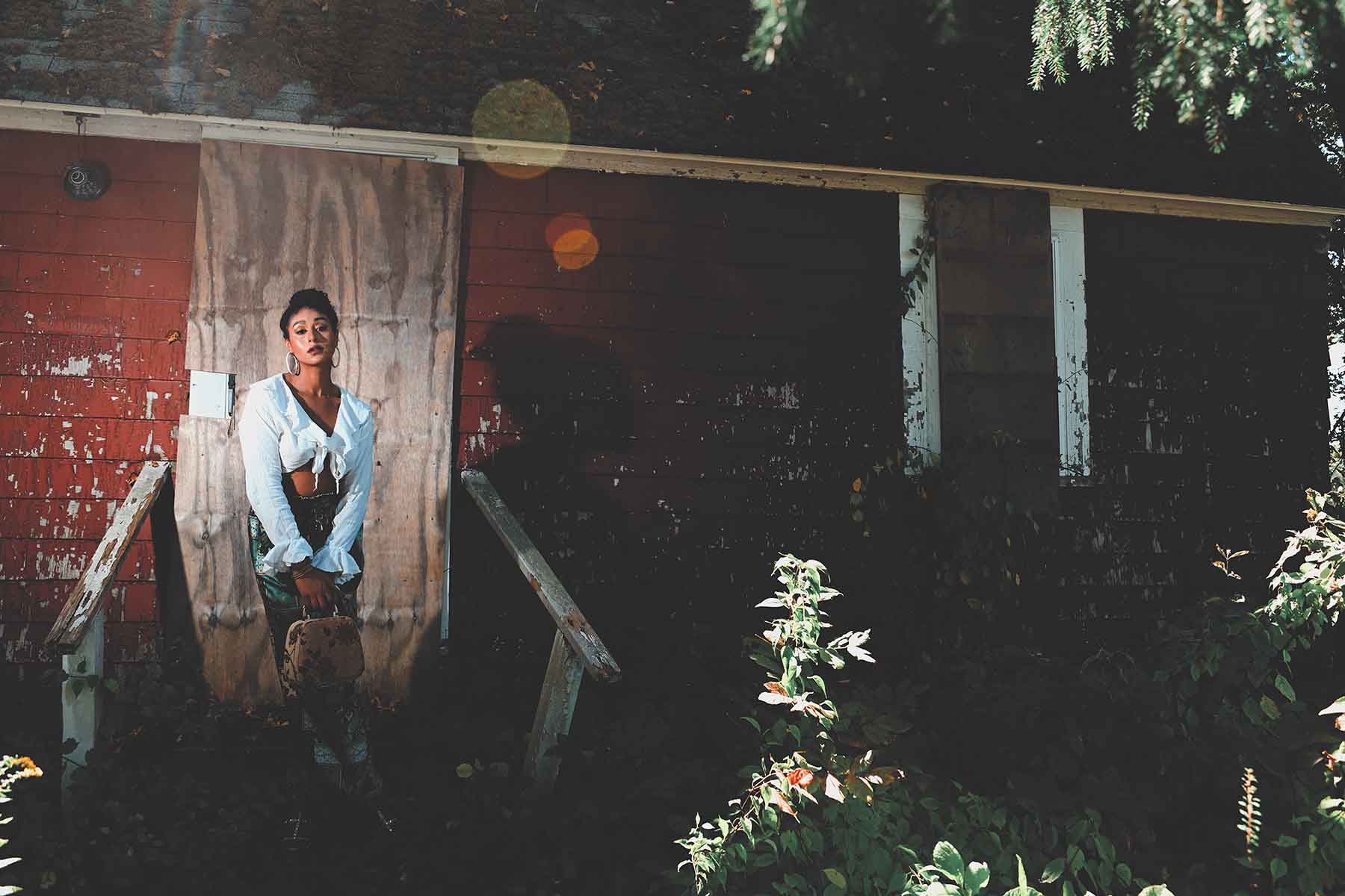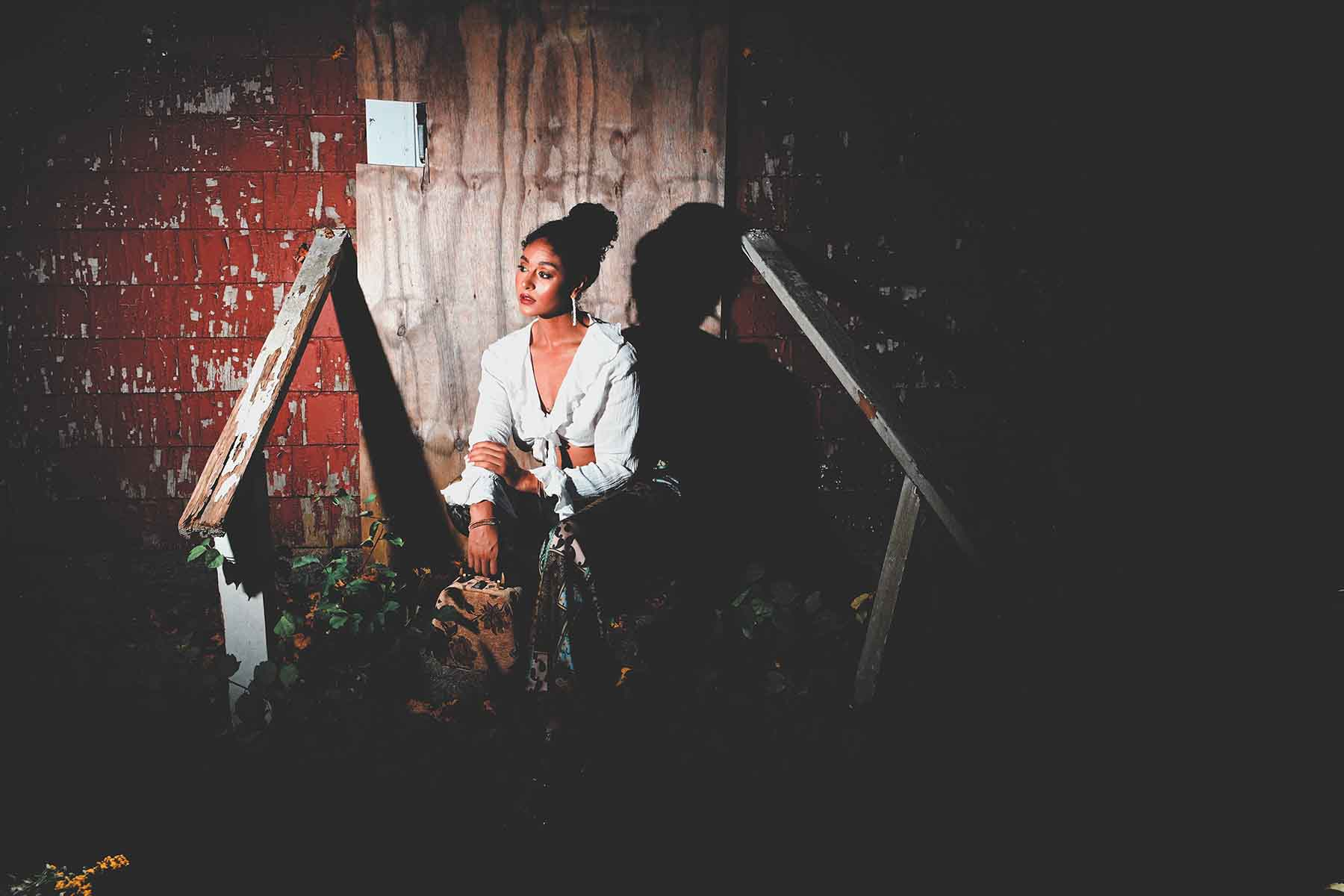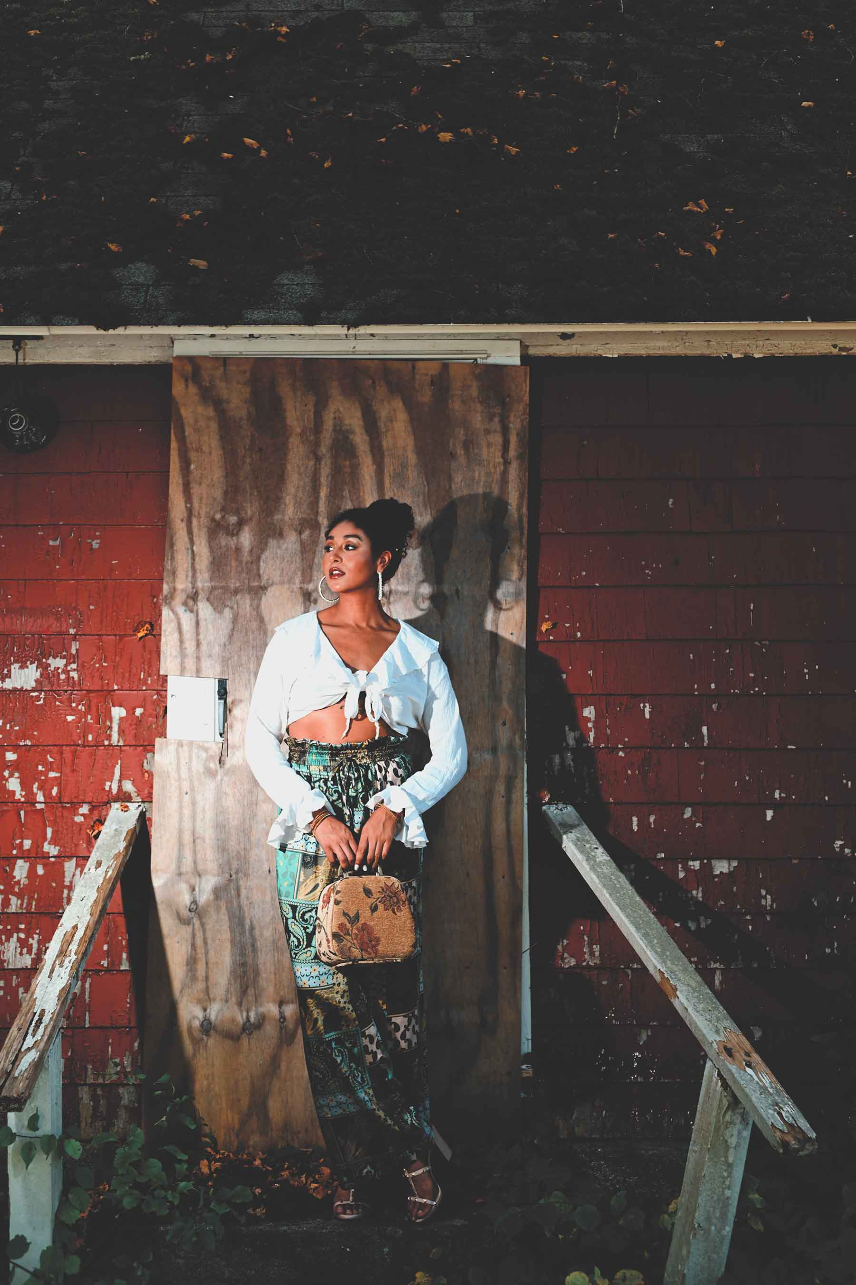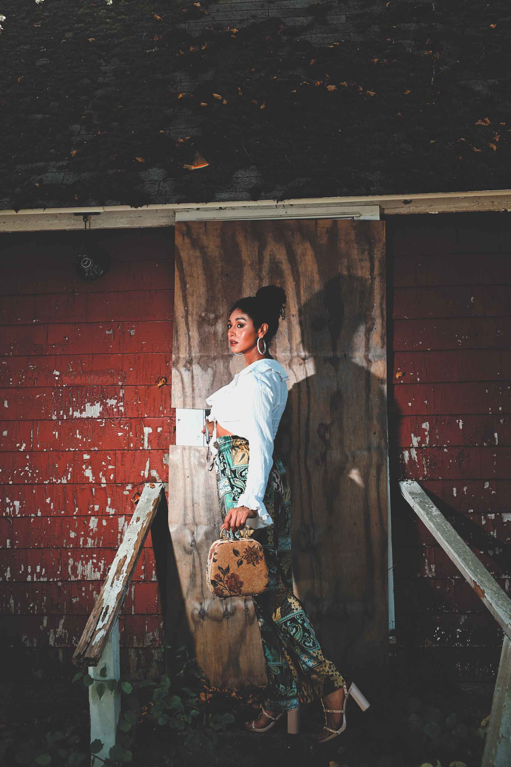 Who knows what danger lurks in the shadows? Blogger Taylor Adams (We Aim To Slay β Some days I look great. Some days I donβt. Everyday I SLAY!) poses for a Halloween season appropriate fashion editorial.