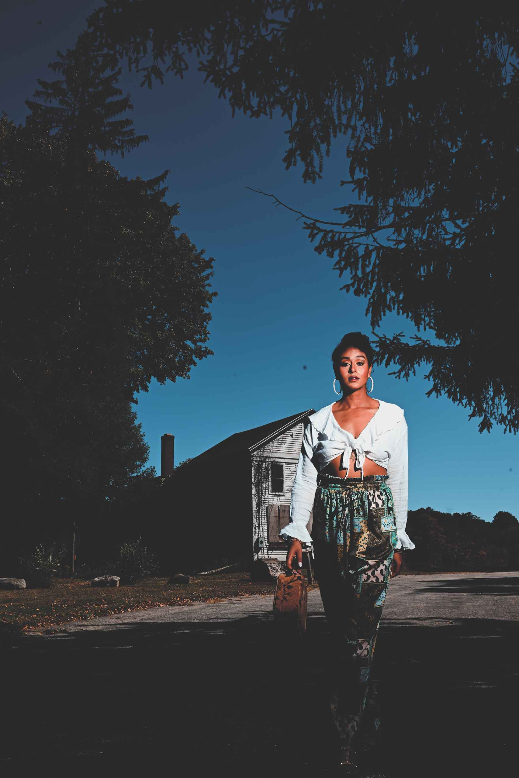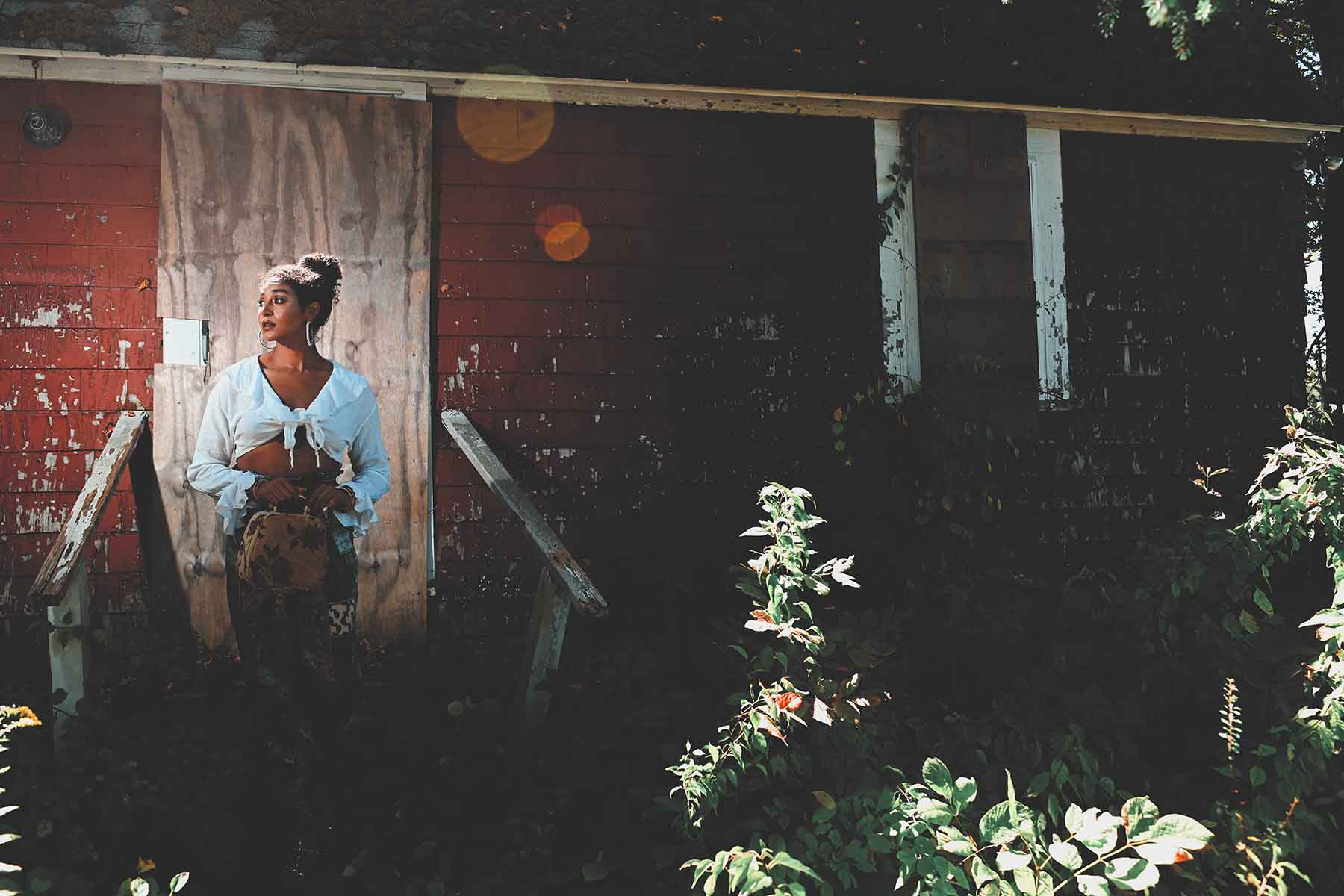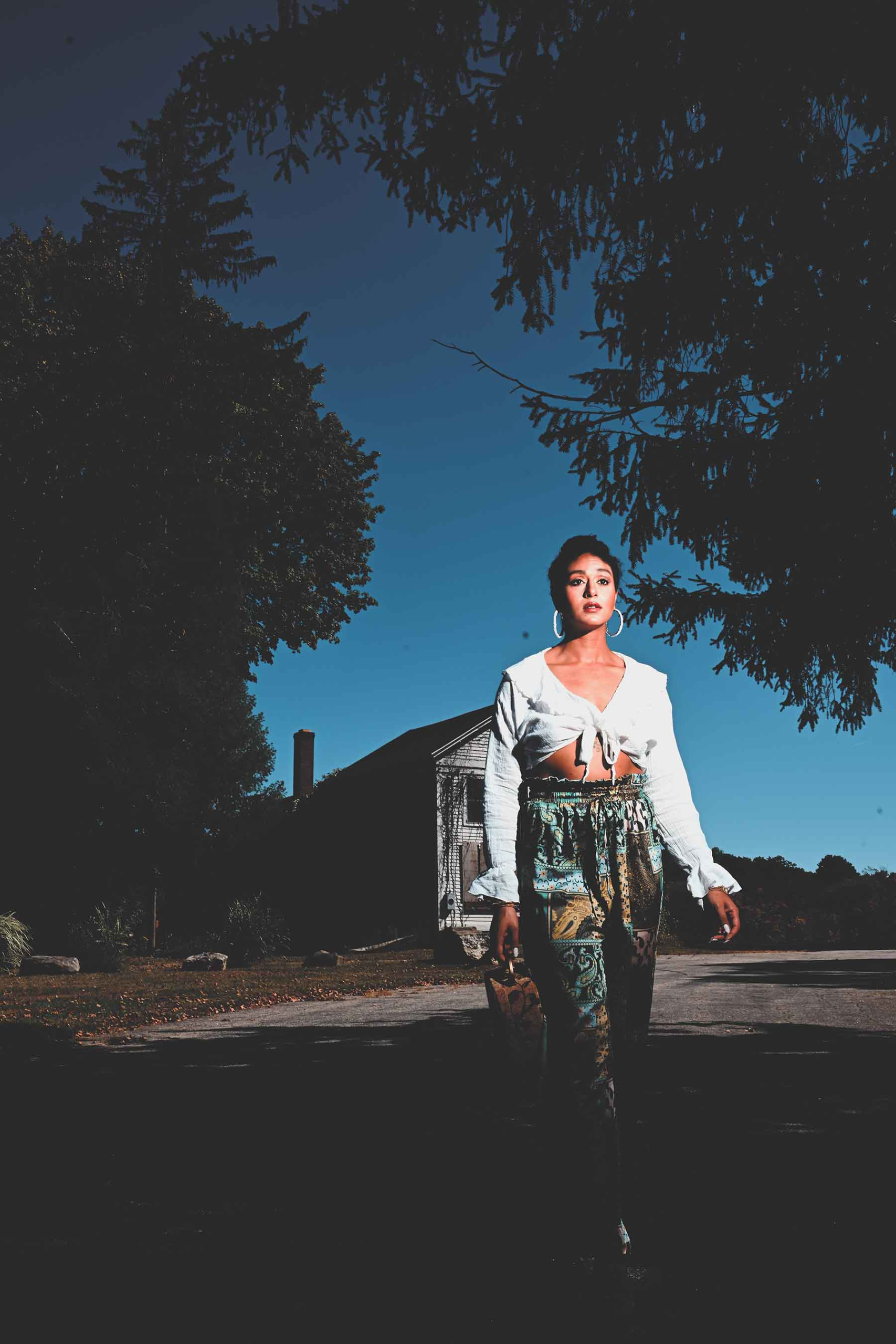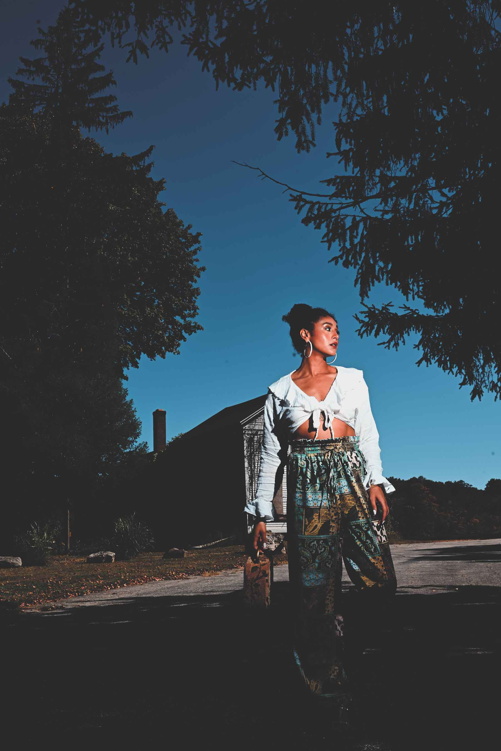 Who knows what danger lurks in the shadows? Blogger Taylor Adams (We Aim To Slay β Some days I look great. Some days I donβt. Everyday I SLAY!) poses for a Halloween season appropriate fashion editorial.